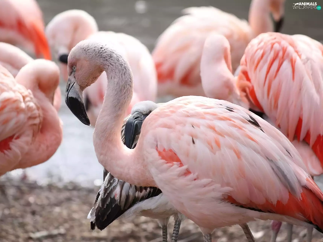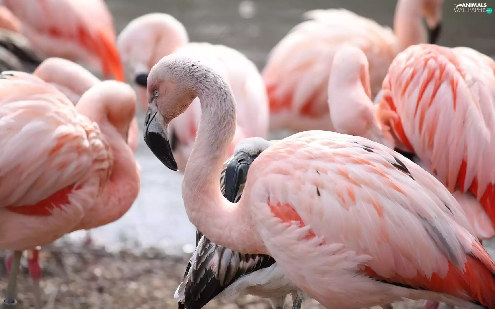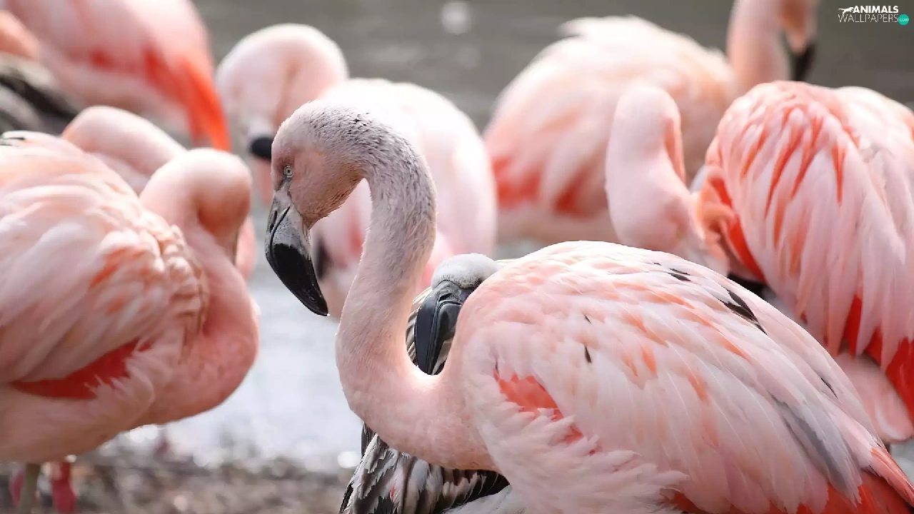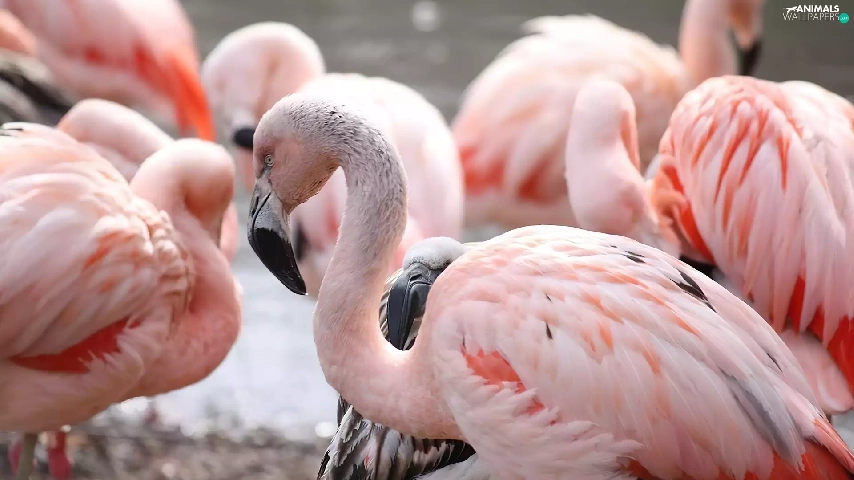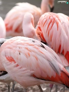 herd, birds, Chilean Flamingos