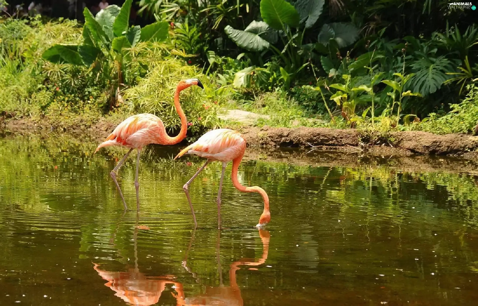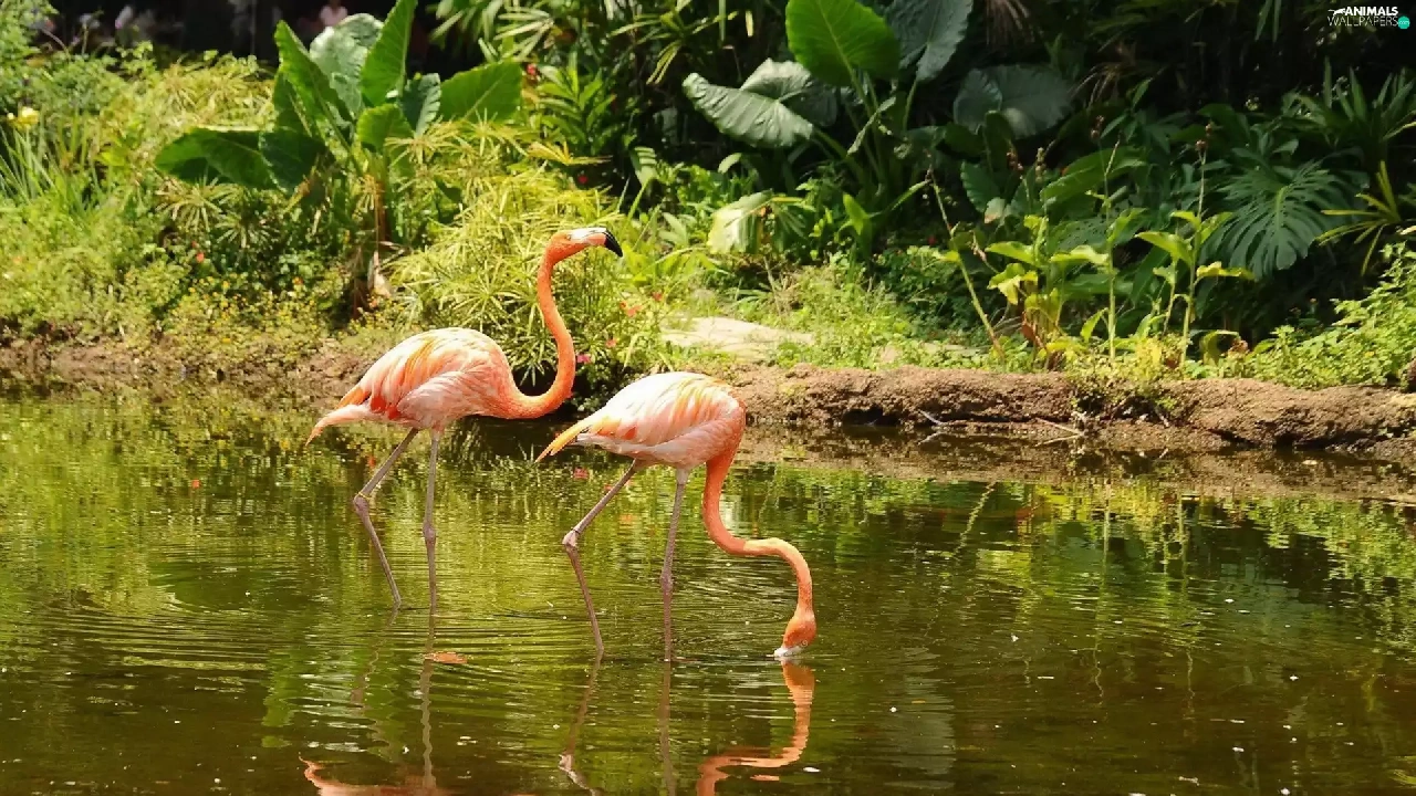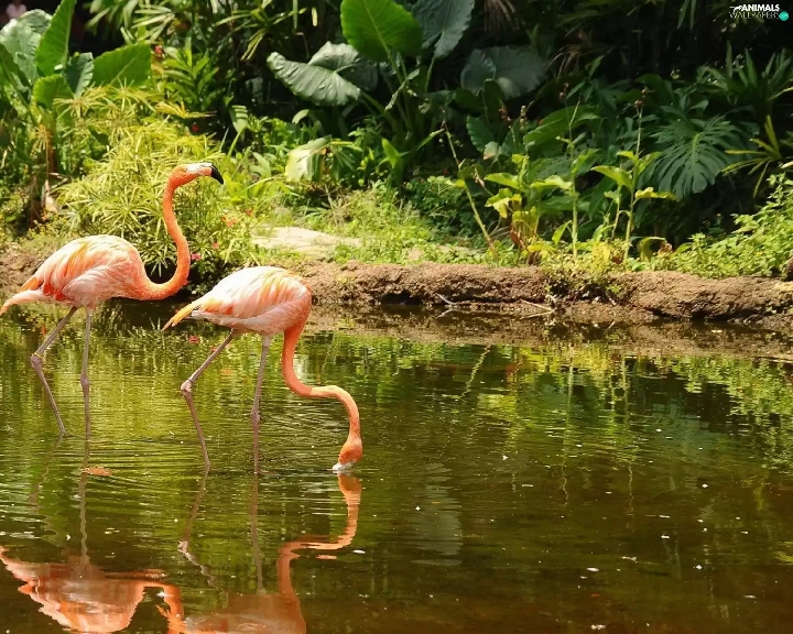 Flamingos, lake