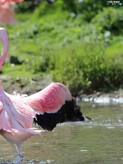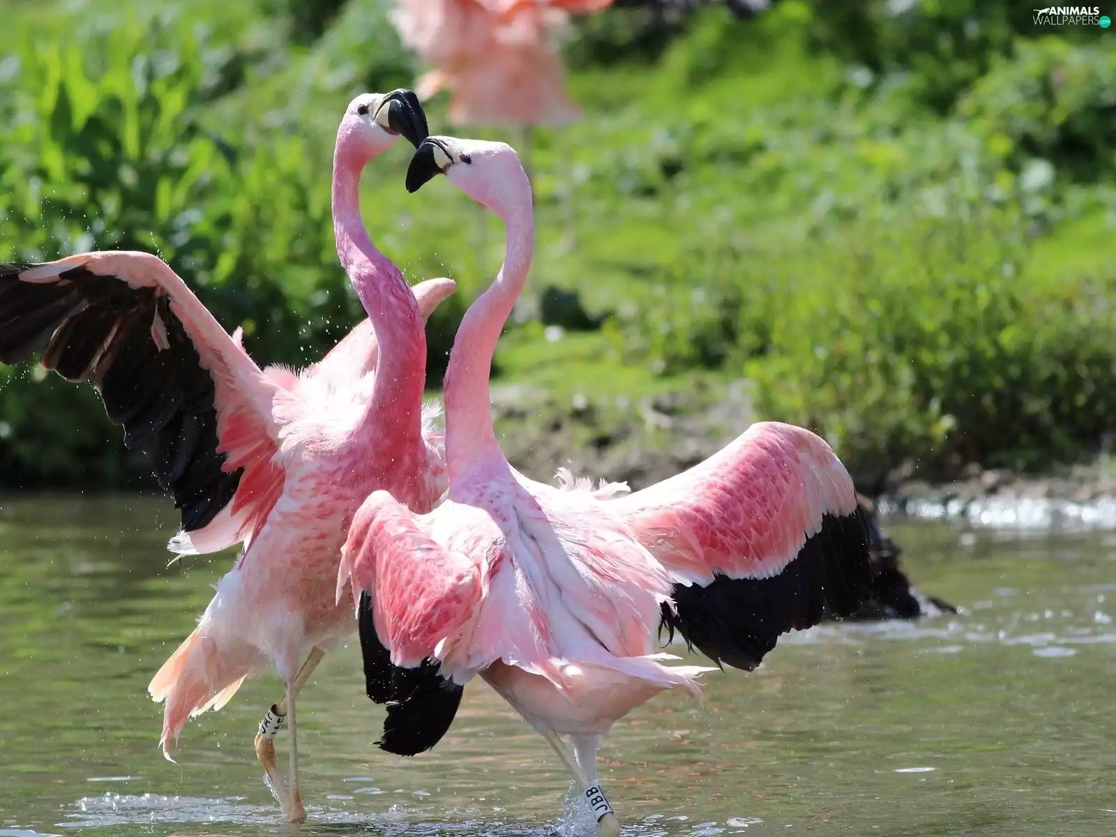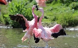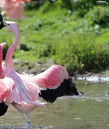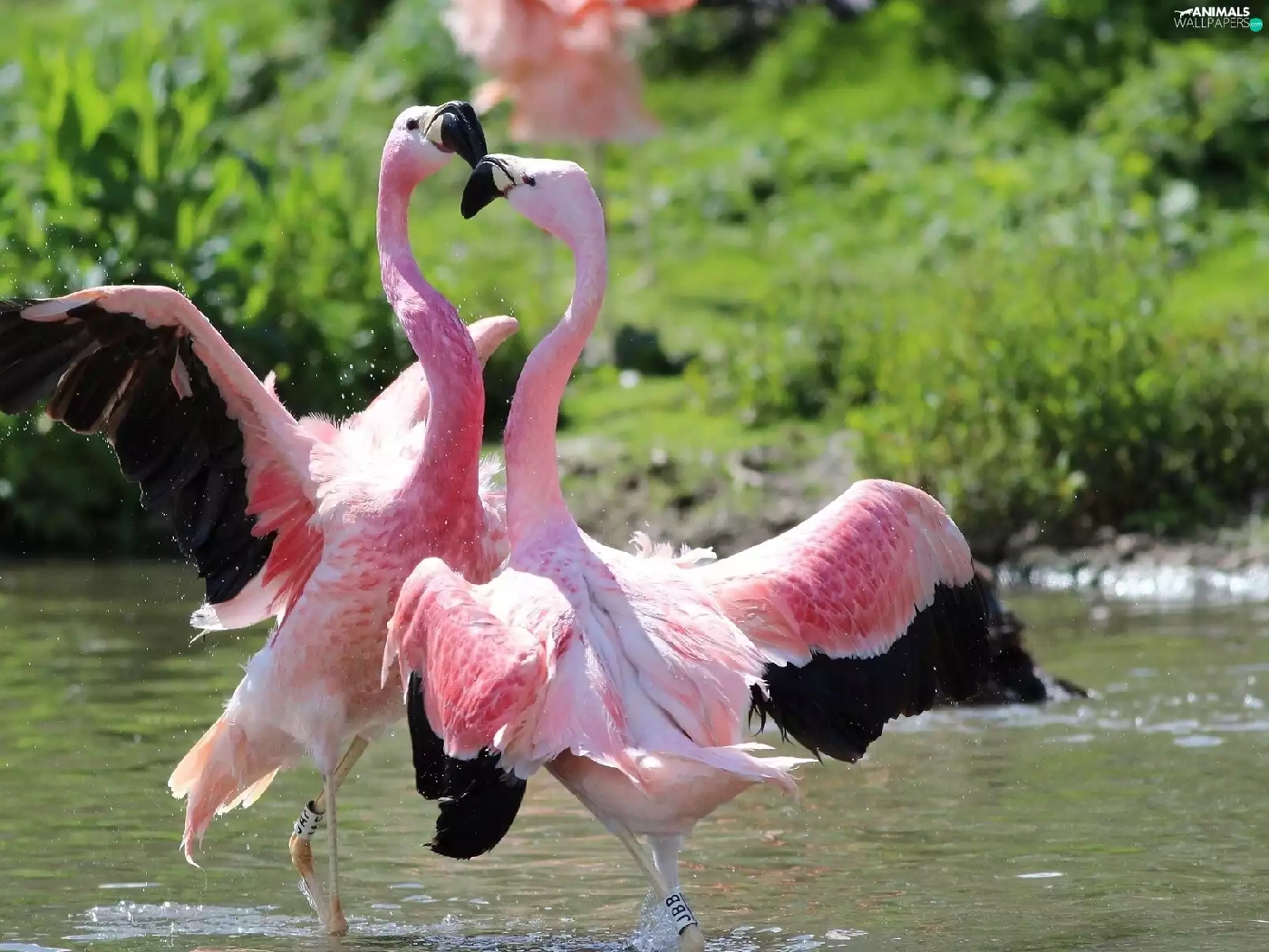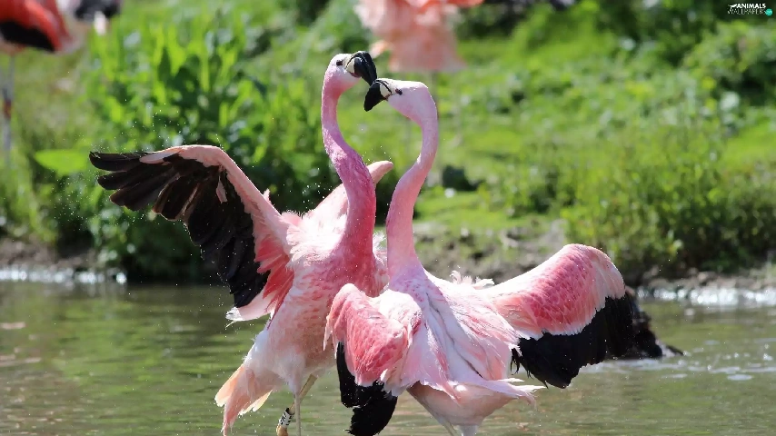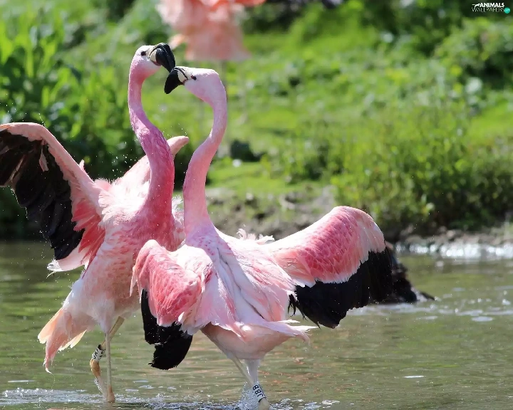 Flamingos, water