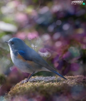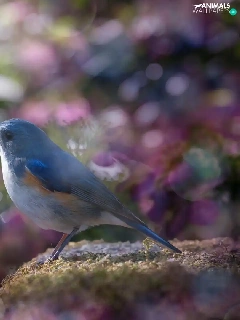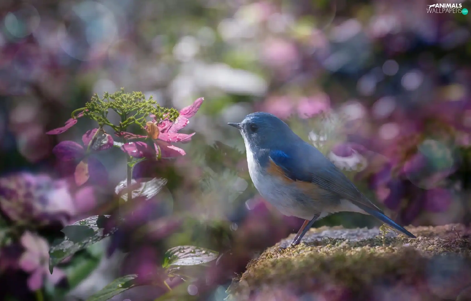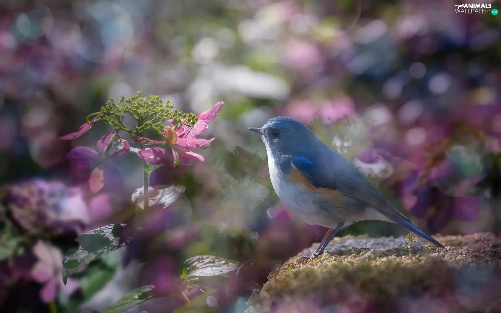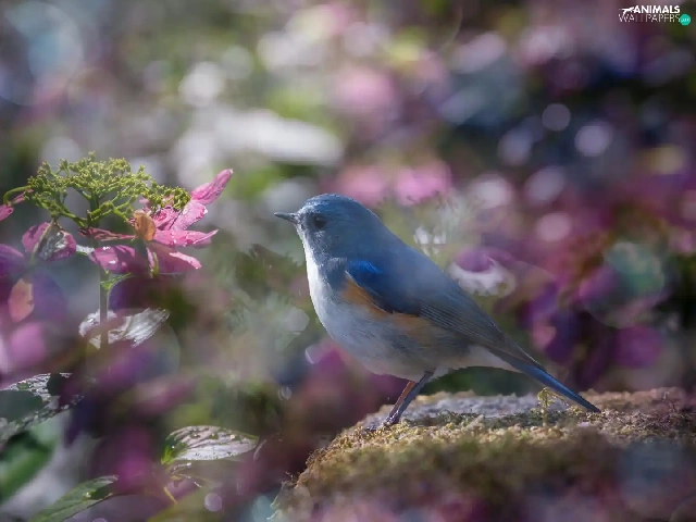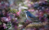Pink, blur, Red-flanked Bluetail, hydrangeas, Bird