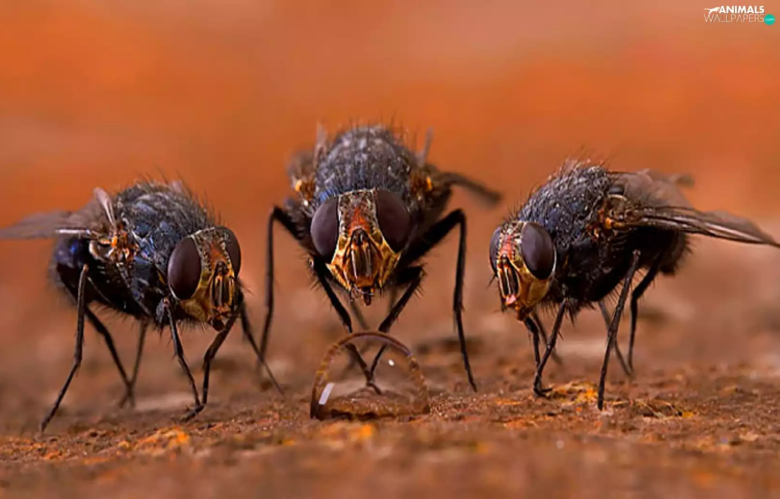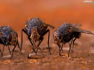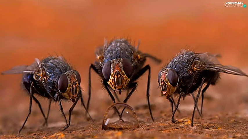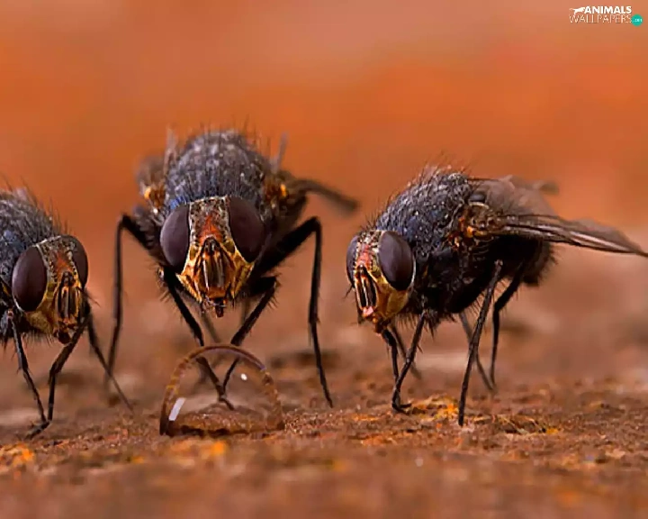 Three, drop, water, Flies