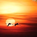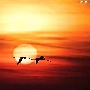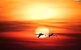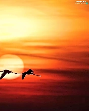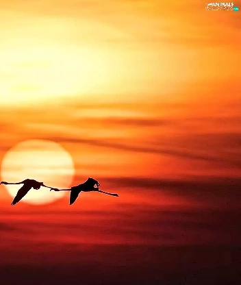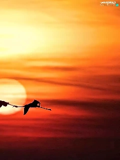 Flamingos, west, sun, flight