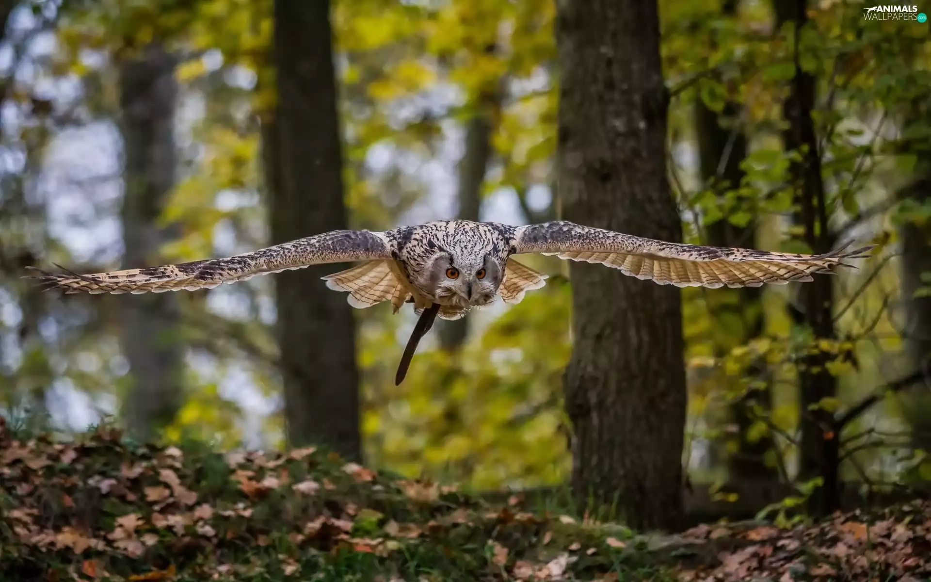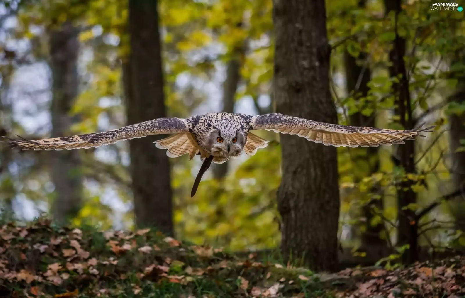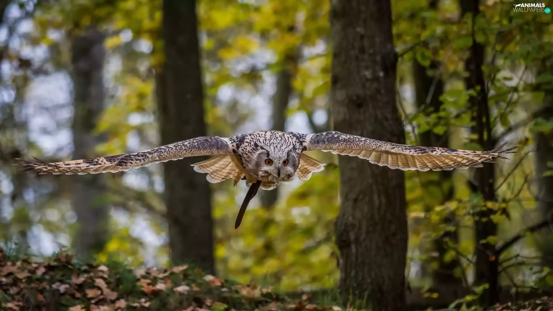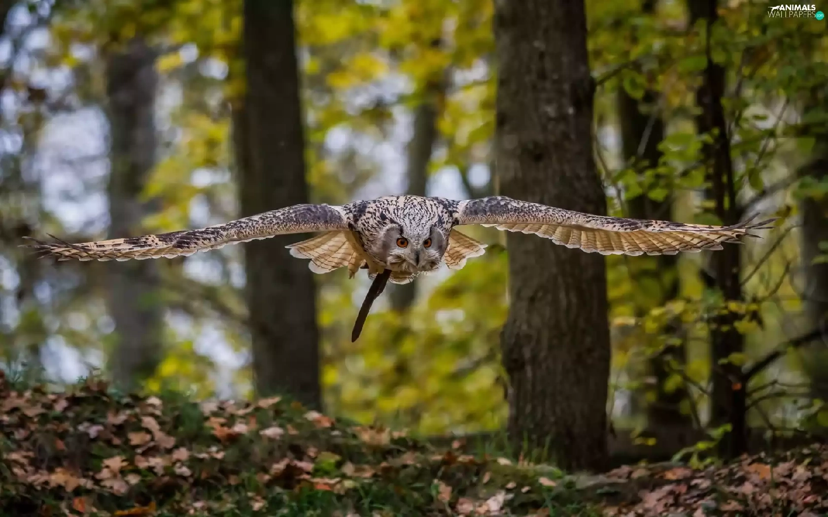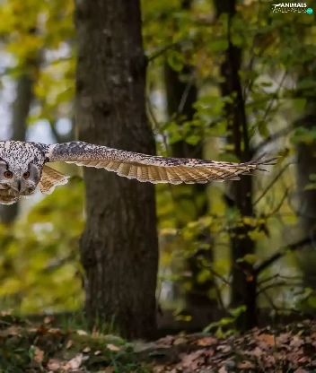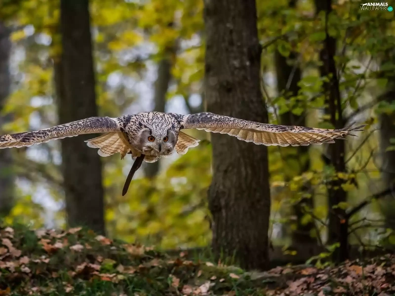 owl, forest, autumn, flight