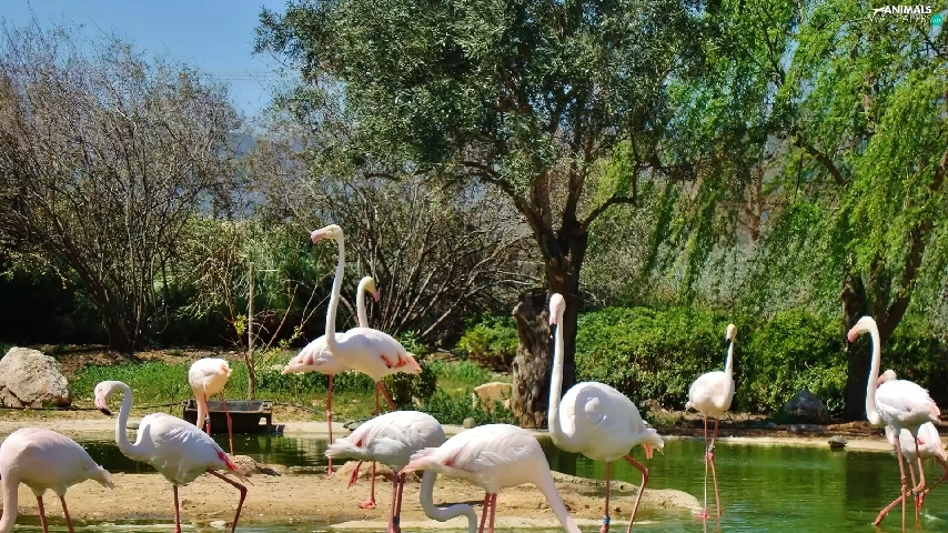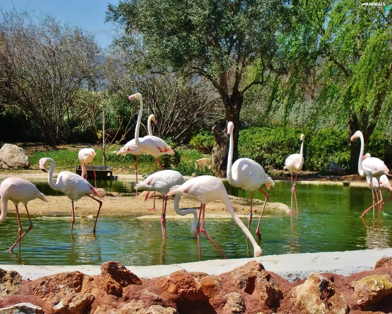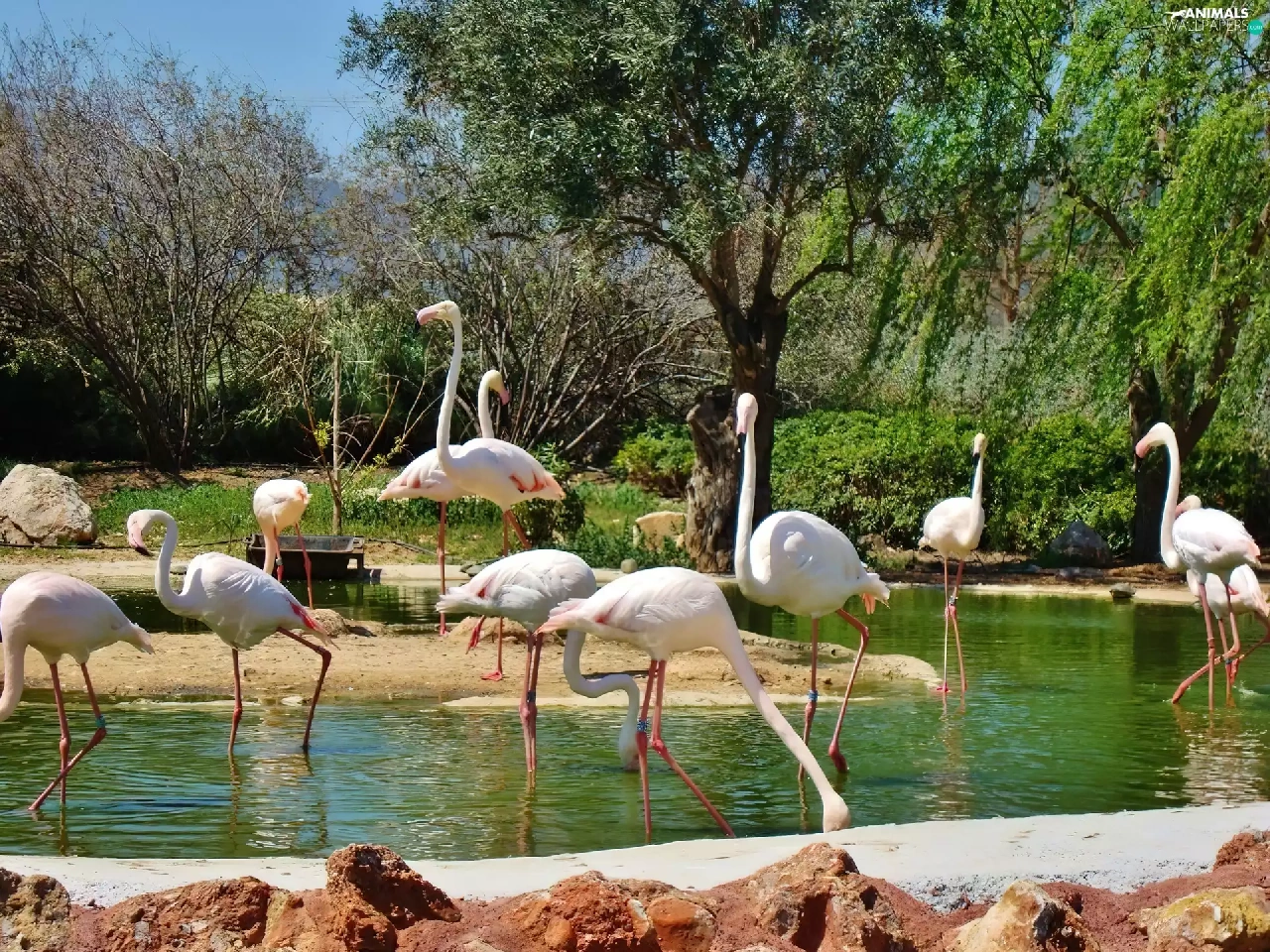 flock, flamingos