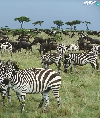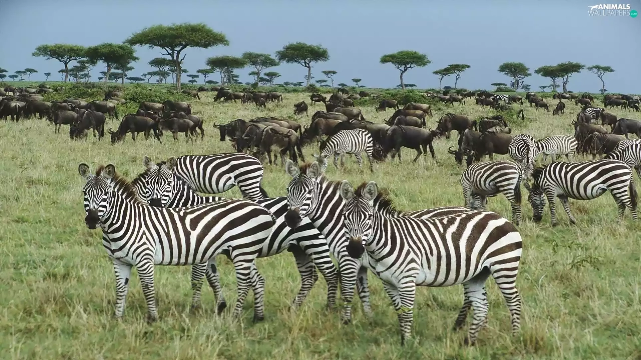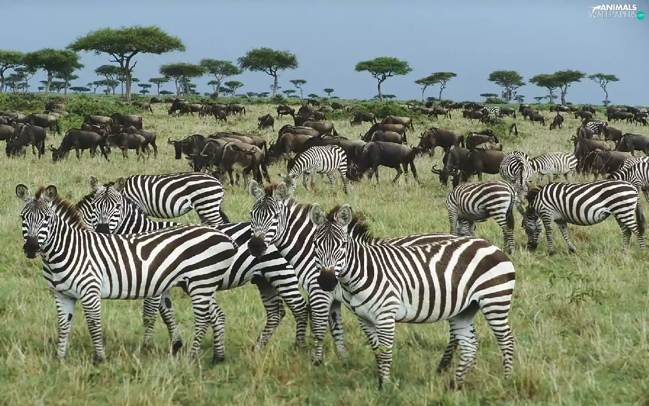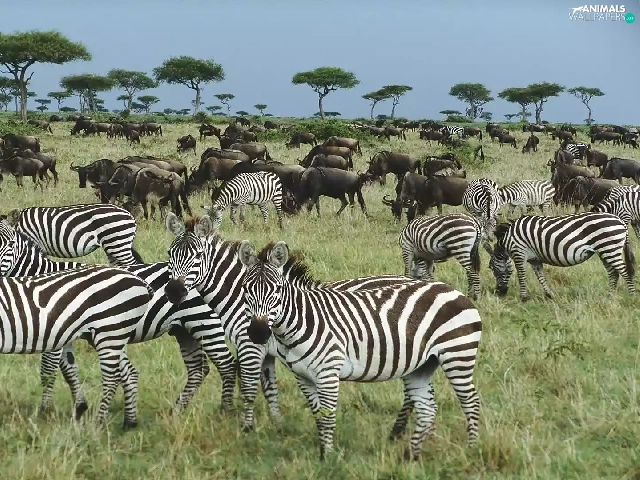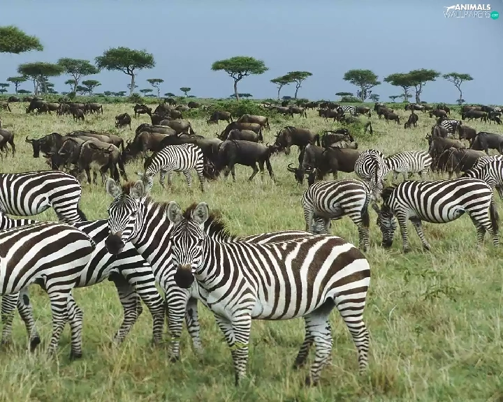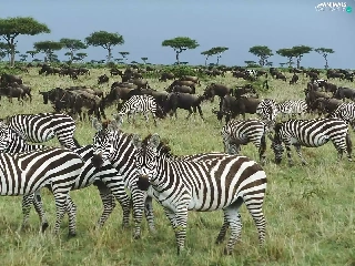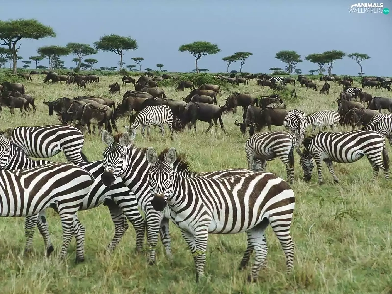 Flock, zebra, savanna