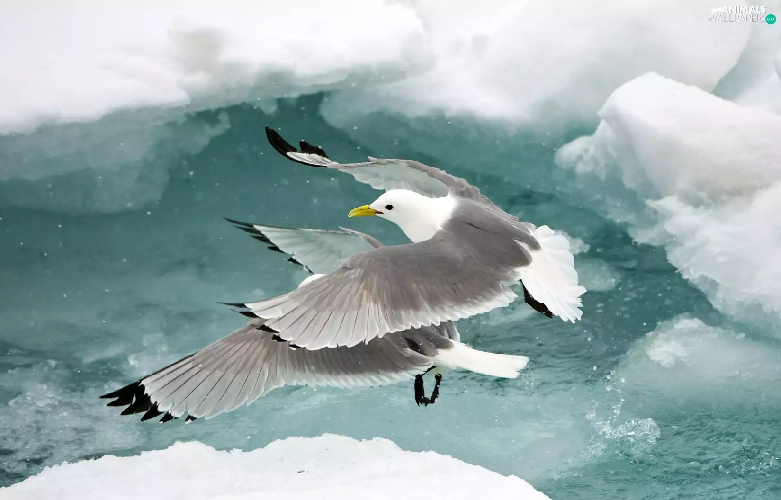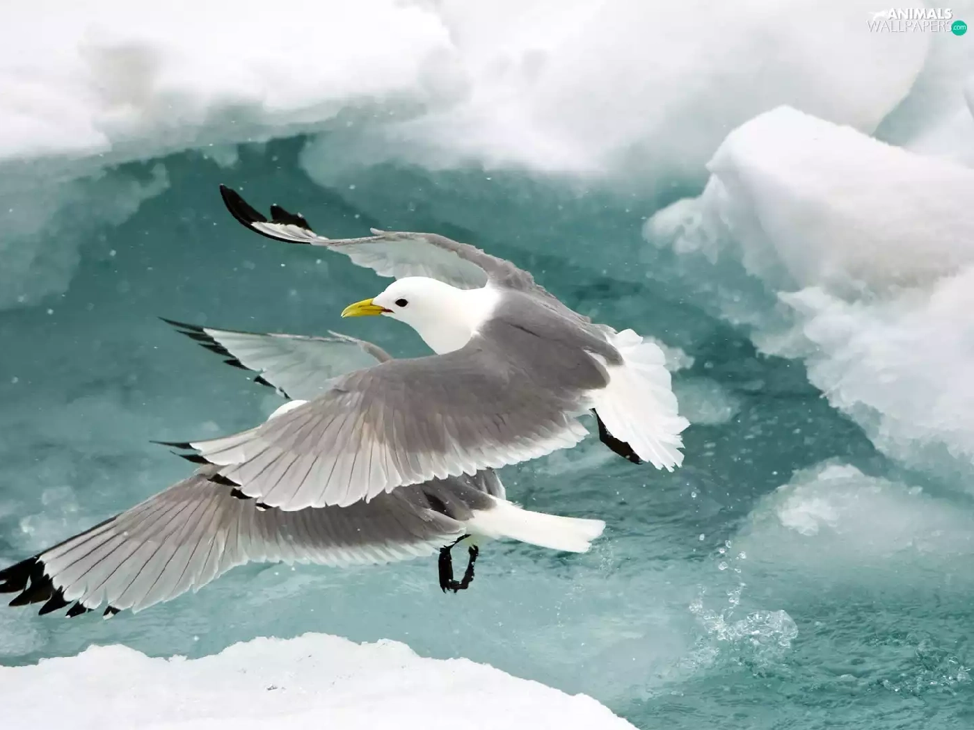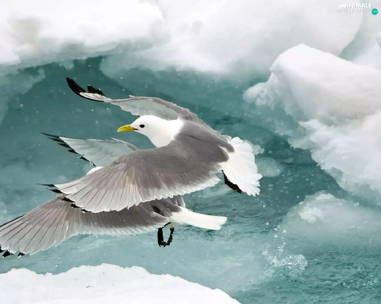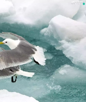 floe, gulls, water