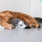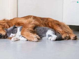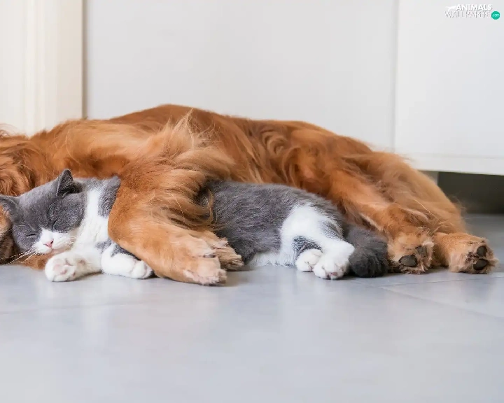 cat, floor, ginger, dog, sleepy