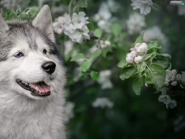 dog, Flourished, Twigs, Alaskan Malamute