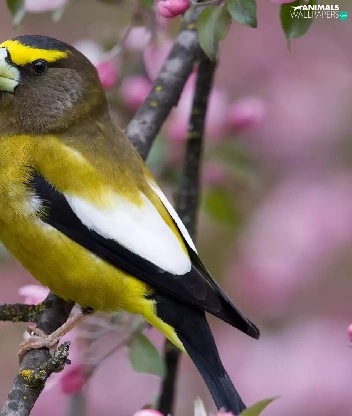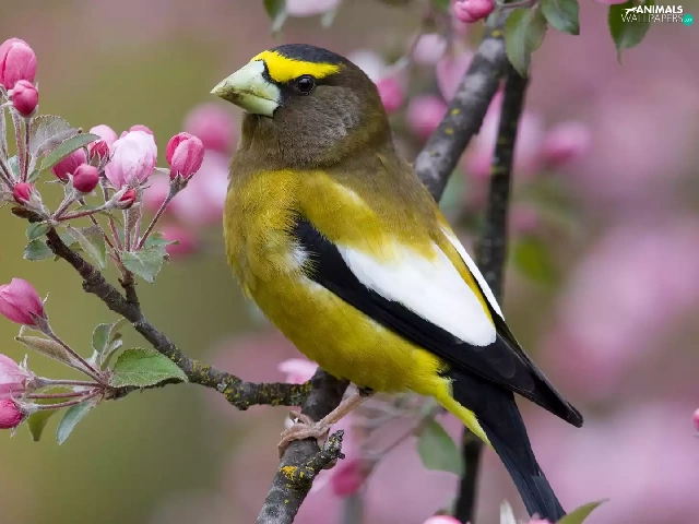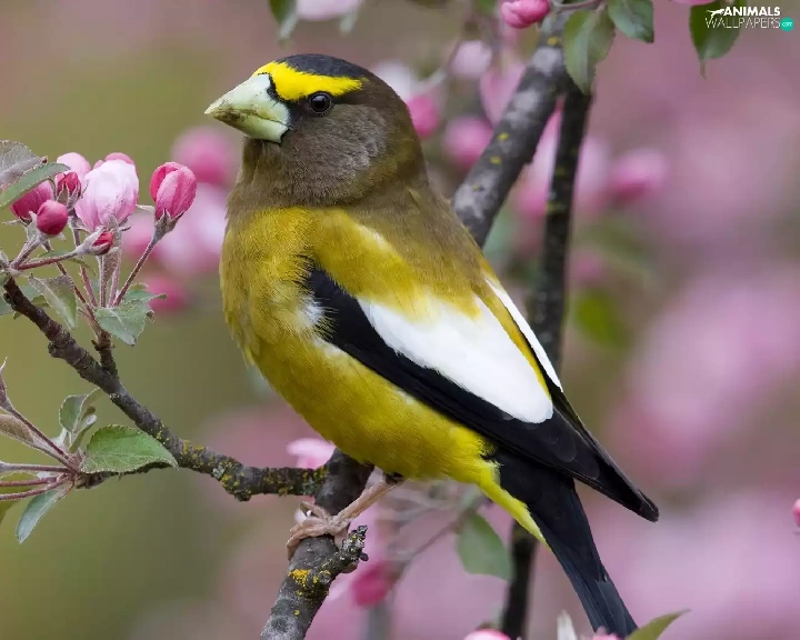 birdies, trees, Spring, flourishing