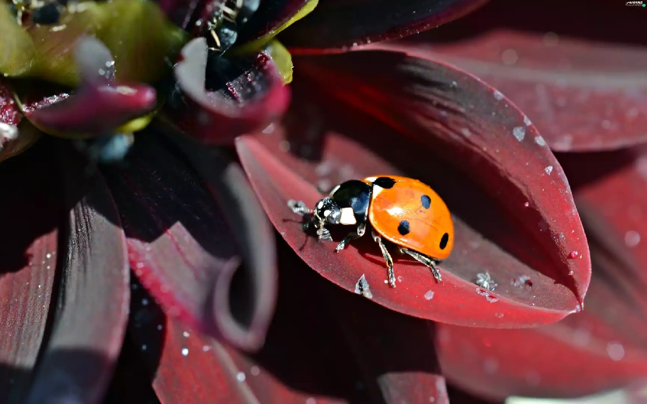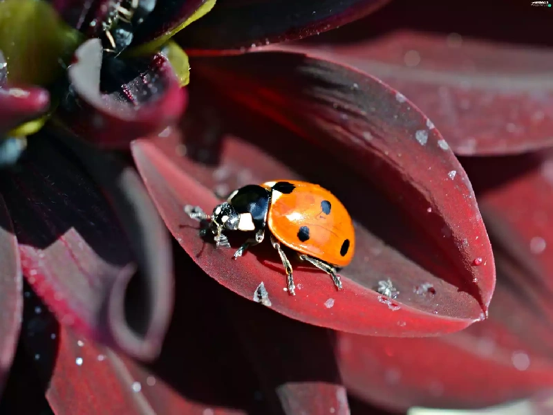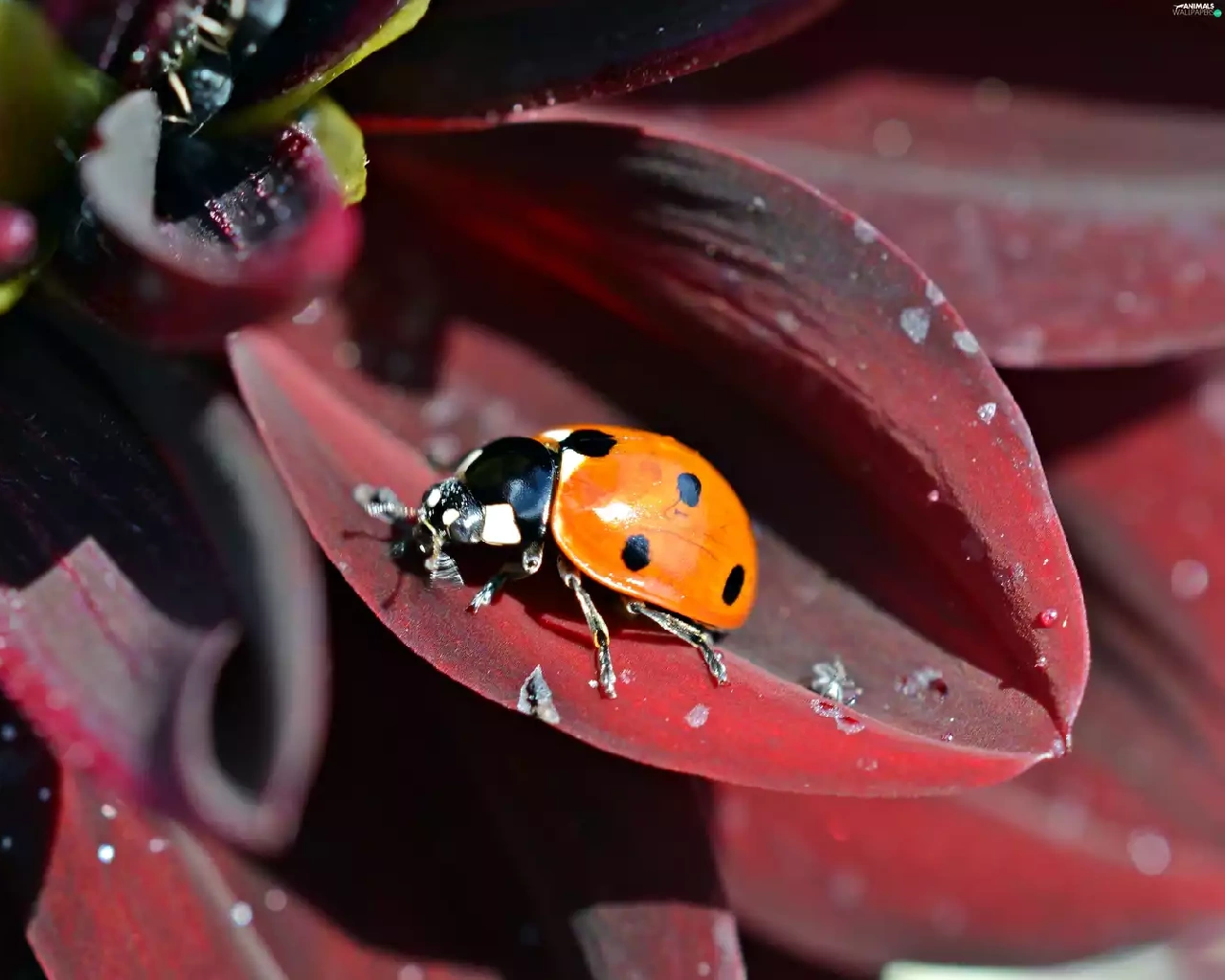 Red, flakes, ladybird, Flower