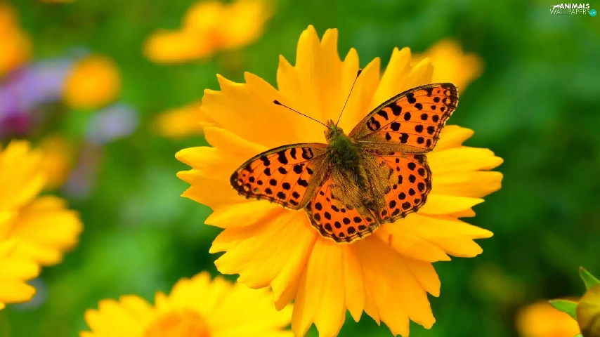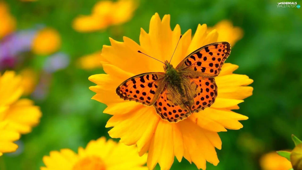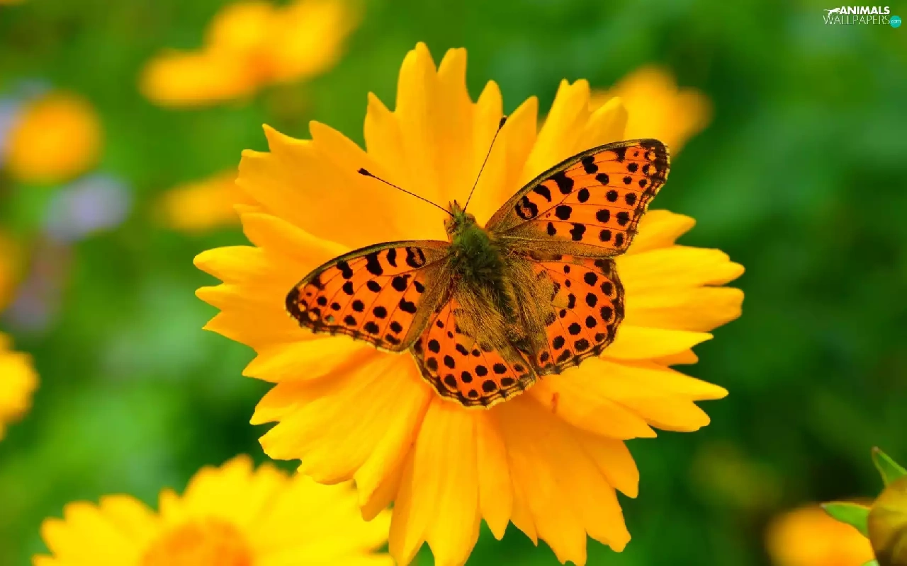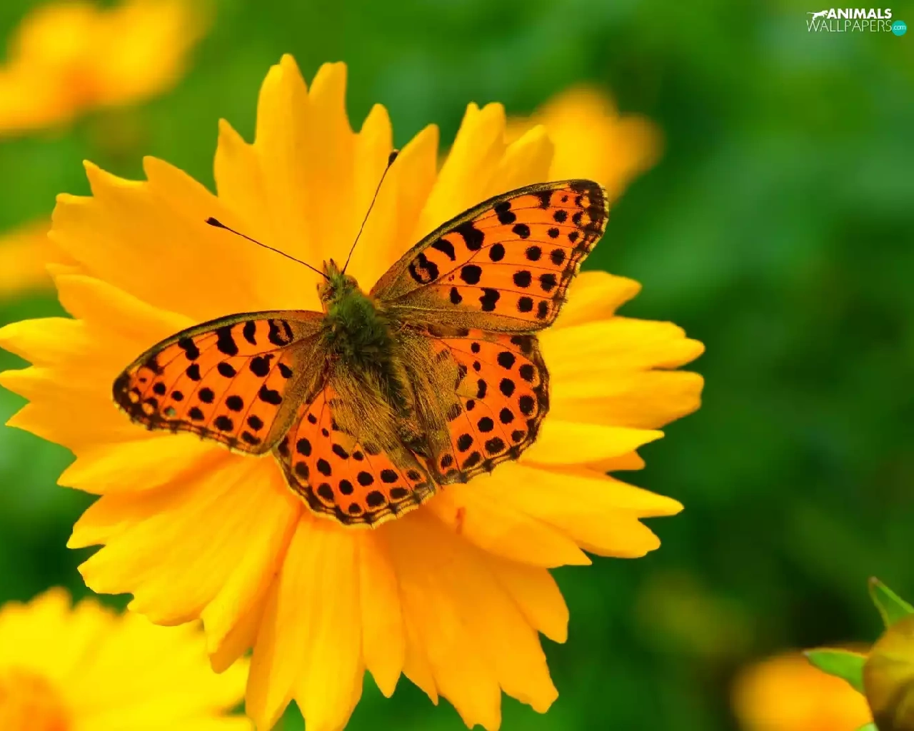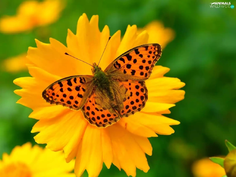 butterfly, Yellow, Flower, Queen of Spain Fritillary