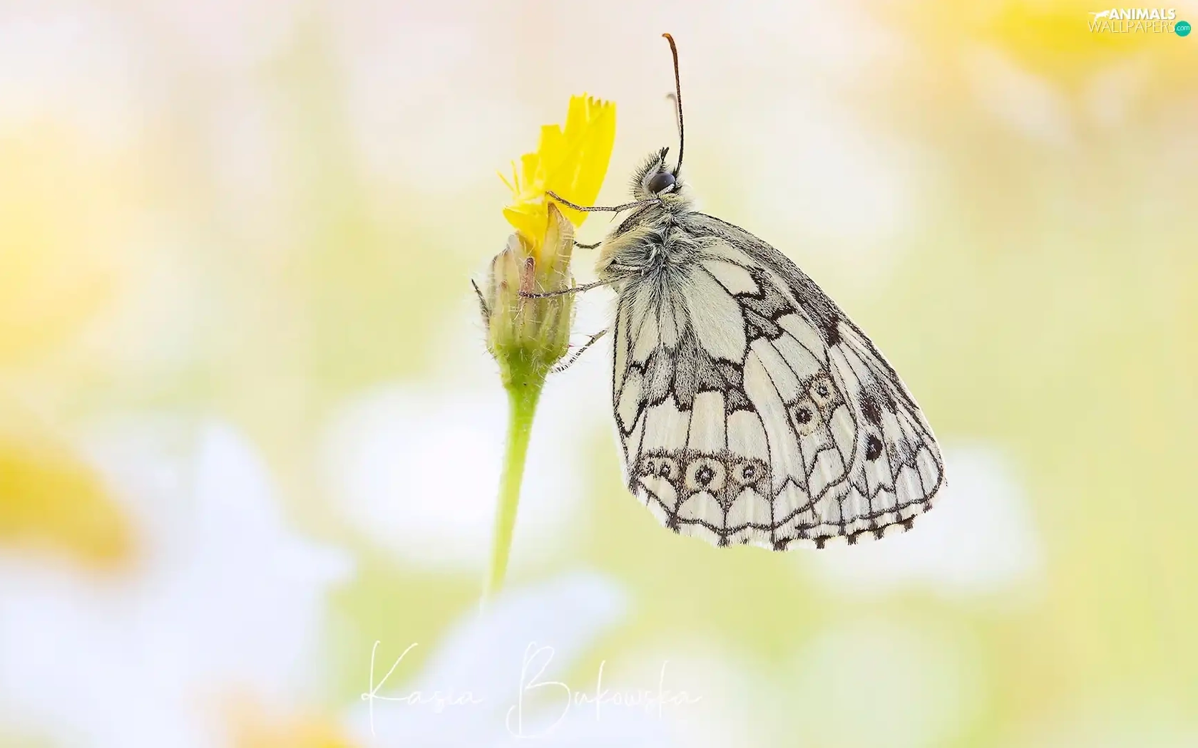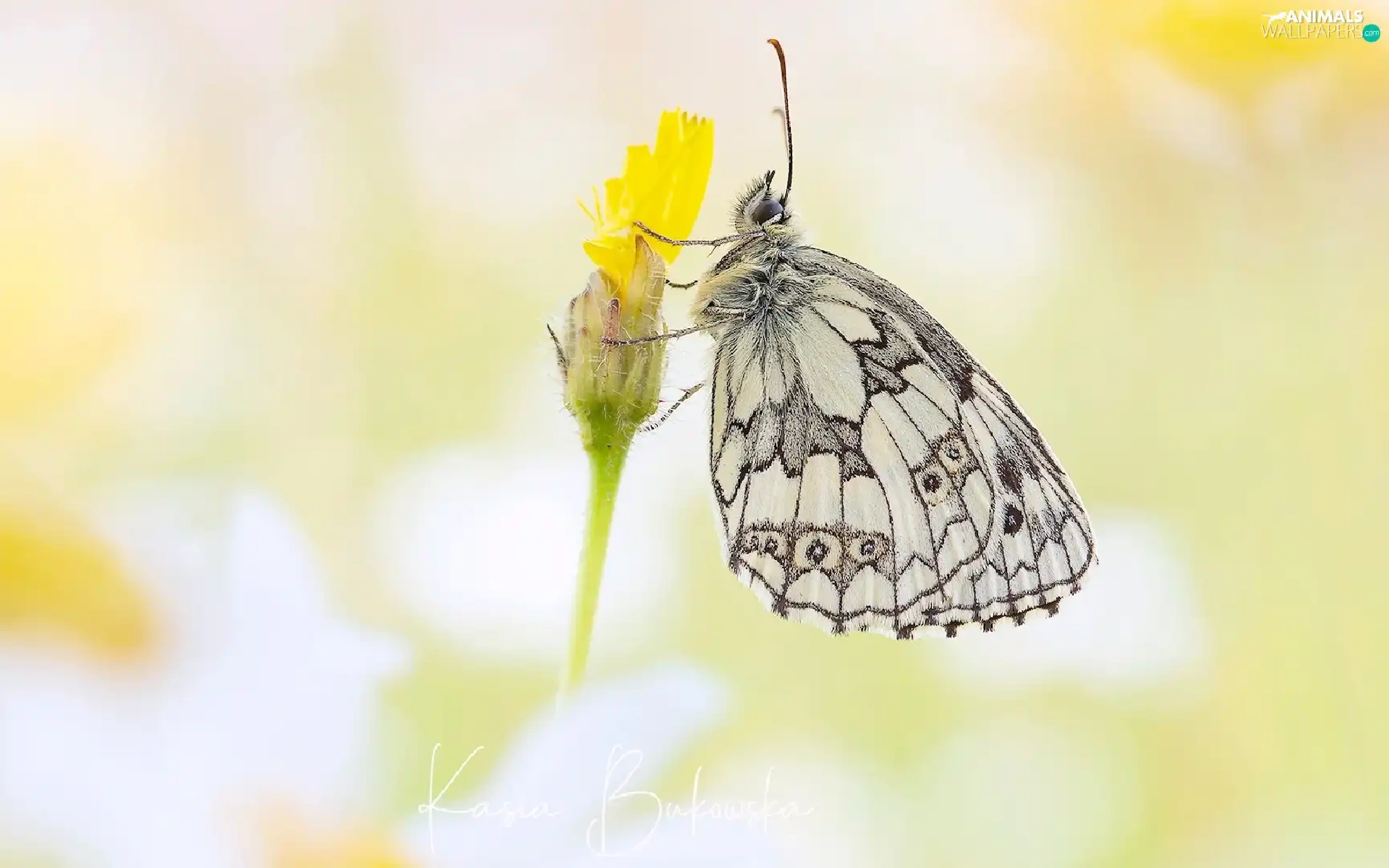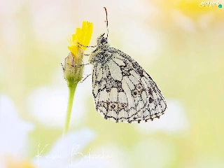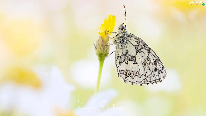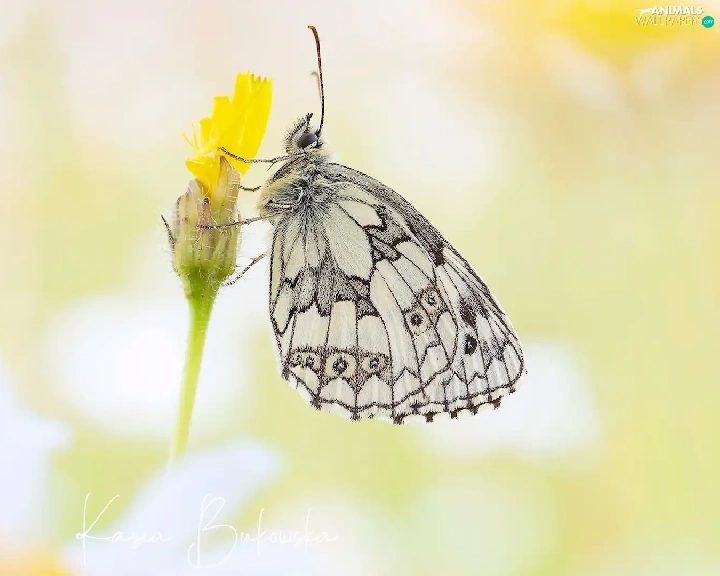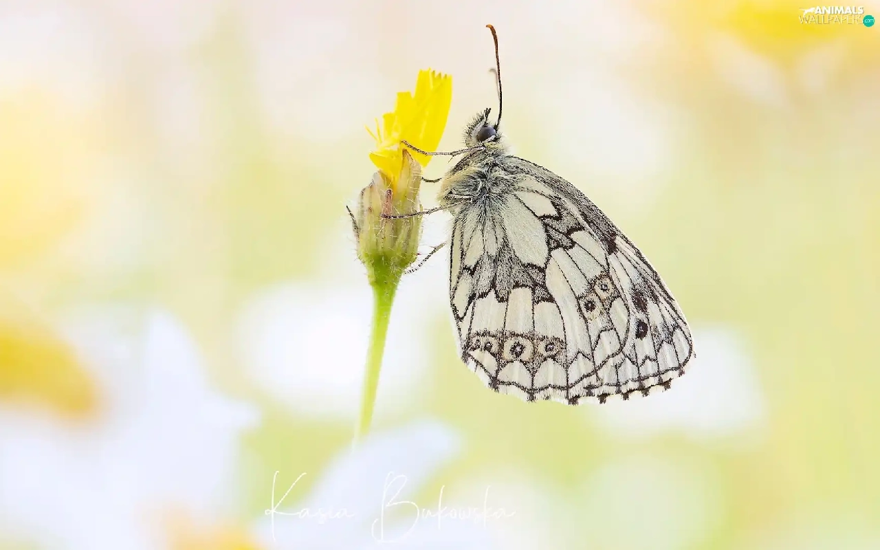 butterfly, Flower, Yellow, marbled chessboard