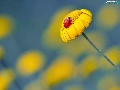 Yellow, ladybird, reflection, Flower