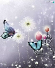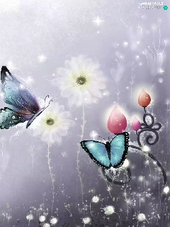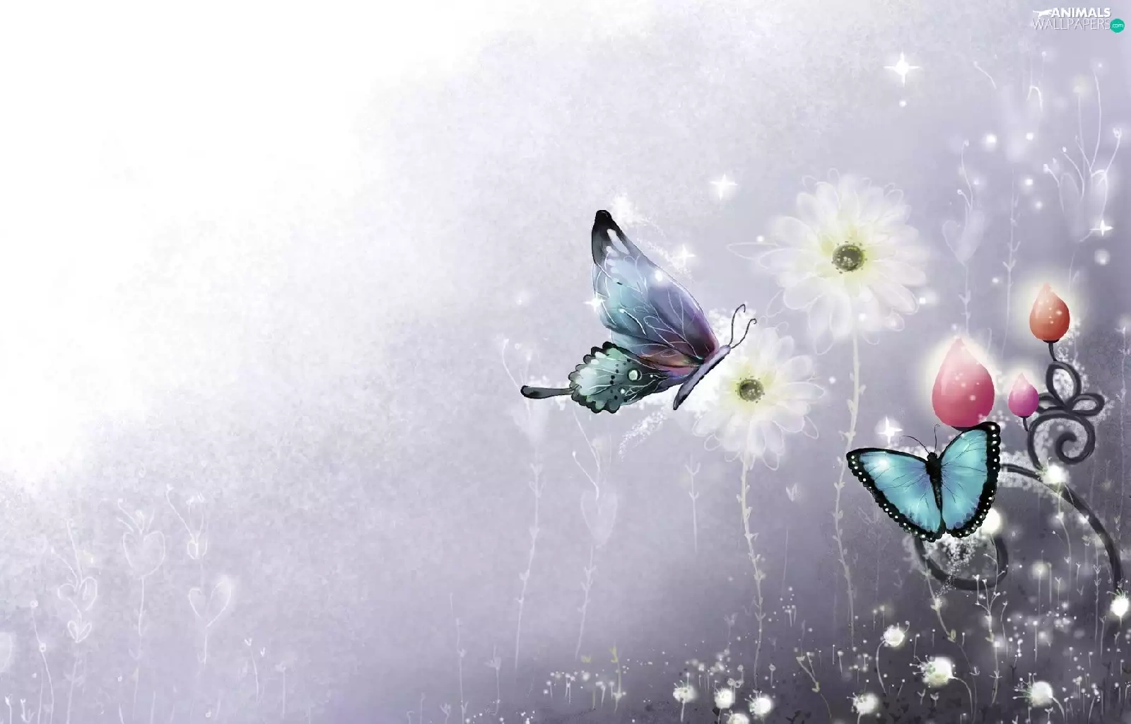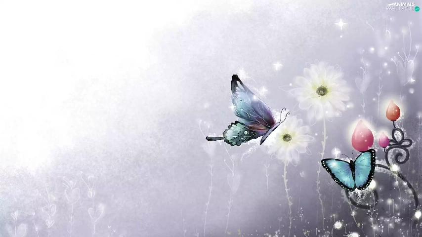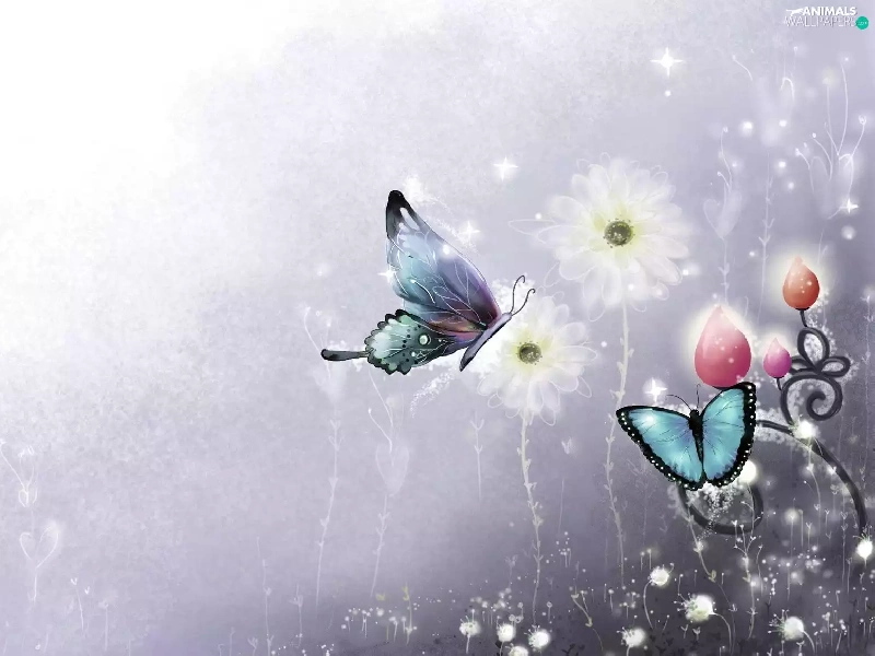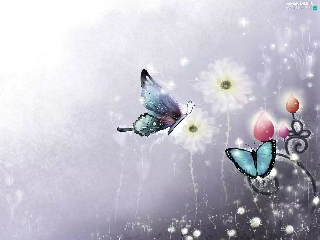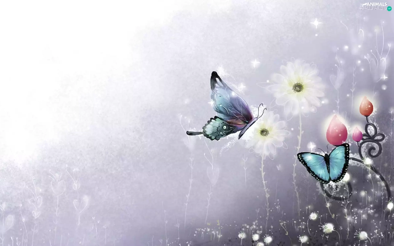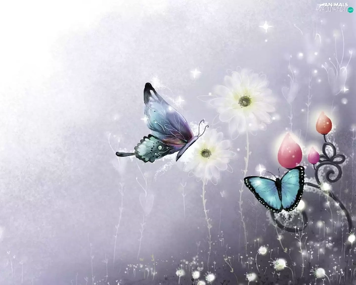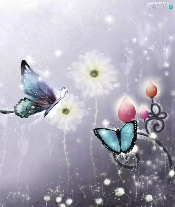 2D Graphics, butterflies, Flowers
