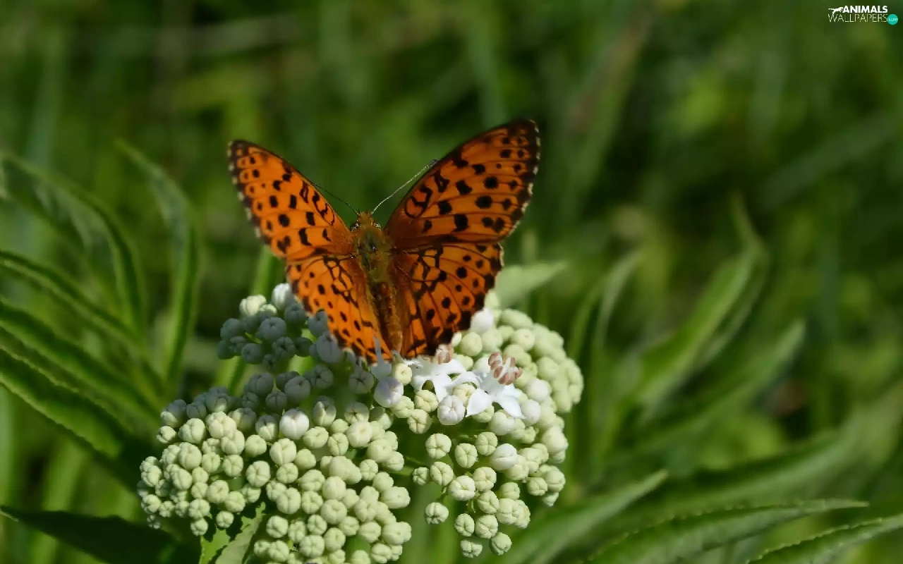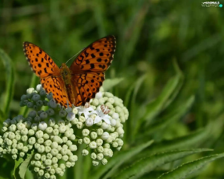White, Flowers, argynnis, Paphia, butterfly