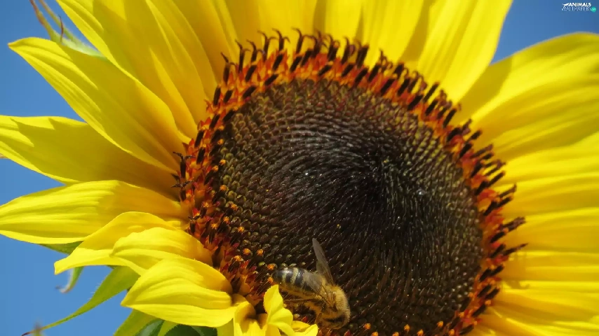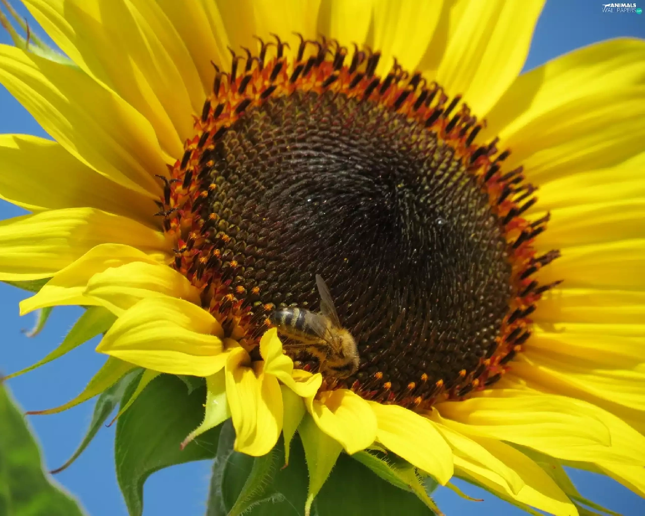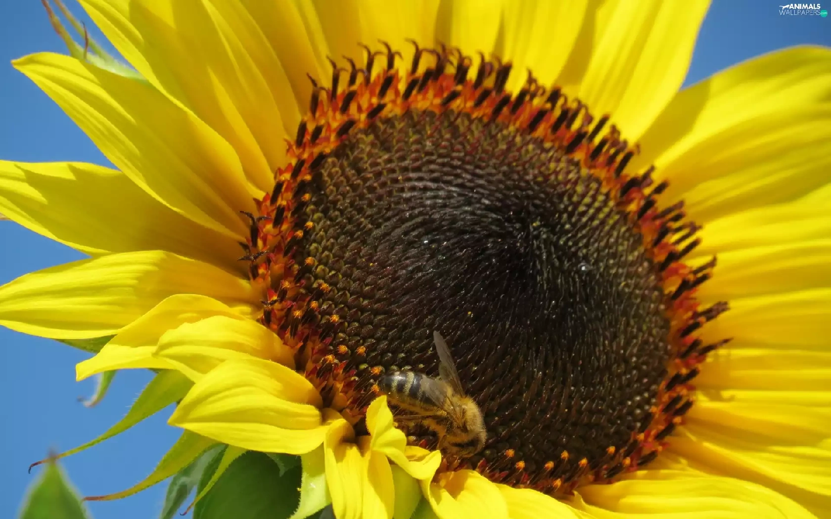 Colourfull Flowers, bee, Insect, Sunflower