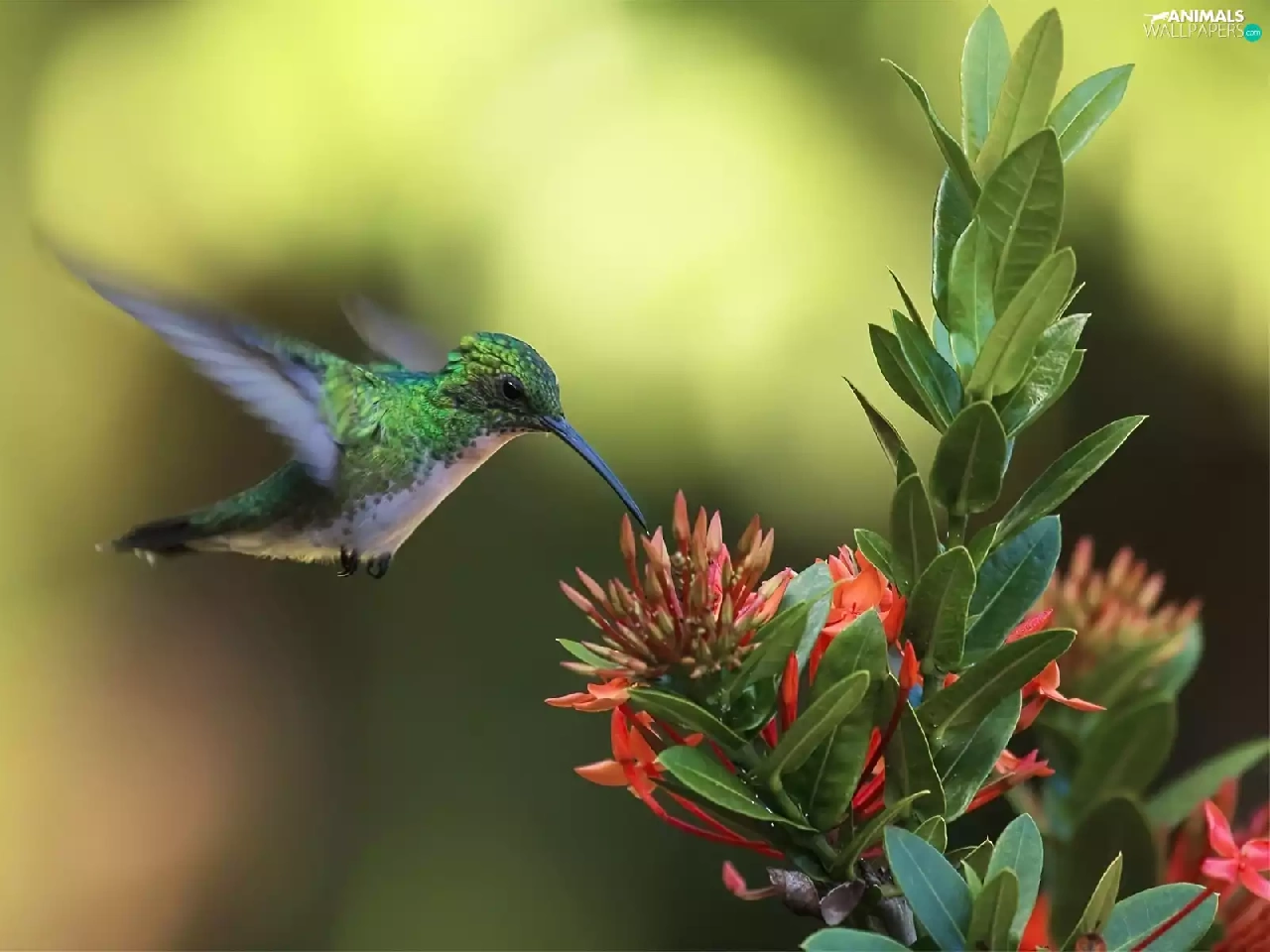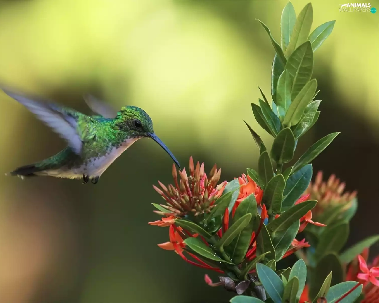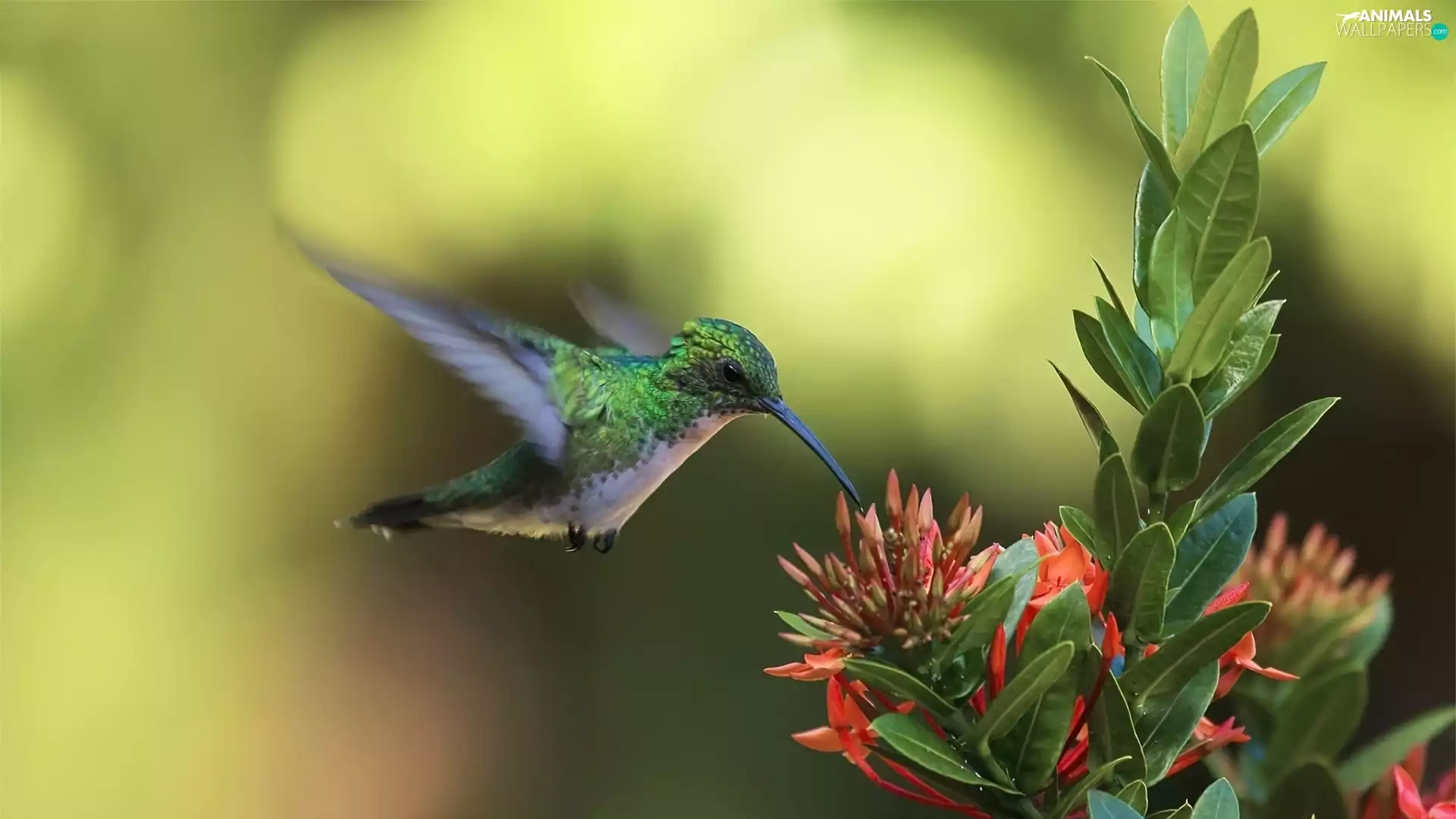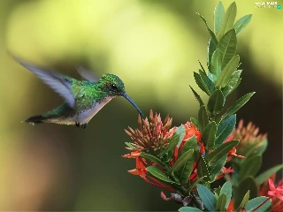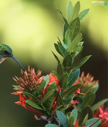 Colourfull Flowers, Bird, humming-bird