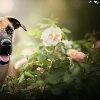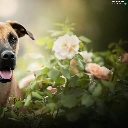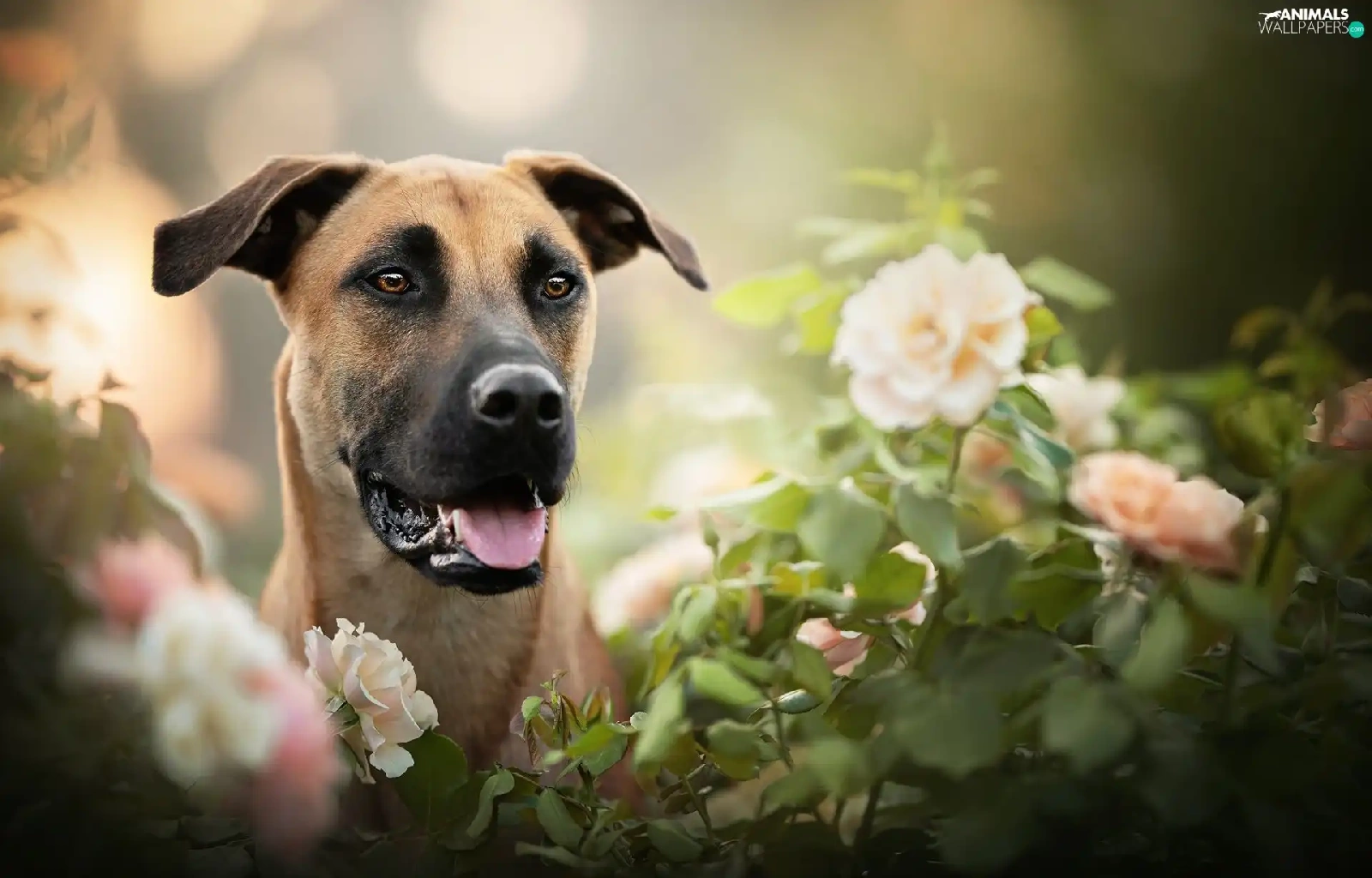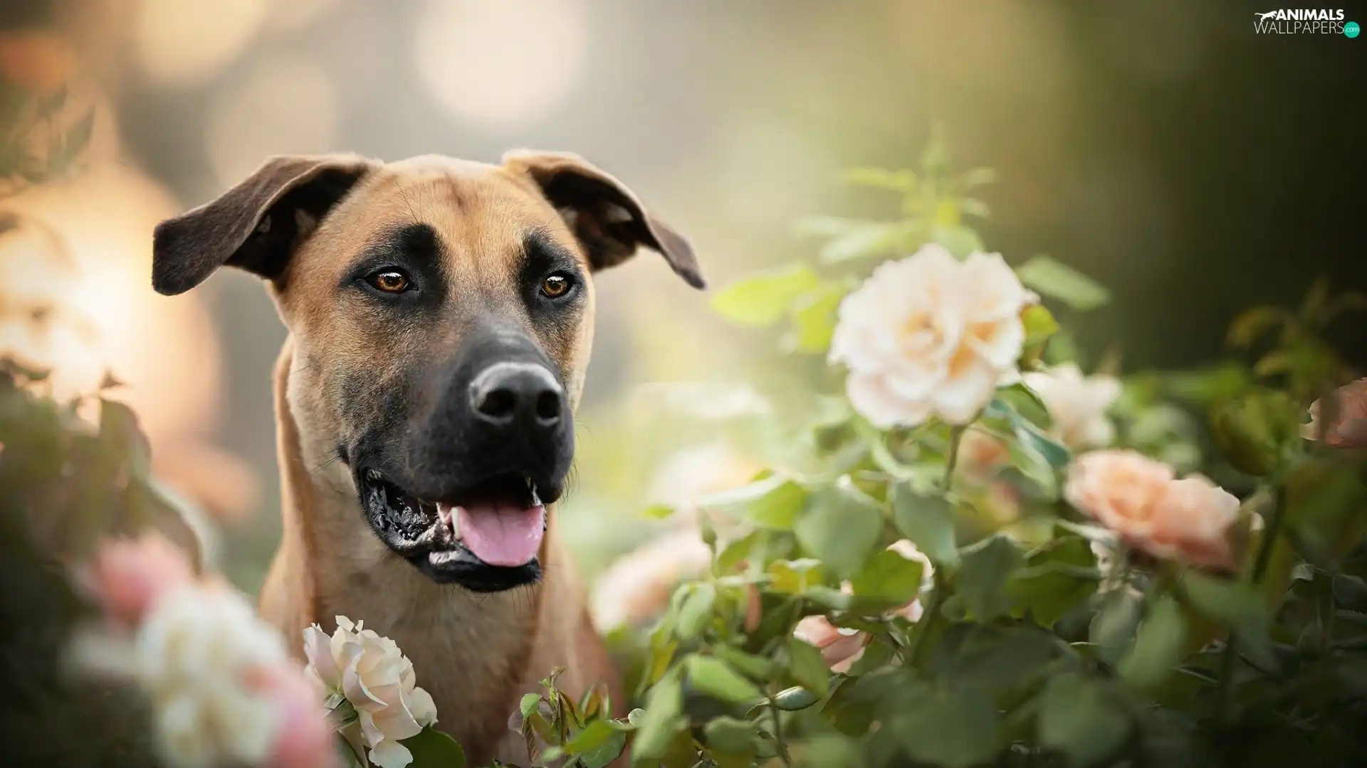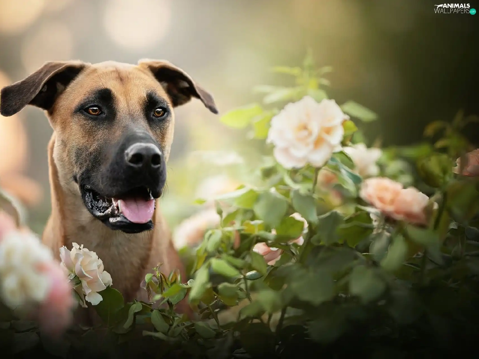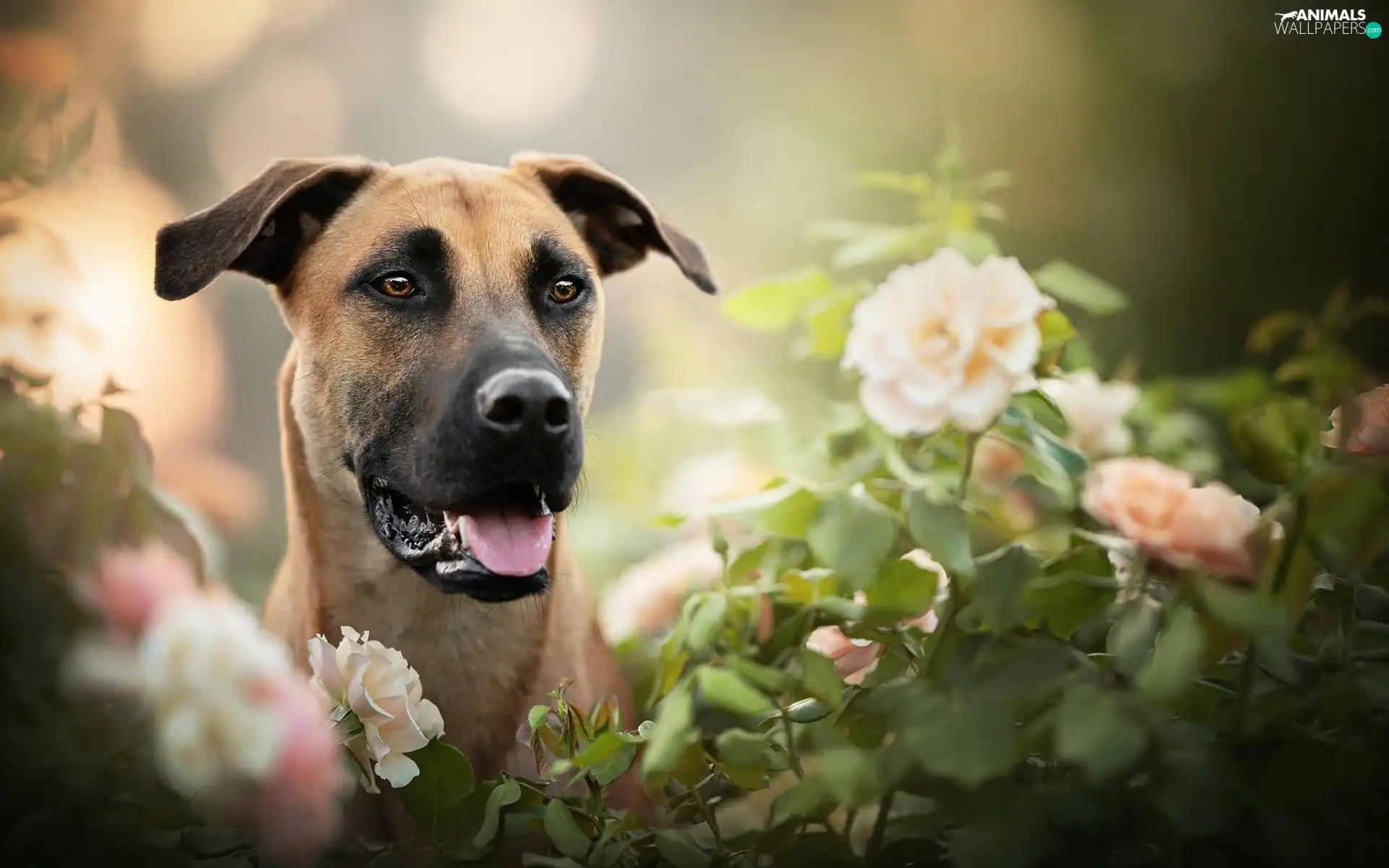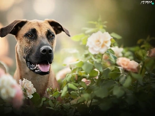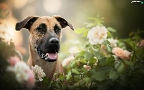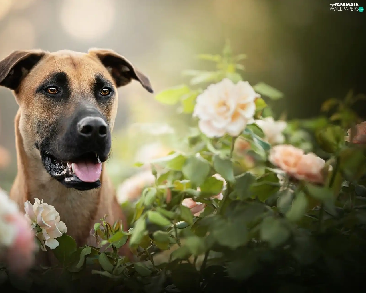 dog, Flowers, blur, Blackmouth Cur