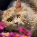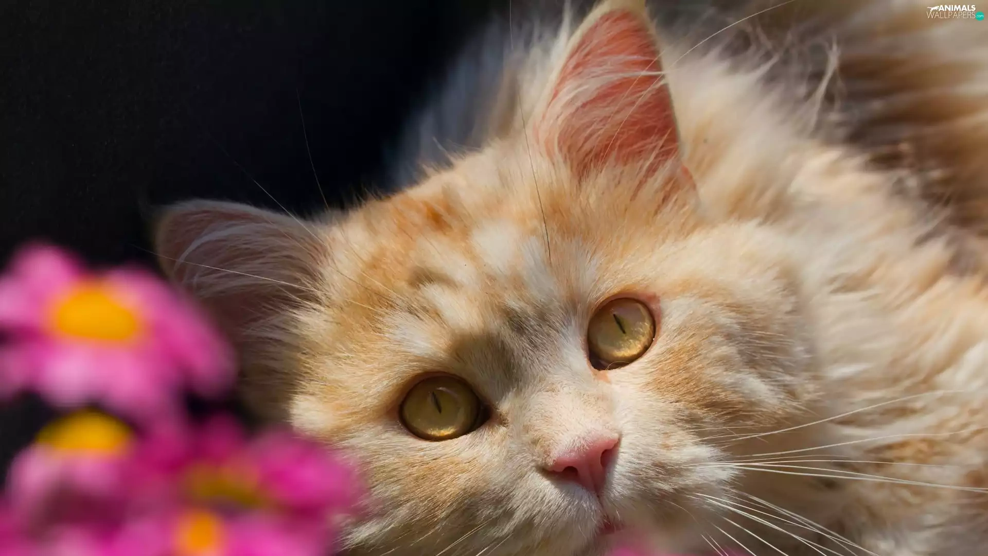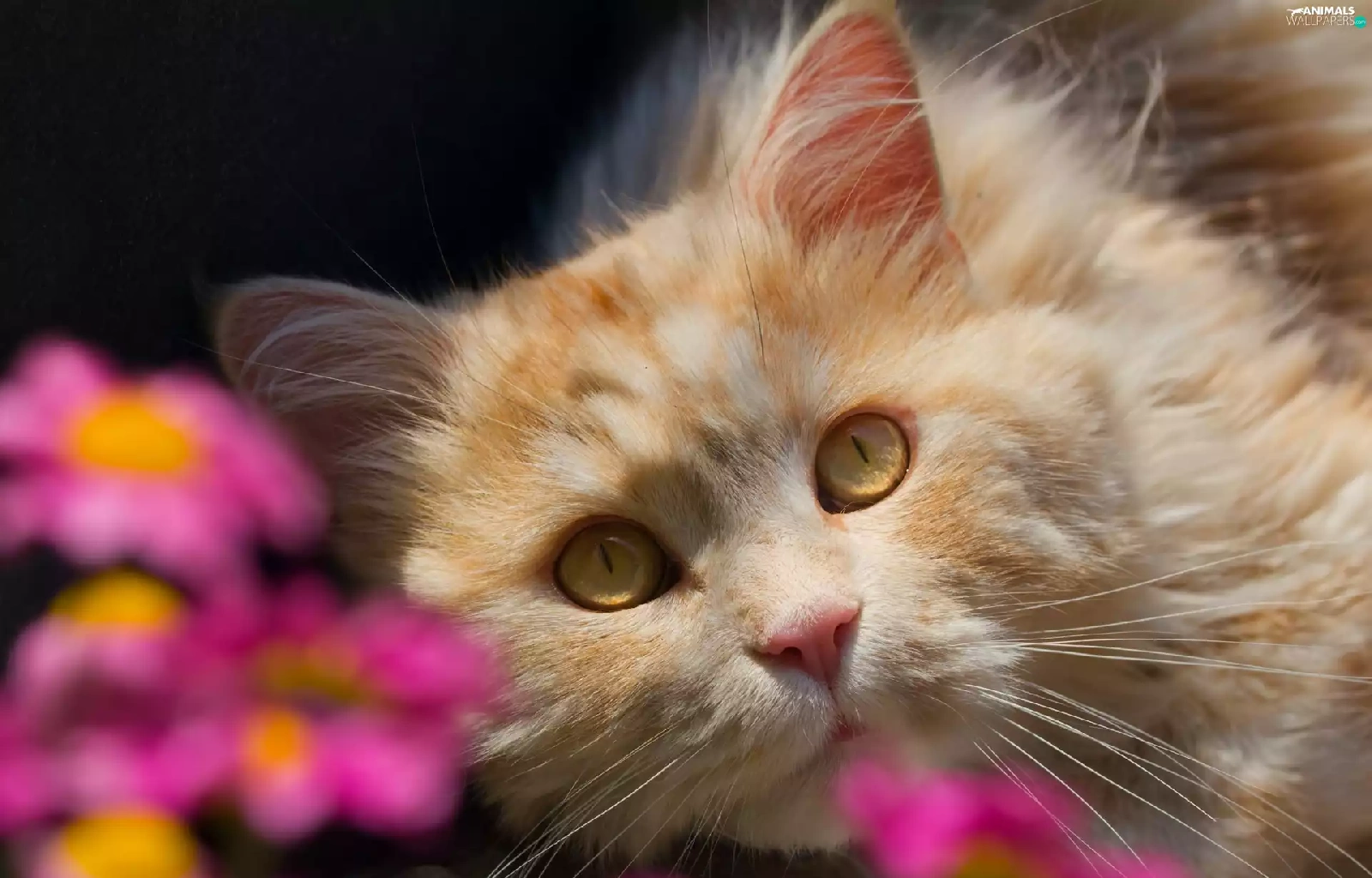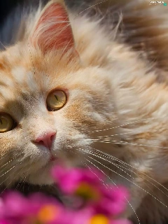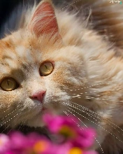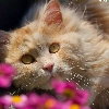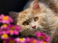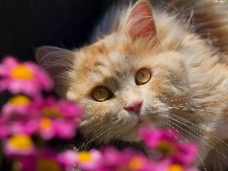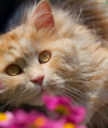cat, Flowers, blur, The look