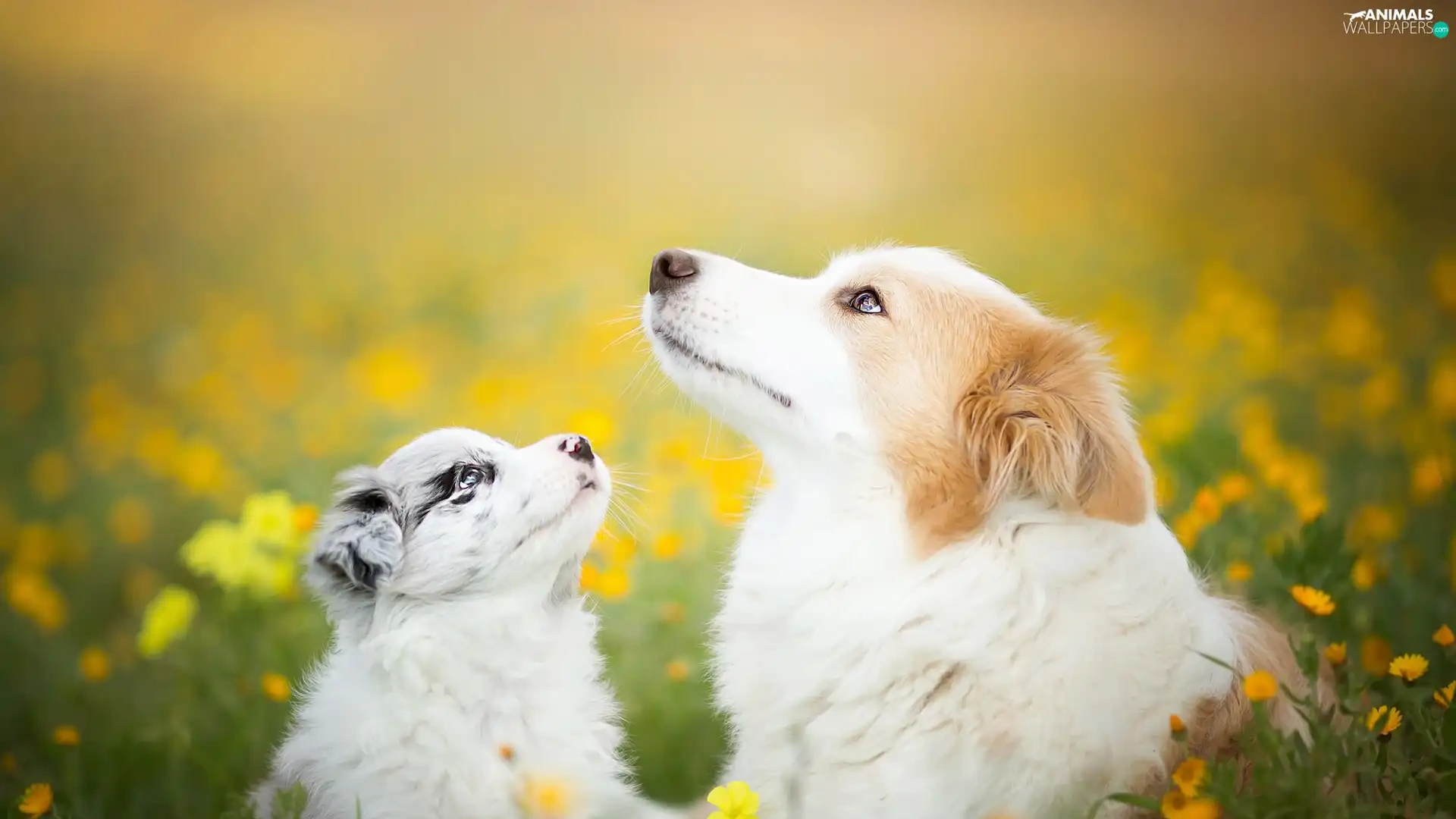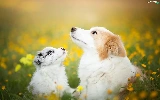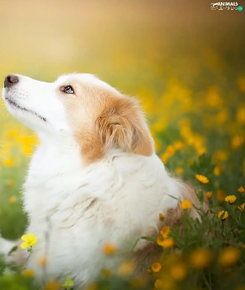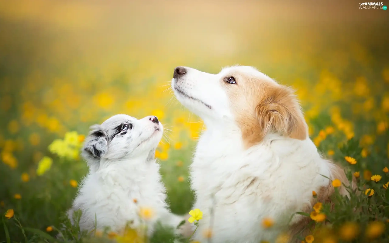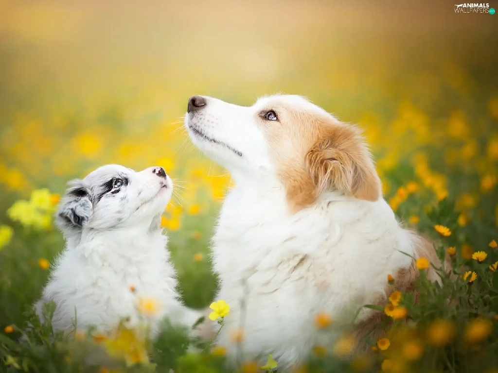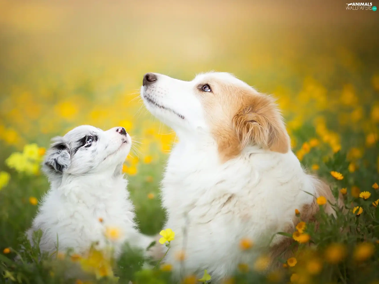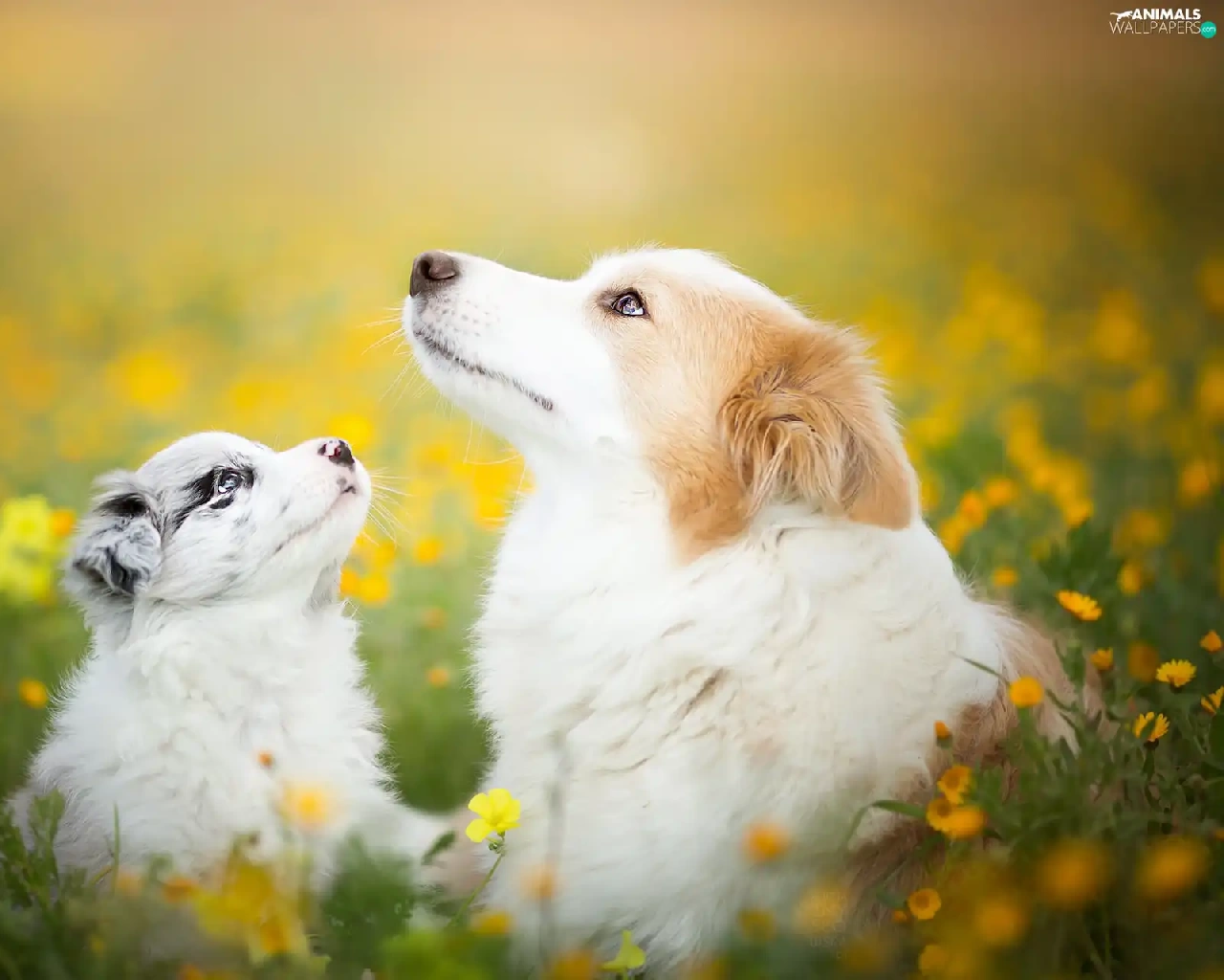 Dogs, Meadow, Flowers, Border Collie