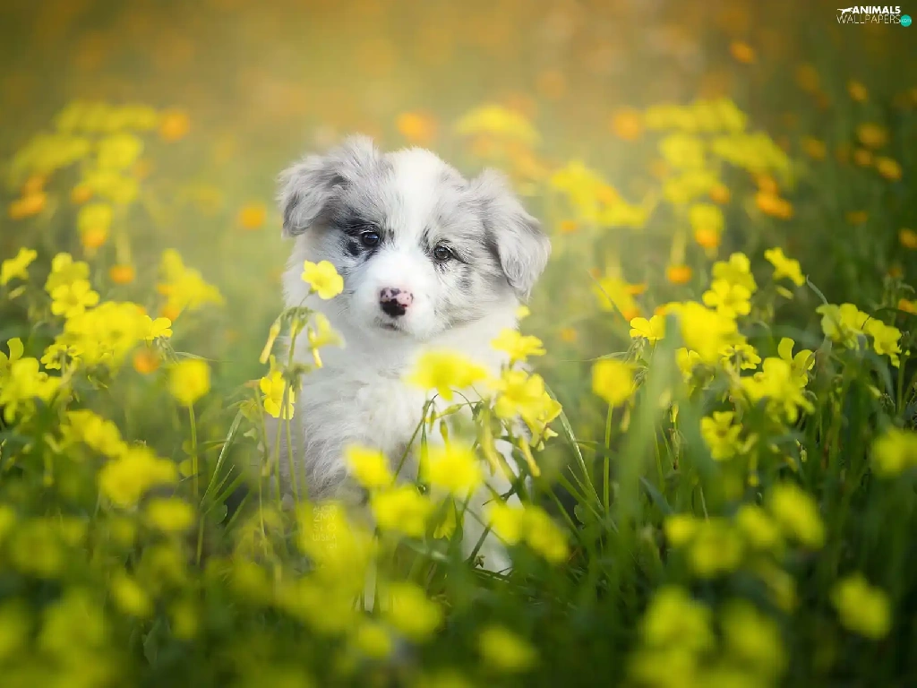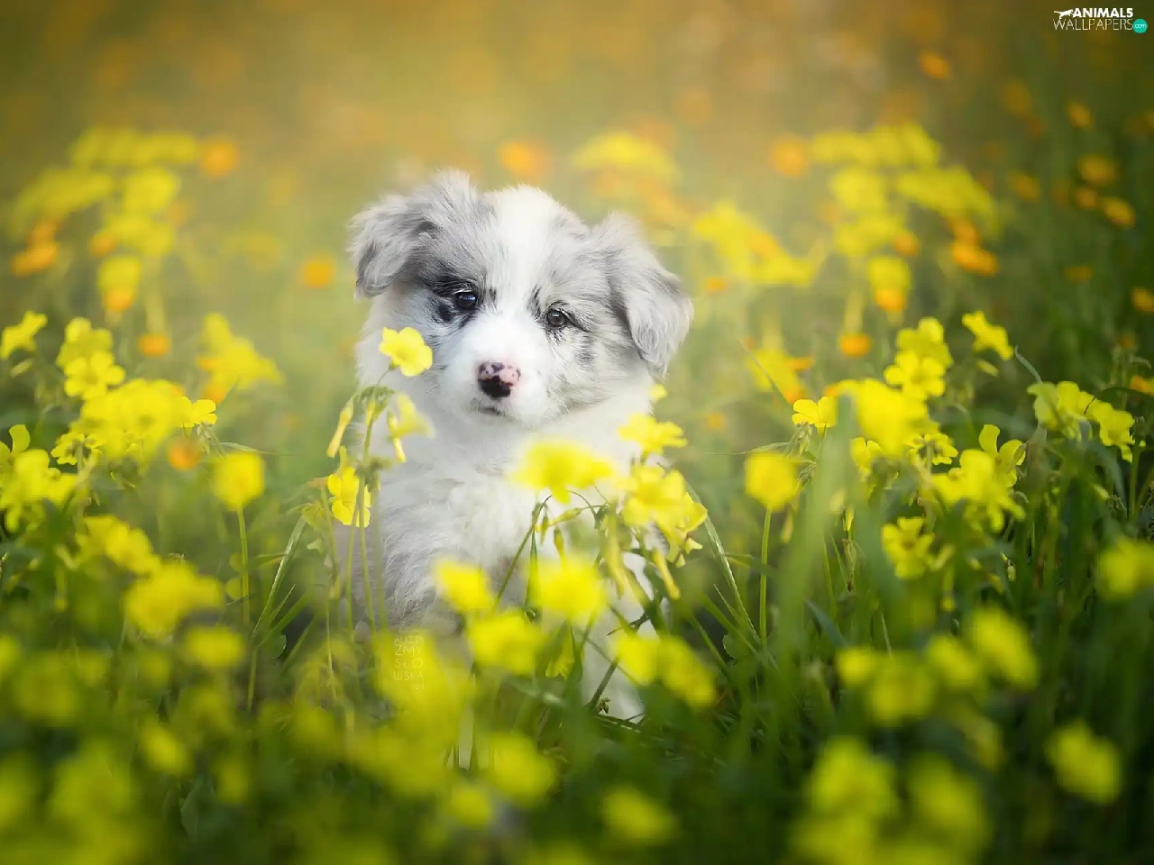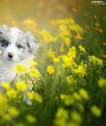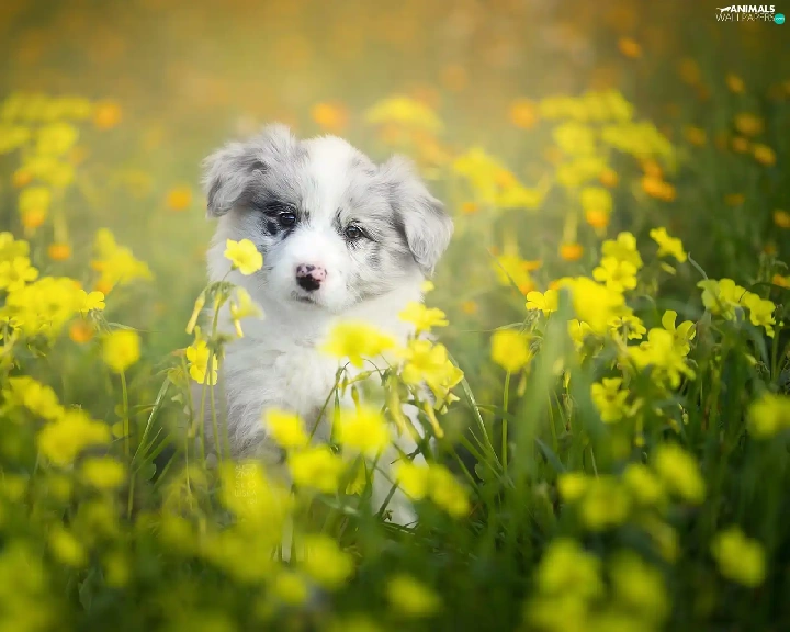 Puppy, Meadow, Flowers, Border Collie