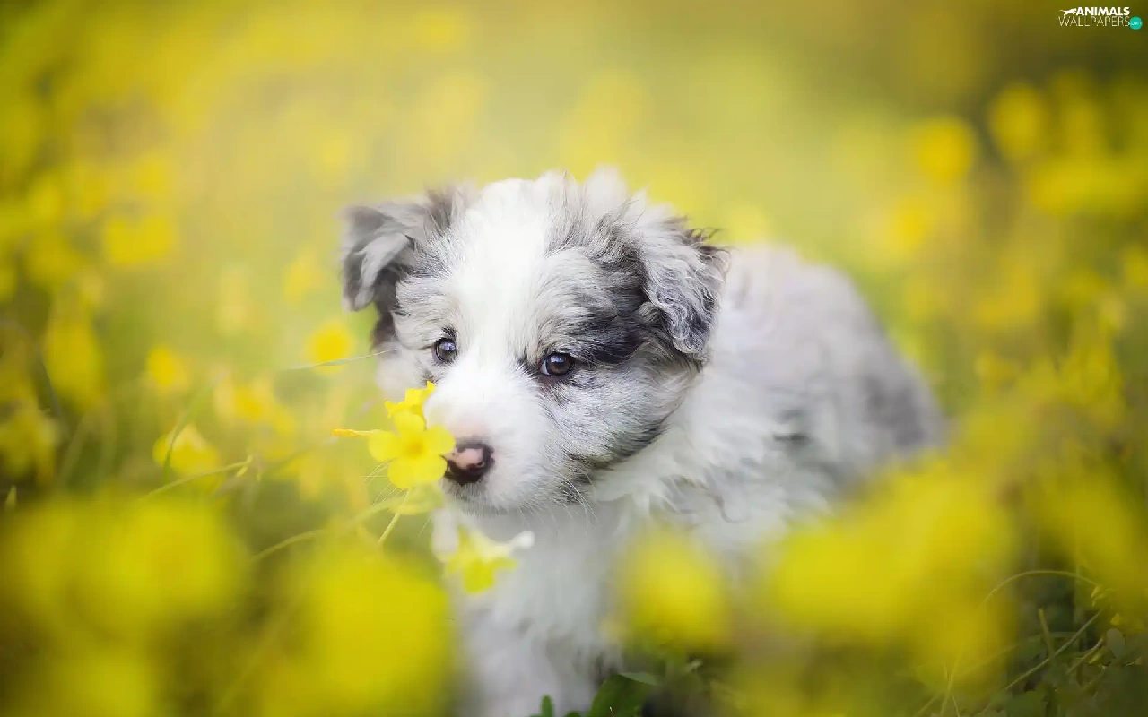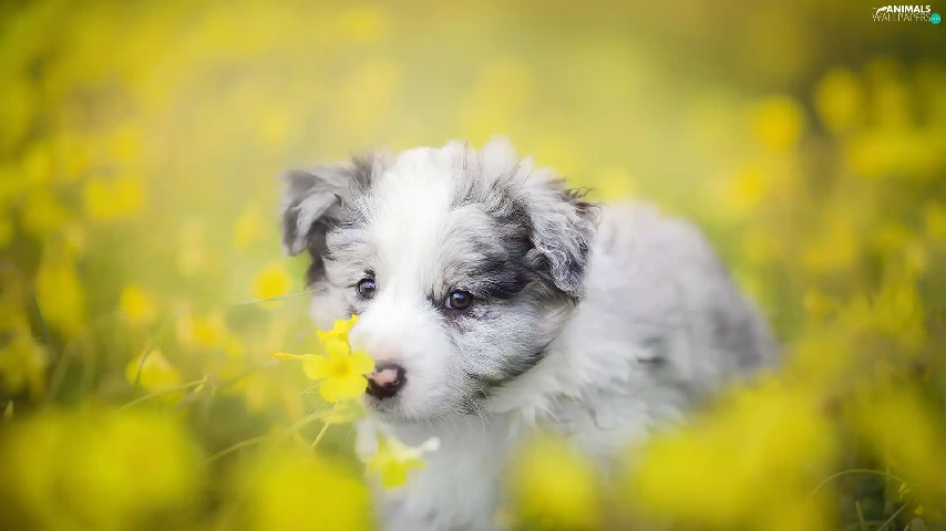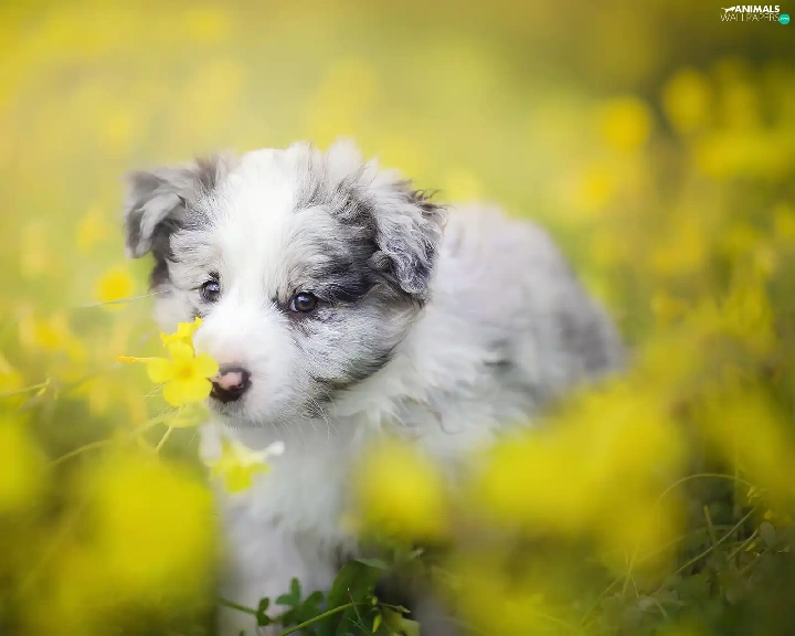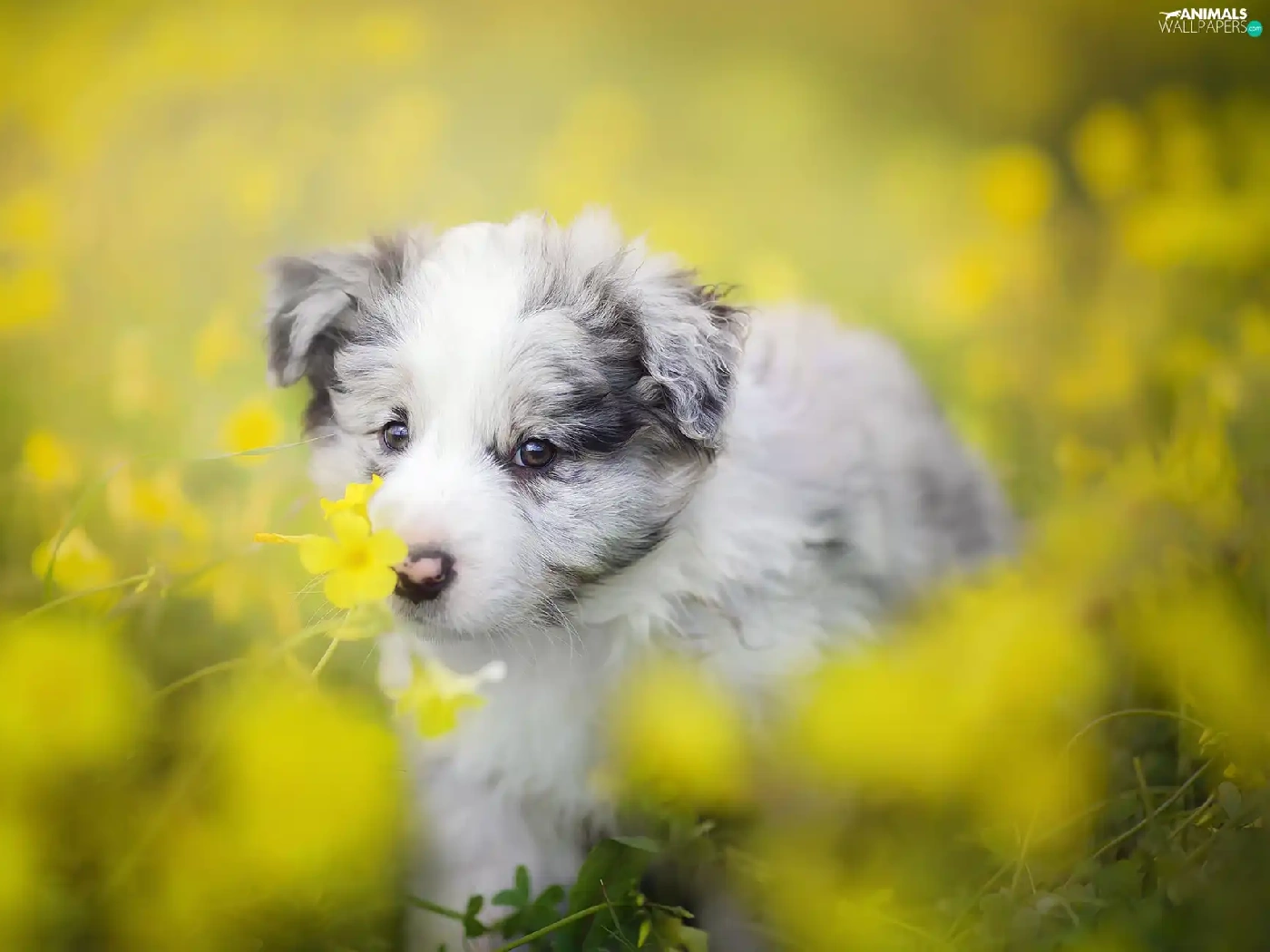 Puppy, Meadow, Flowers, Border Collie
