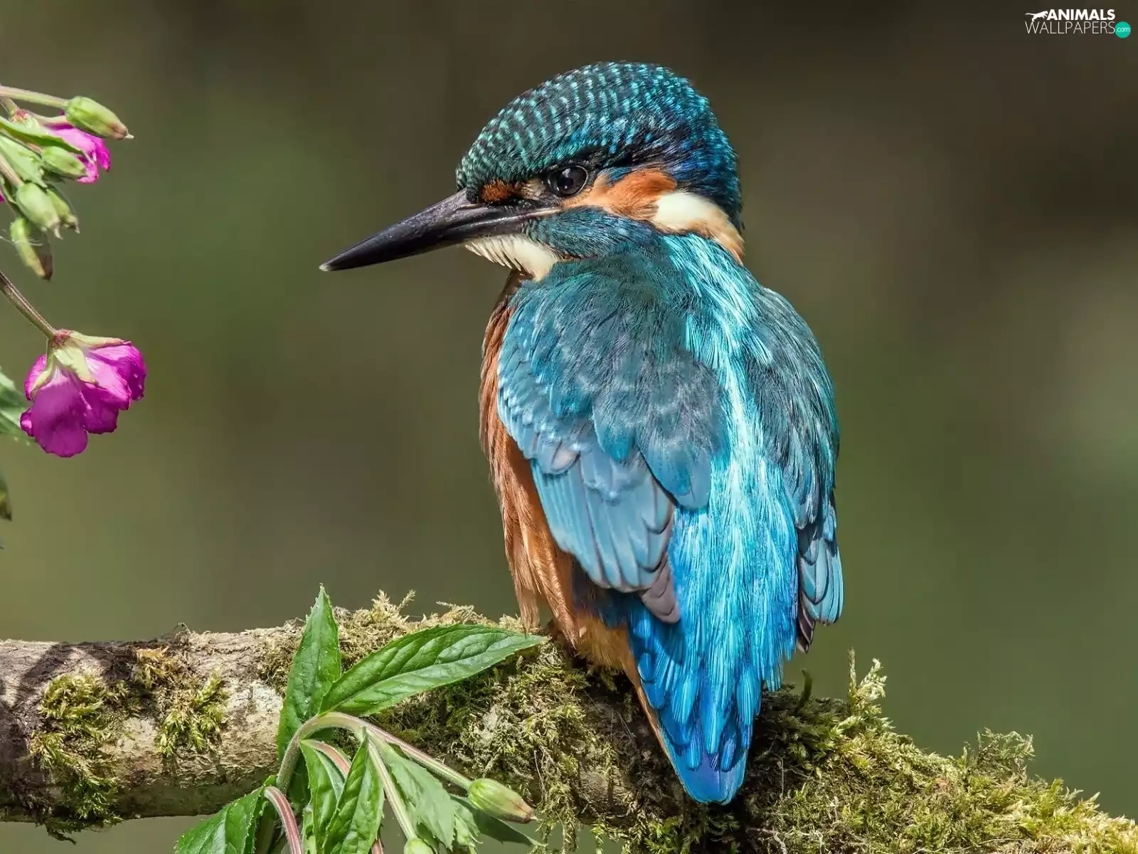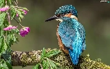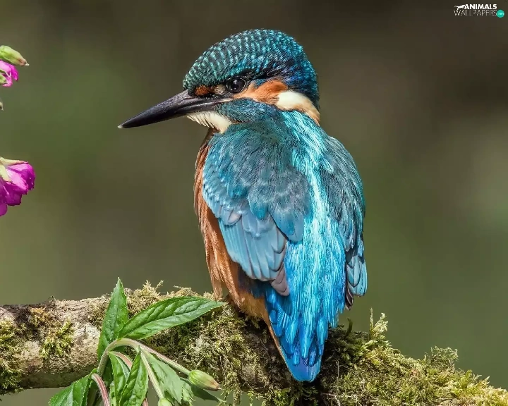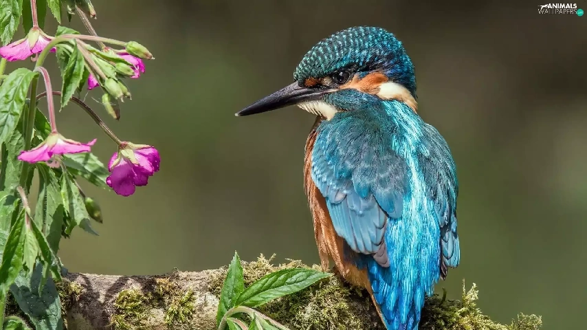 Flowers, kingfisher, branch