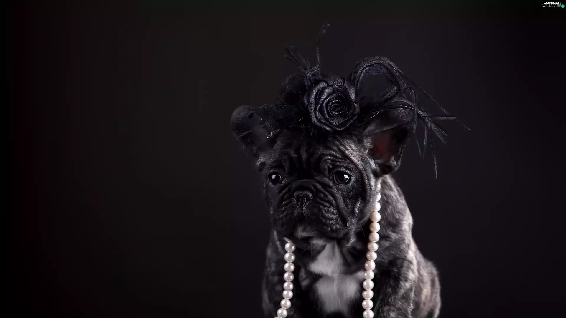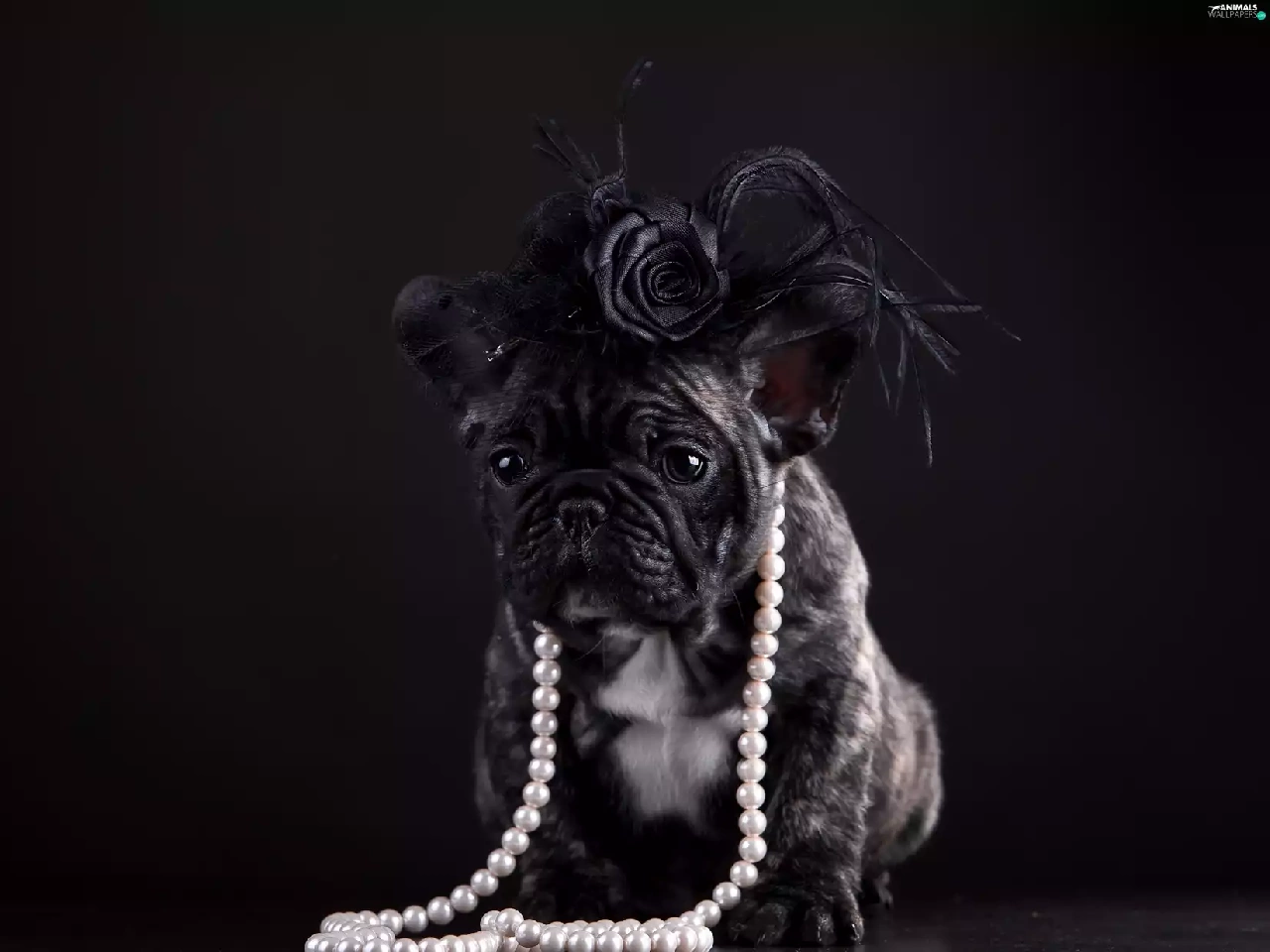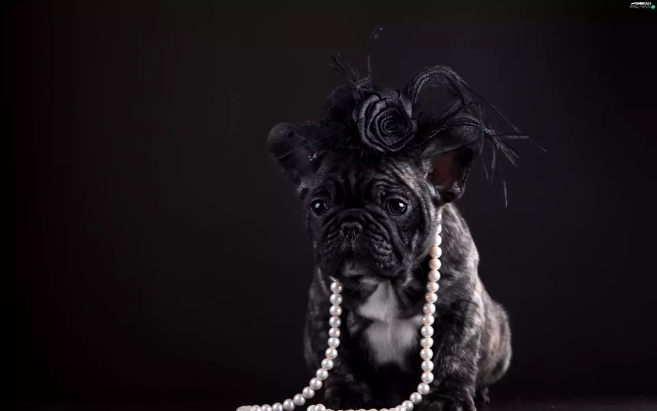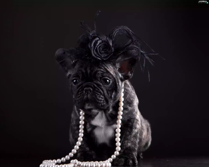 french, dog, Artificial, Flowers, Pearl, Buldog