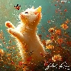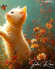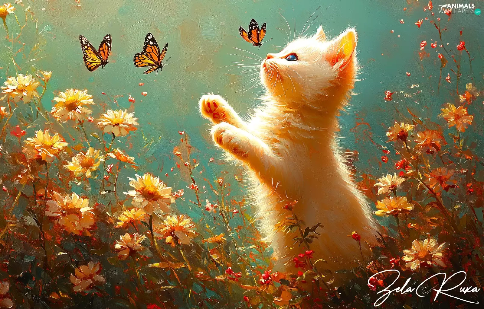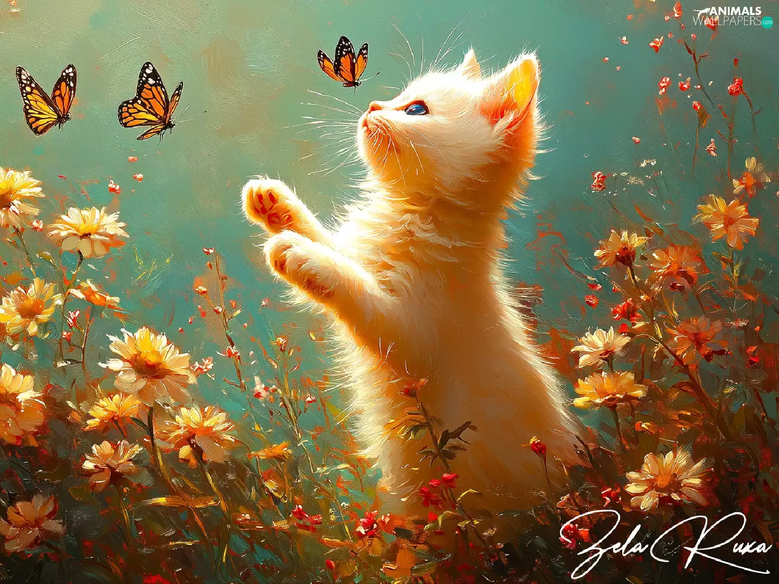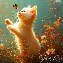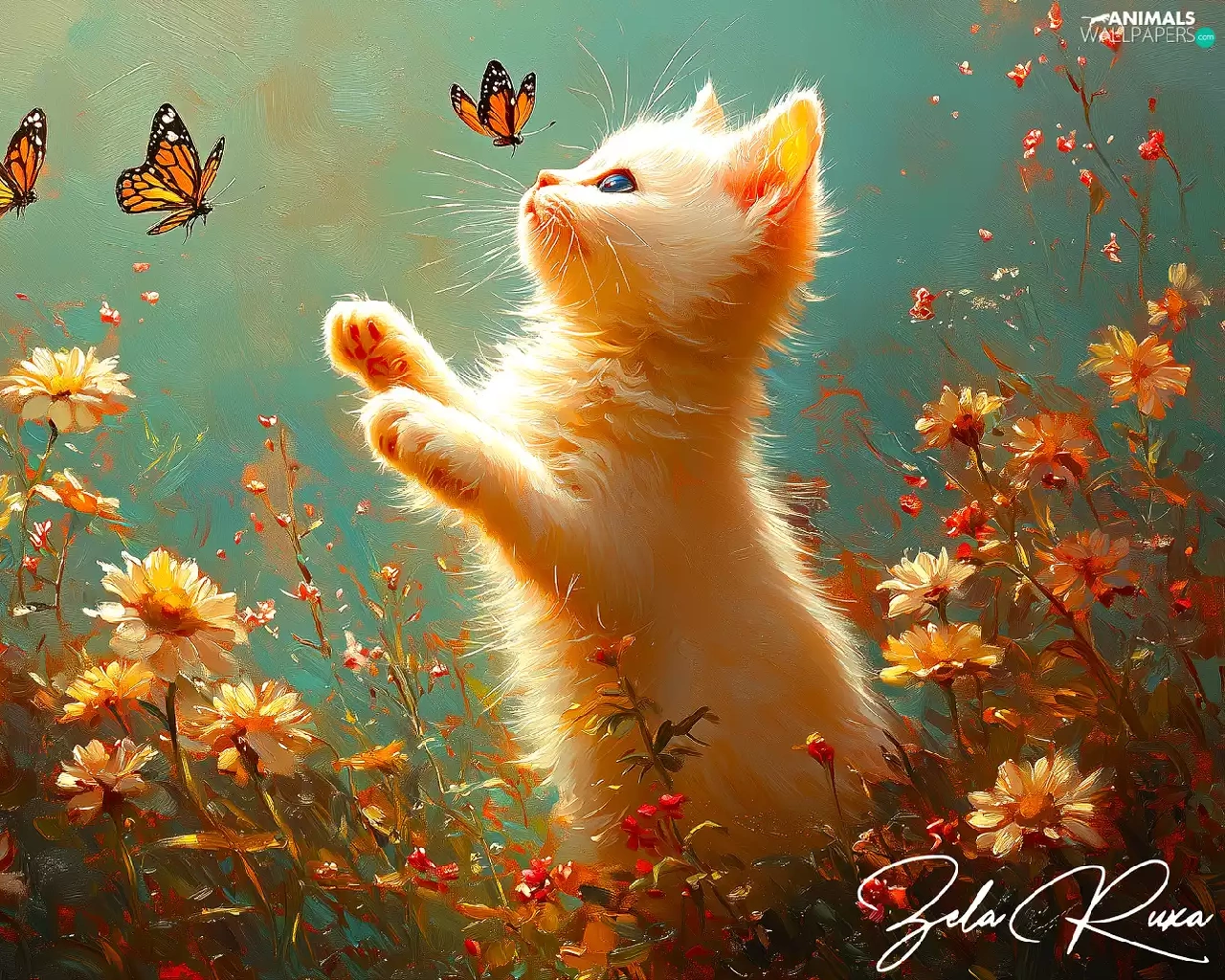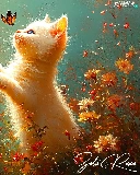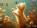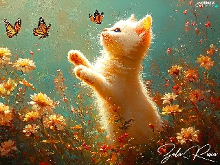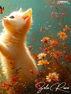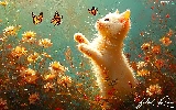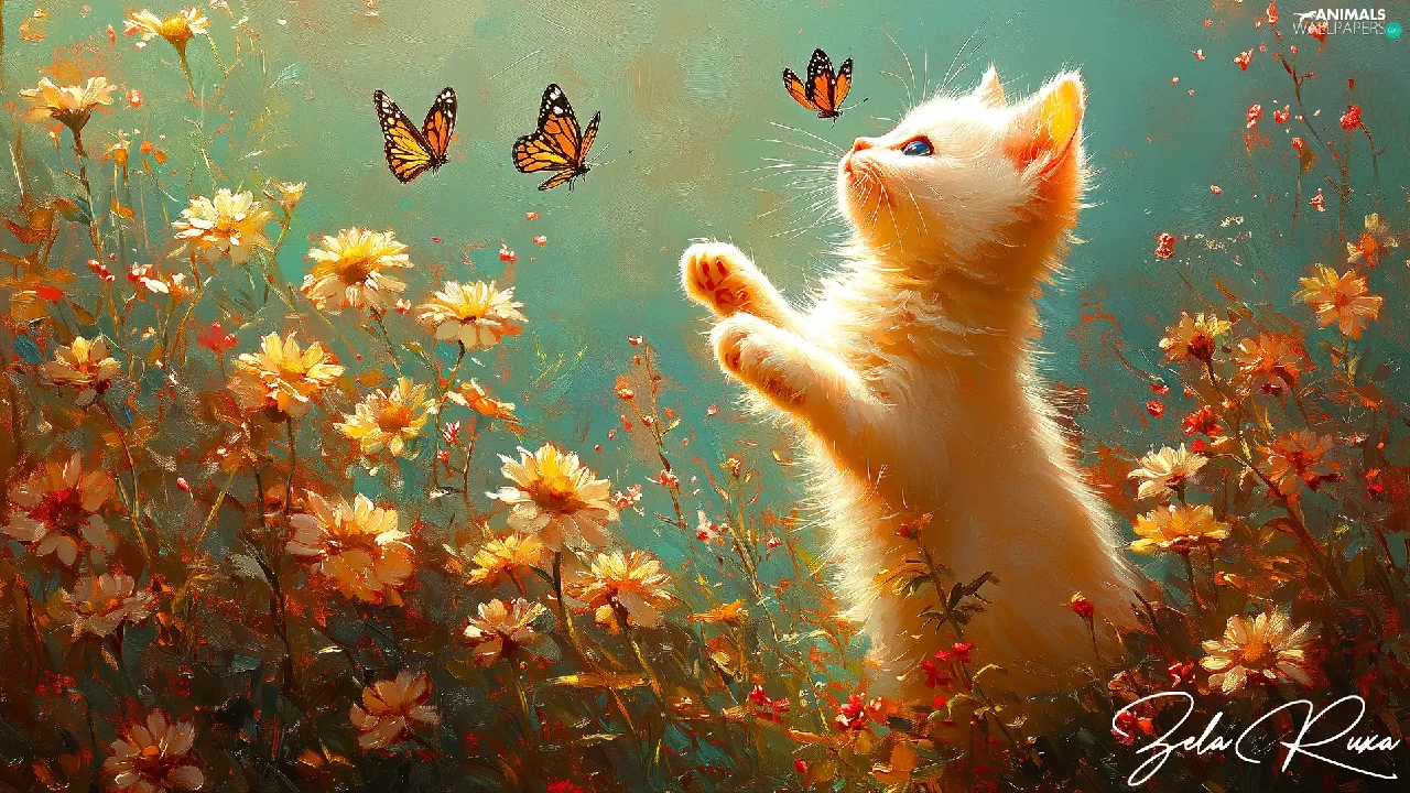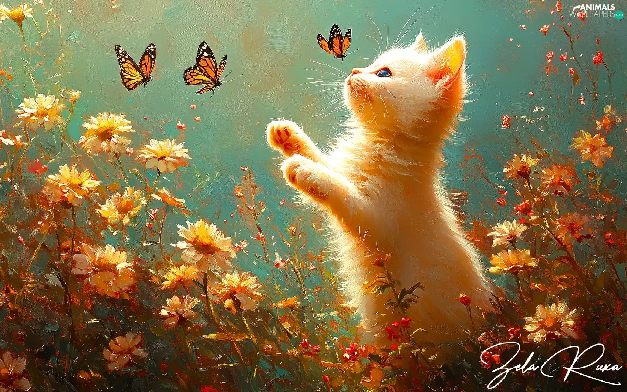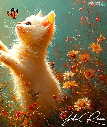 Flowers, cat, butterflies