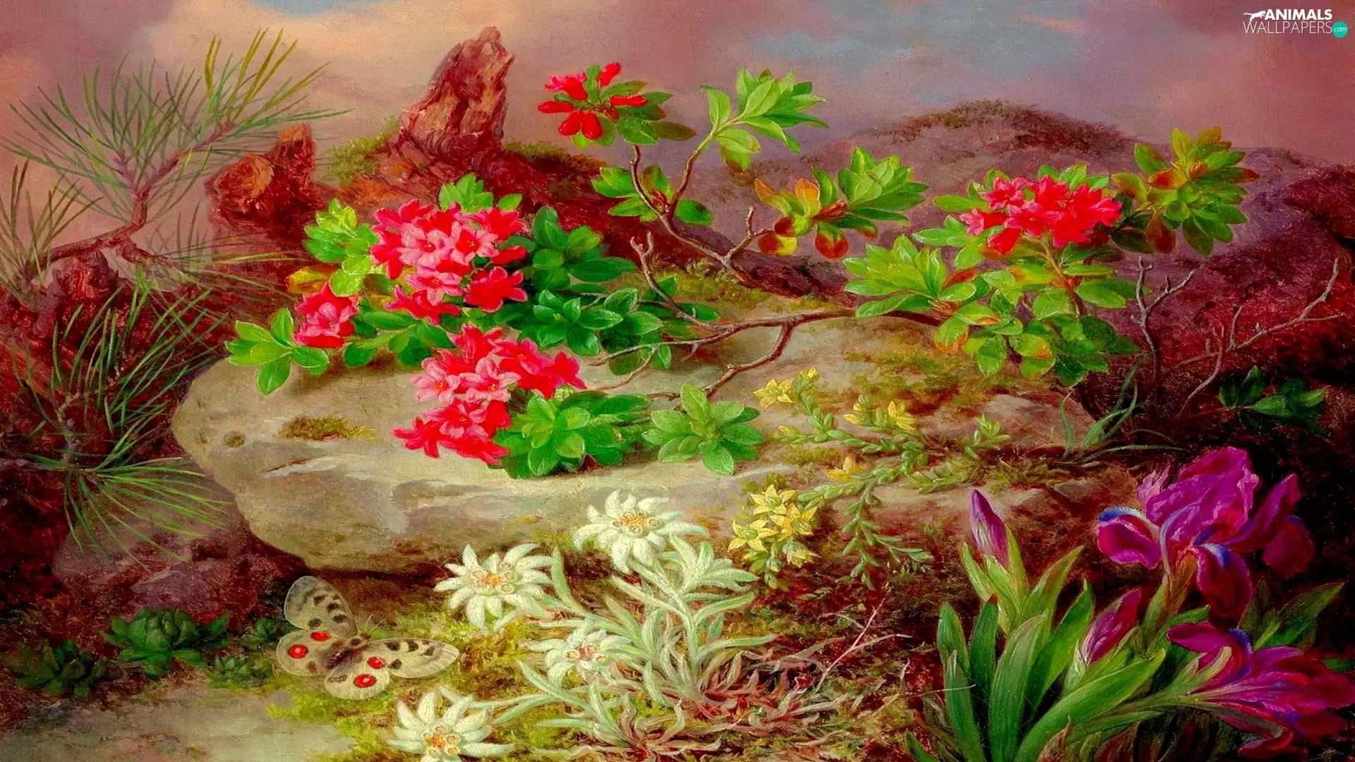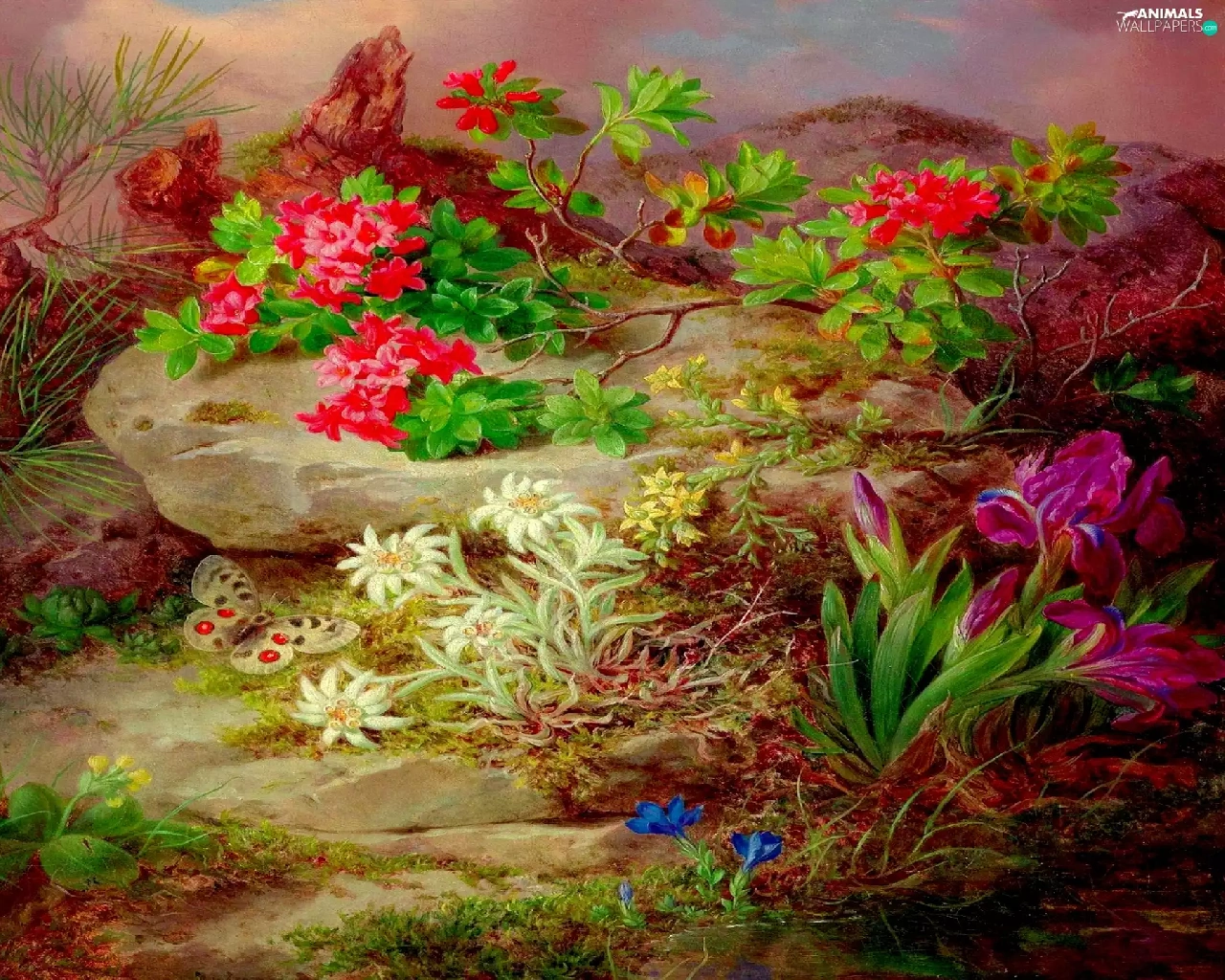 Flowers, butterfly