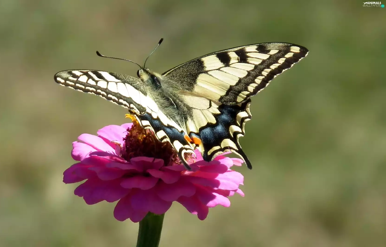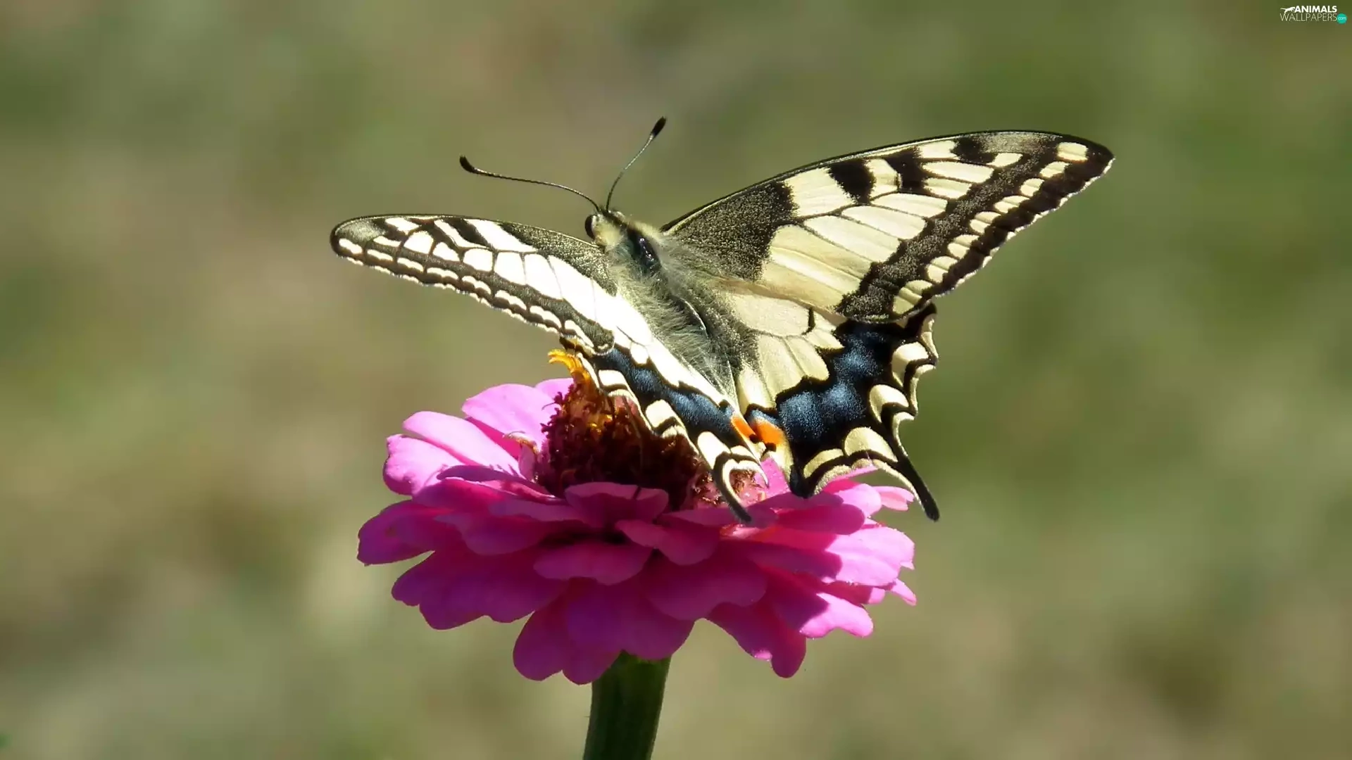 Colourfull Flowers, butterfly, Swallowtail Butterfly