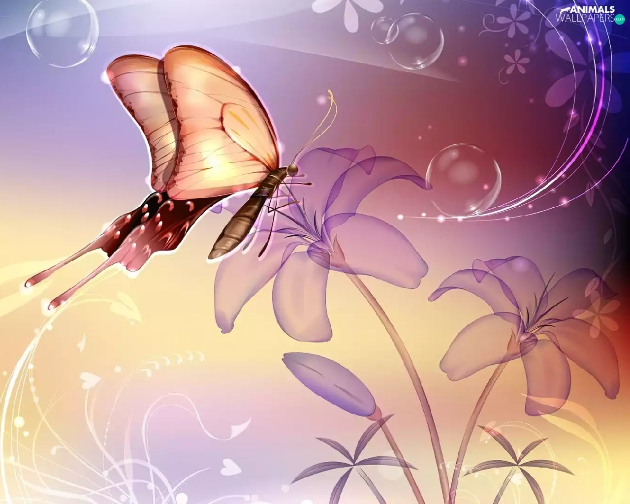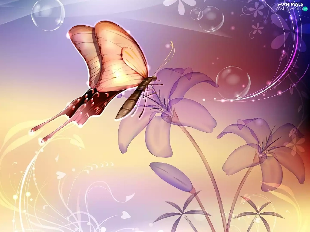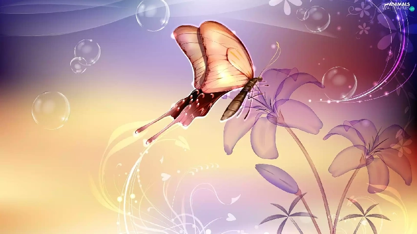 Flowers, pretty, butterfly