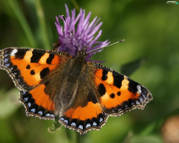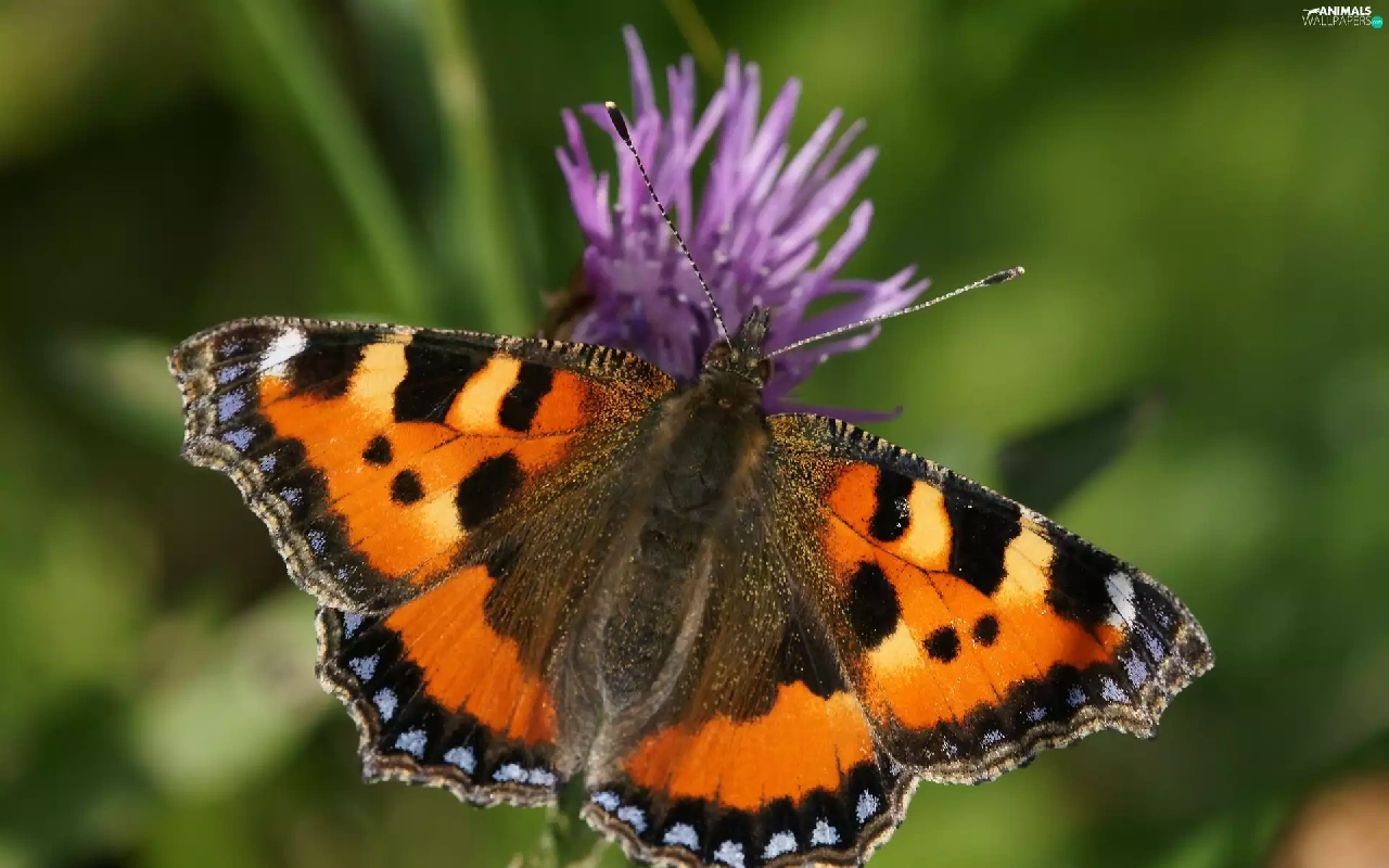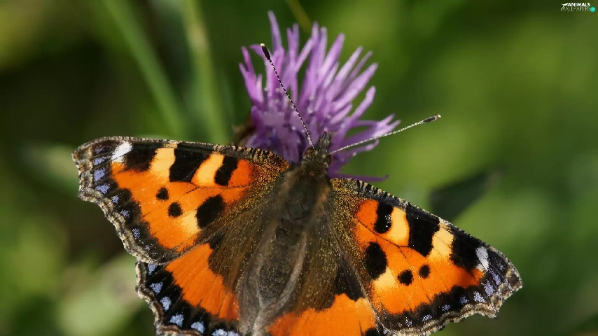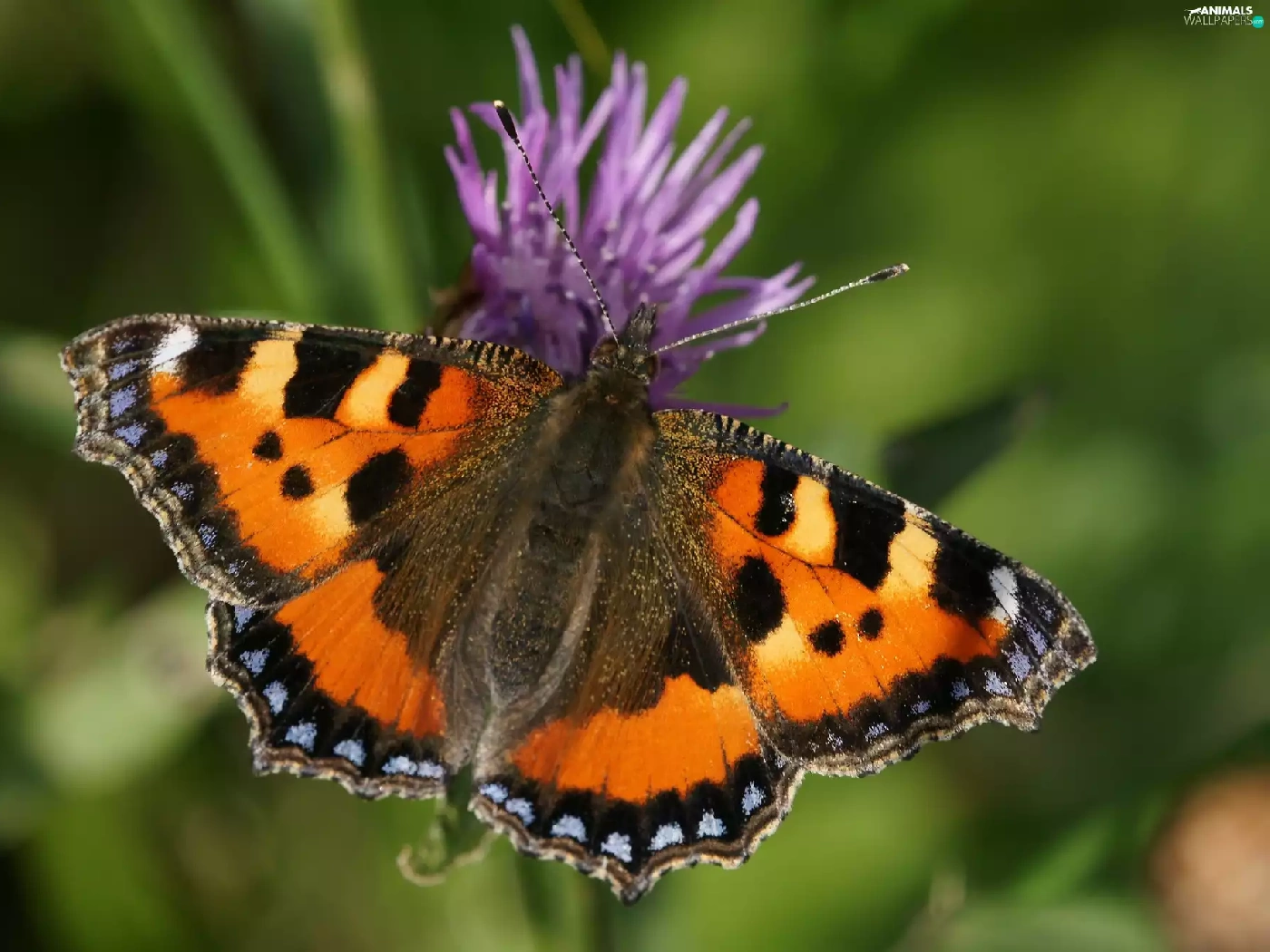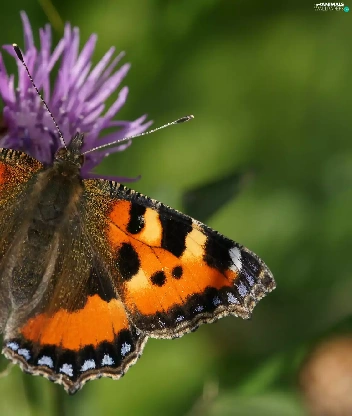 Colourfull Flowers, butterfly, Small Tortoiseshell