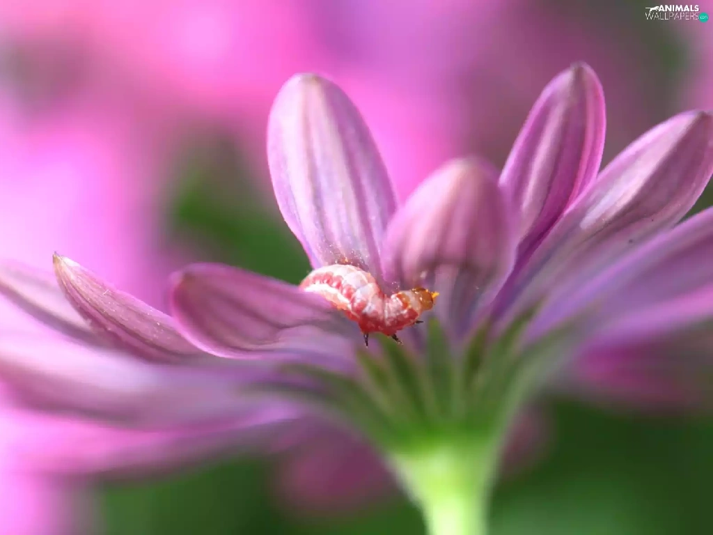caterpillar, Pink, Colourfull Flowers
