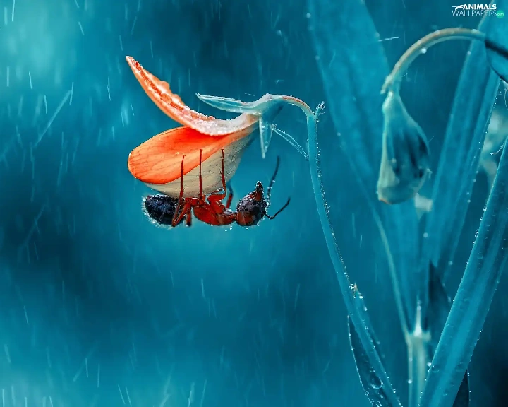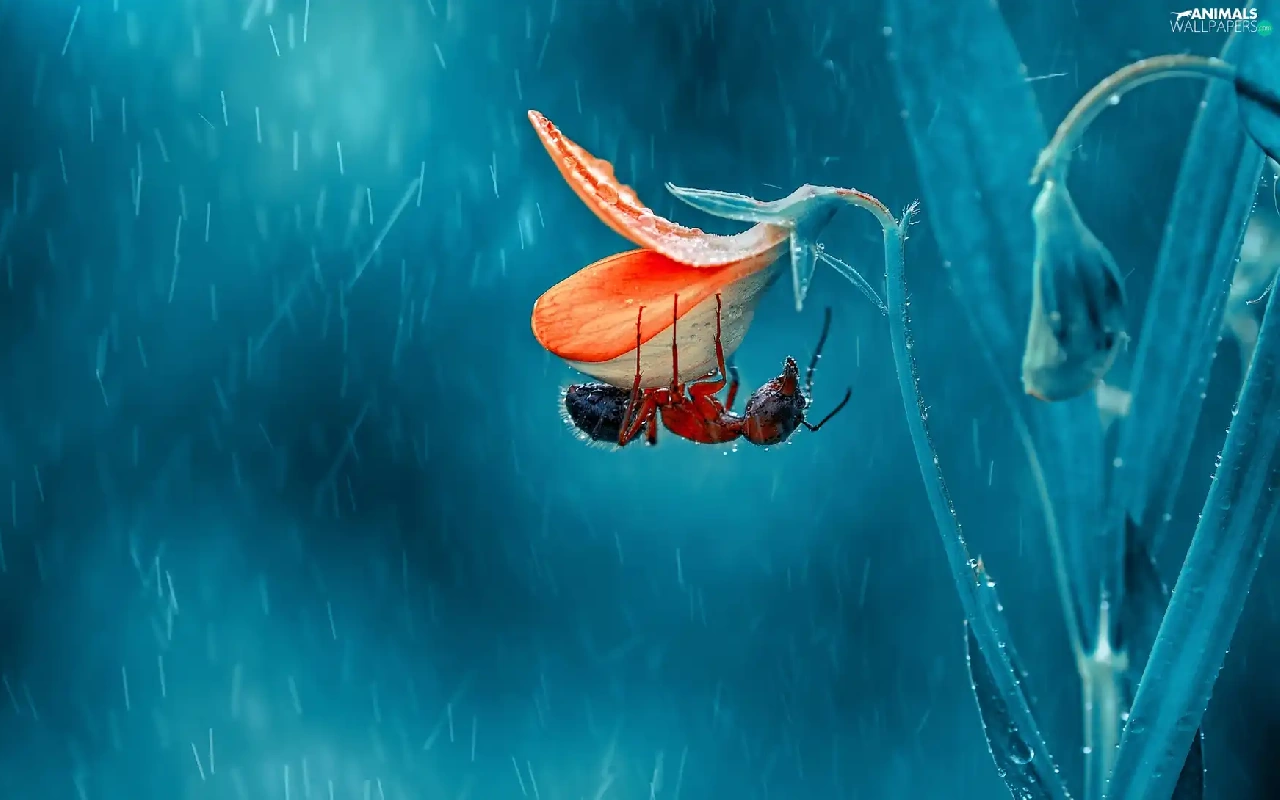 Colourfull Flowers, Close, Rain, ant