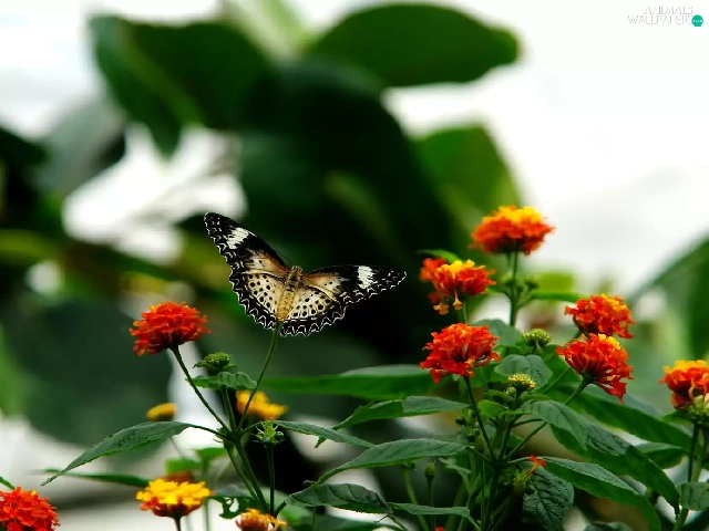 Flowers, butterfly, color