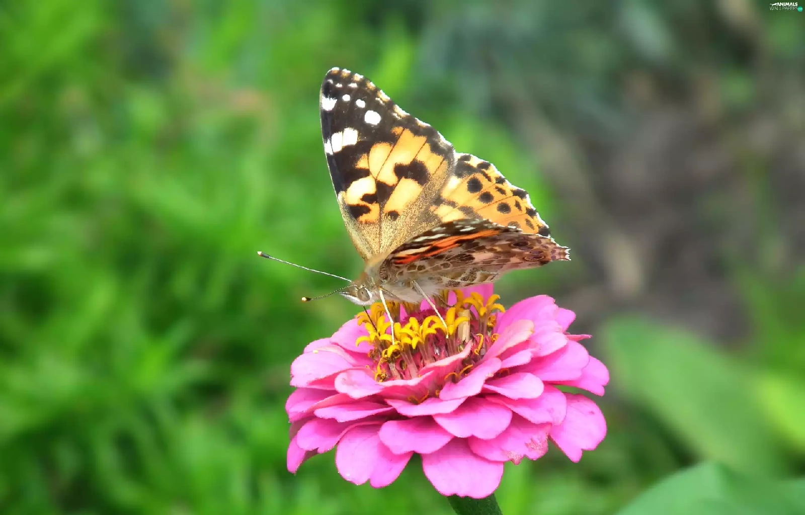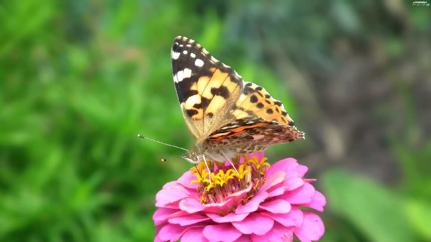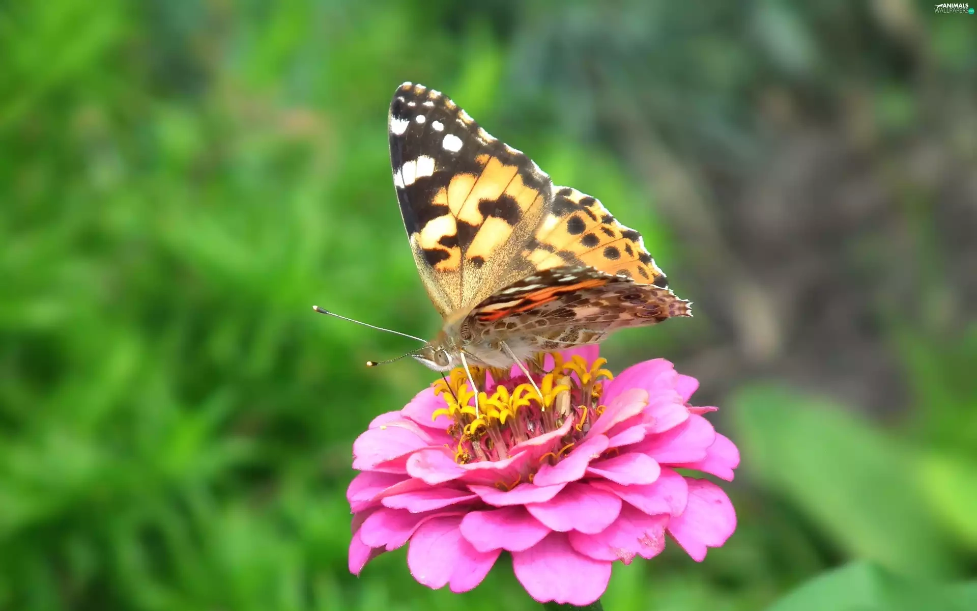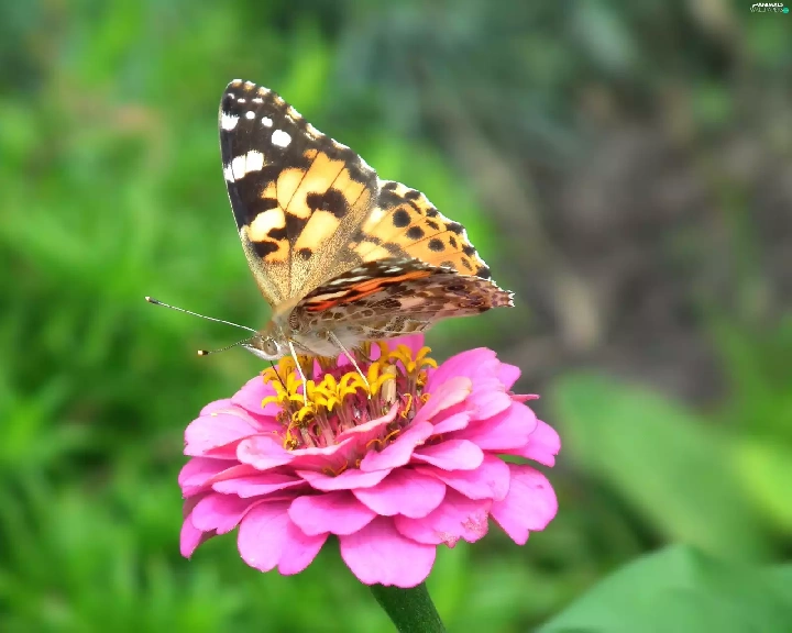 Cardui, butterfly, Colourfull Flowers, zinnia, nature, undine
