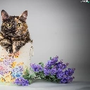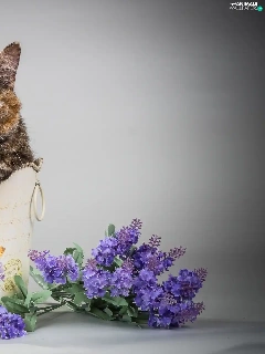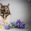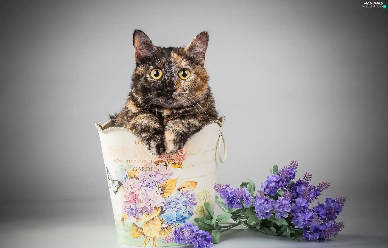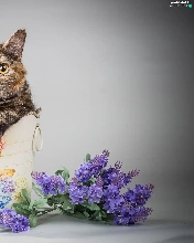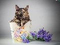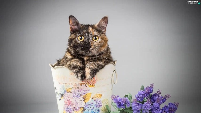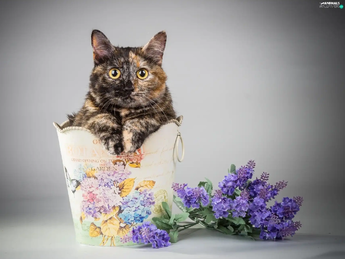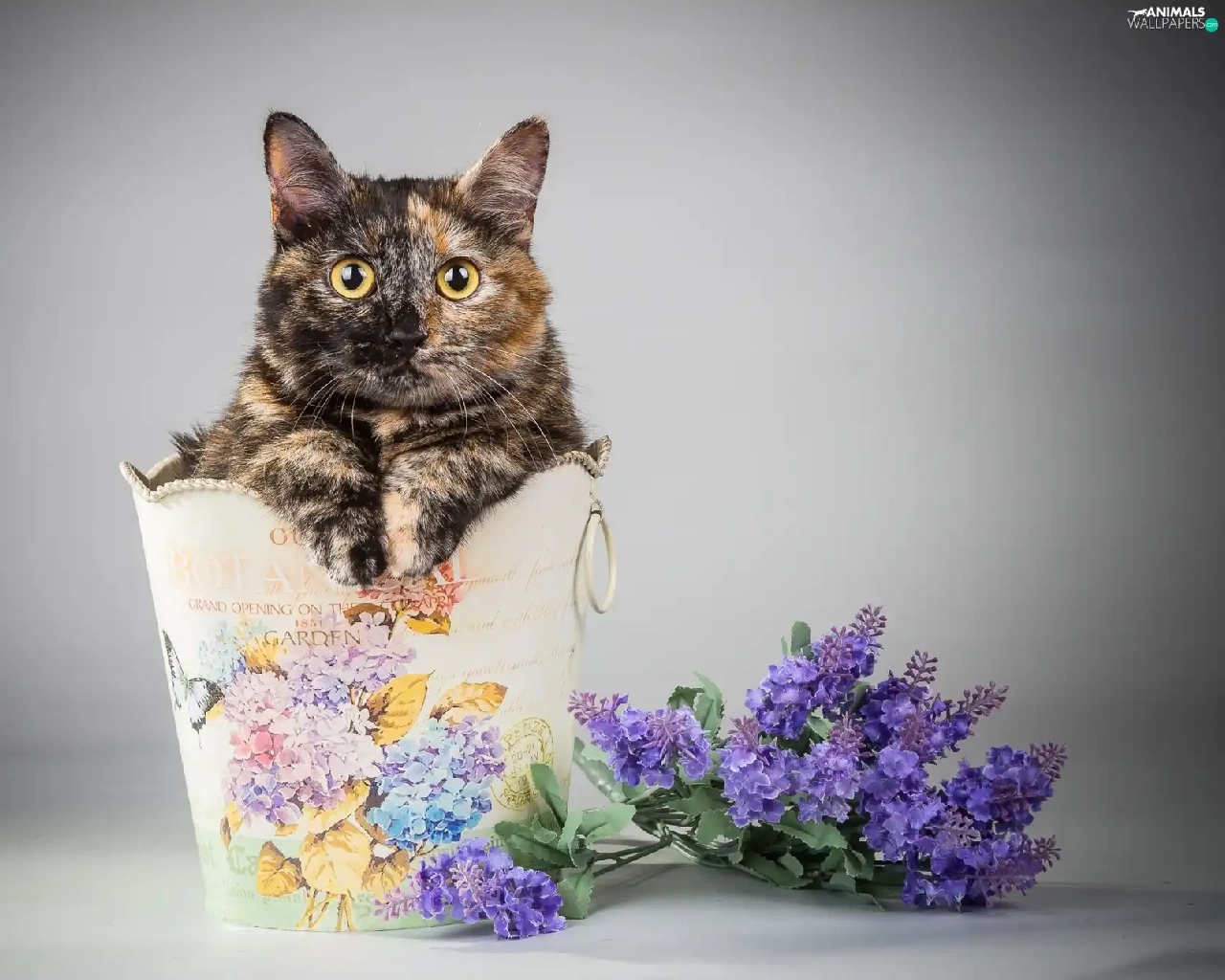 Flowers, cat, container