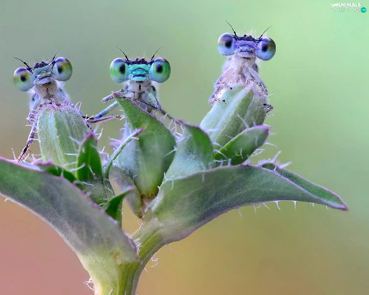 dragon-fly, Colourfull Flowers