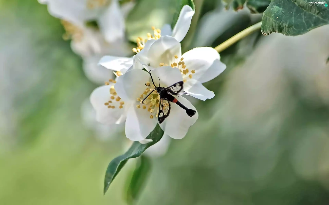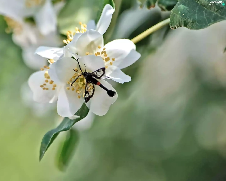 dragon-fly, White, Flowers