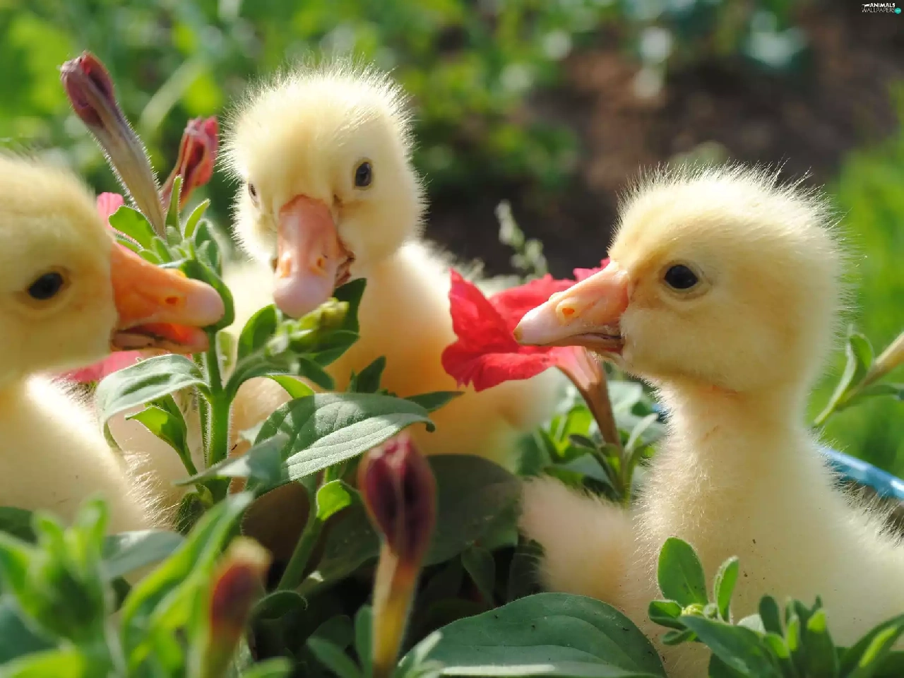 Flowers, Three, ducks
