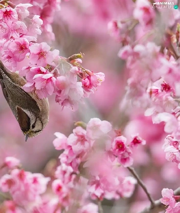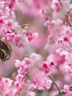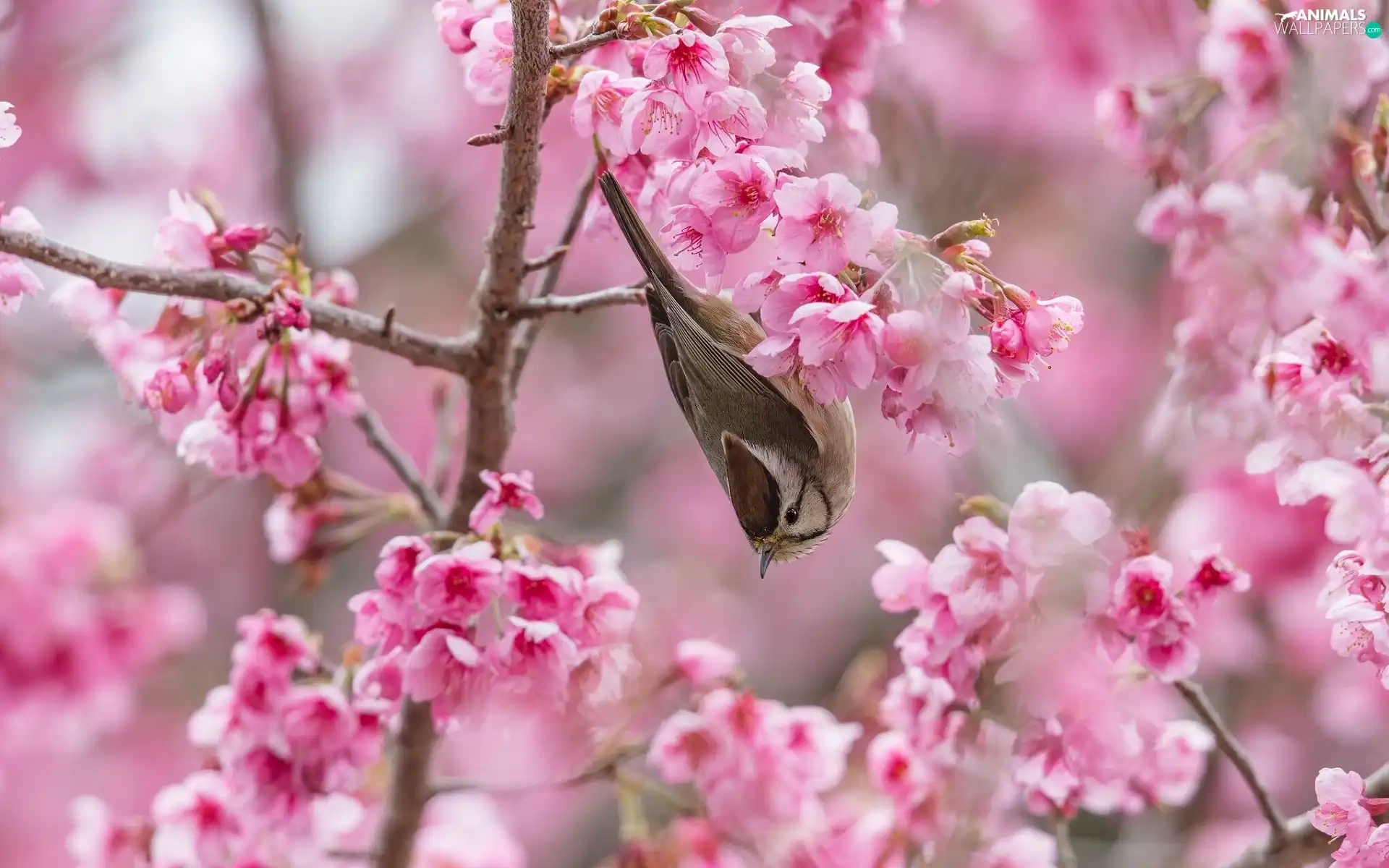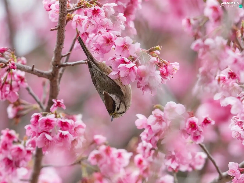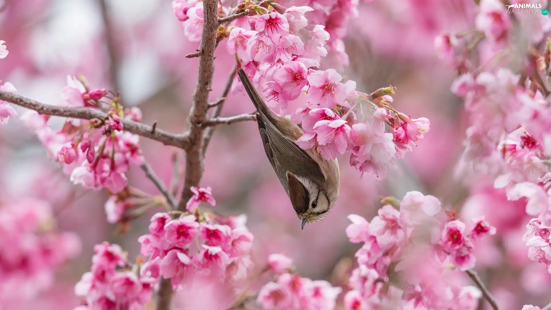 Flowers, branch pics, Japanese Cherry, Bird, Fruit Tree, Pink