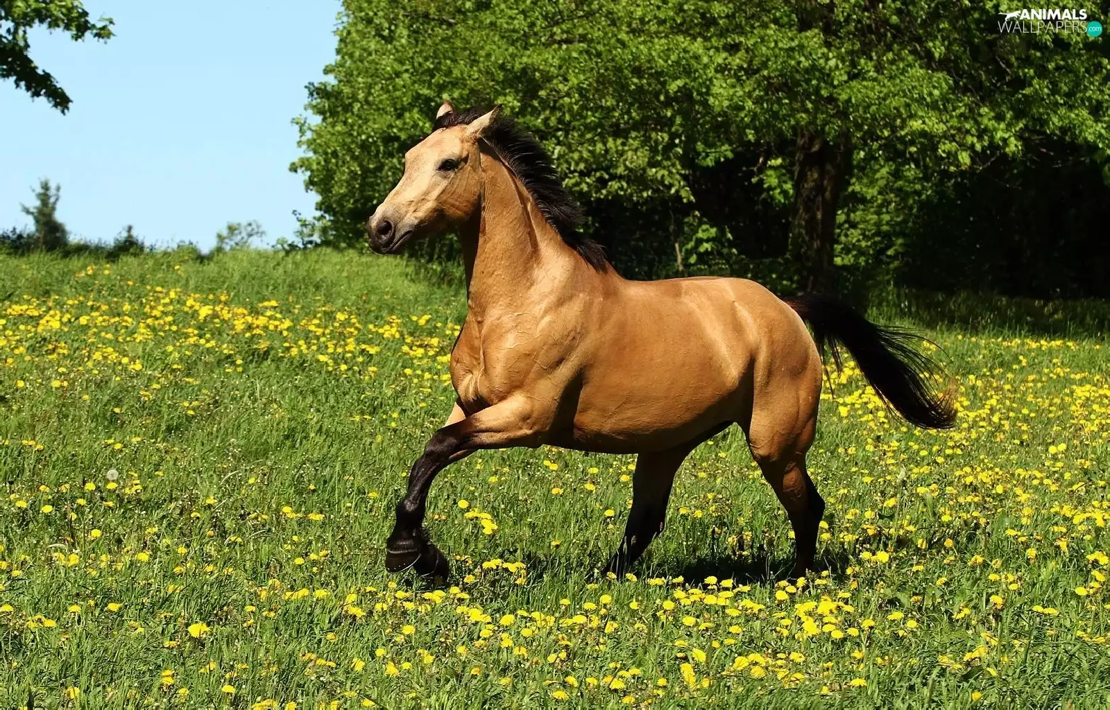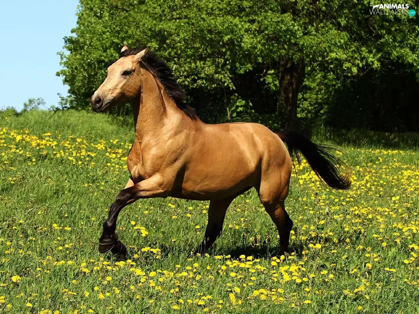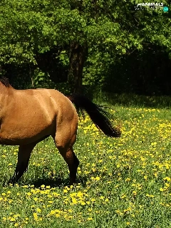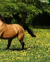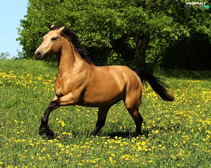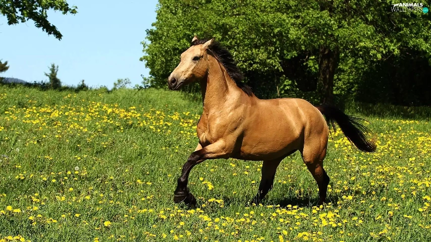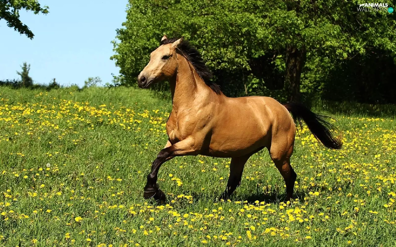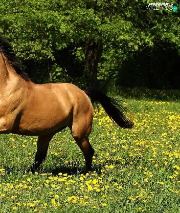 Yellow, Flowers, gear, Meadow, Horse
