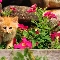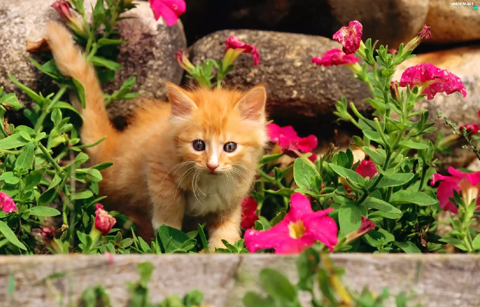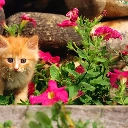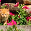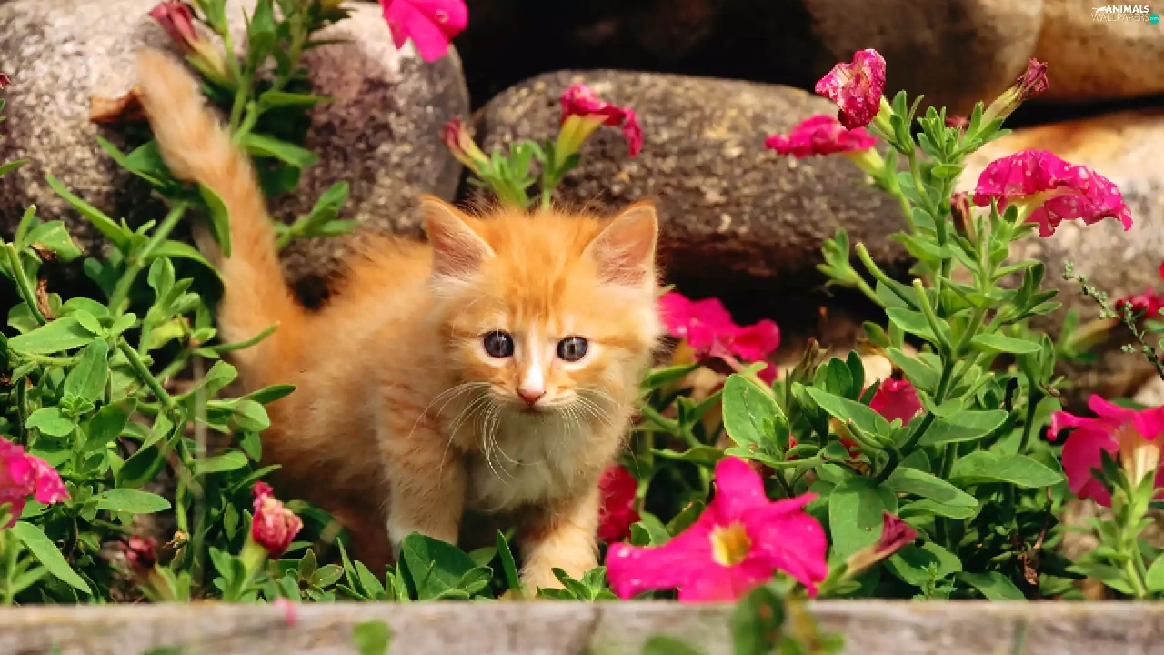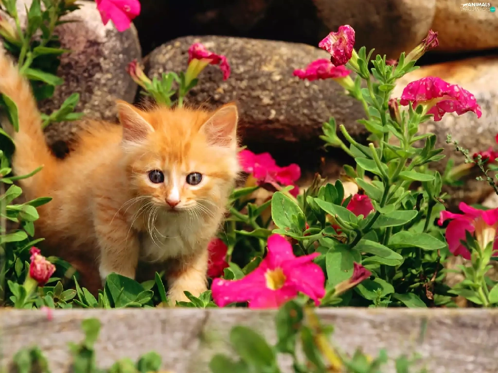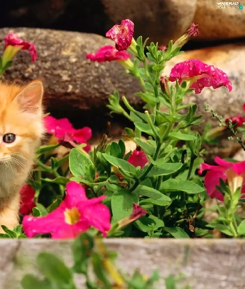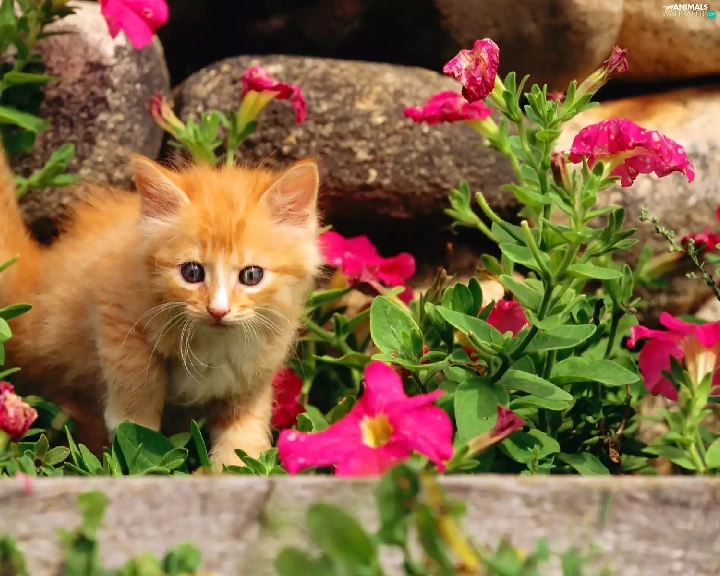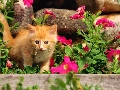 Pink, flowers, ginger, kitten, small