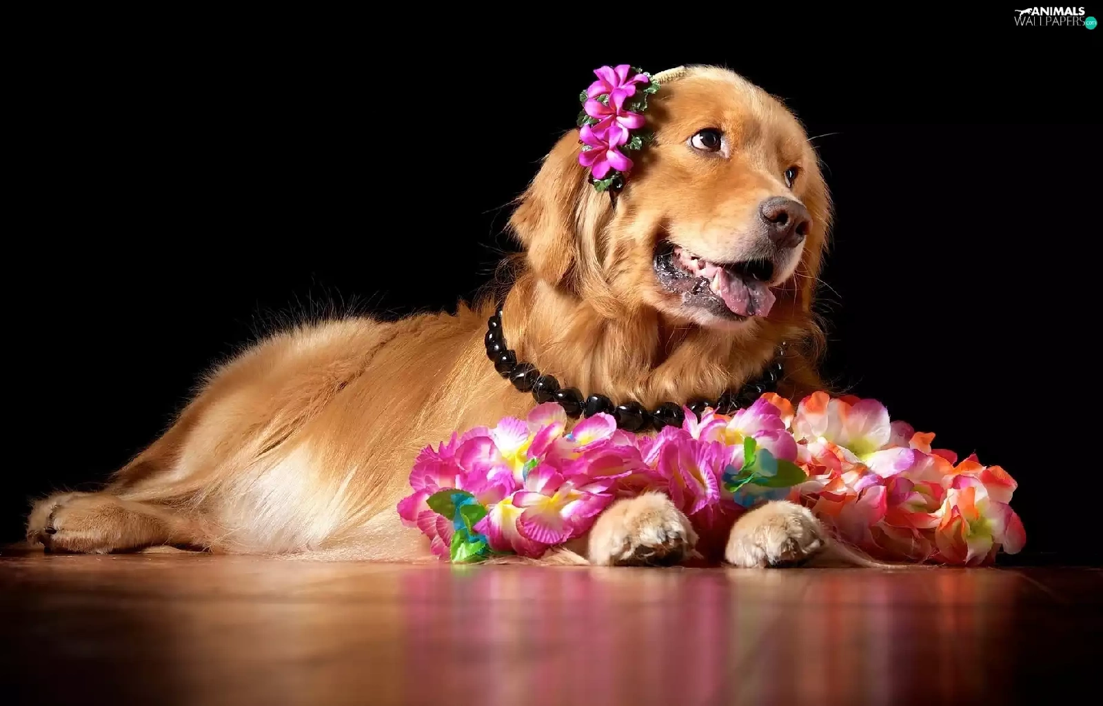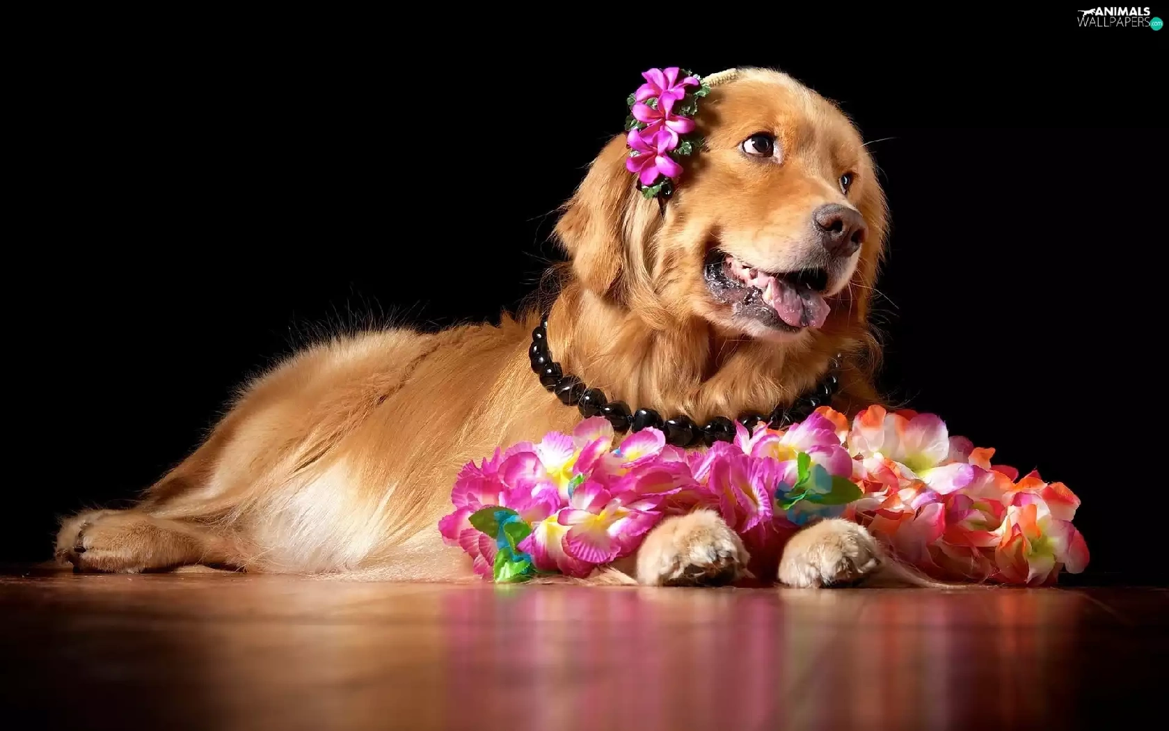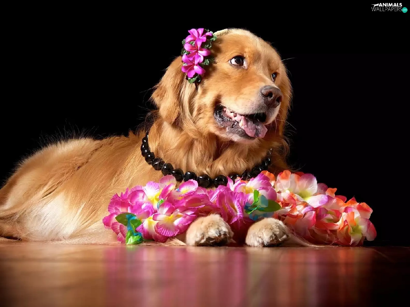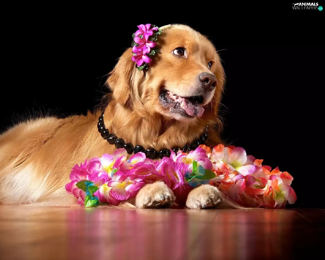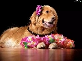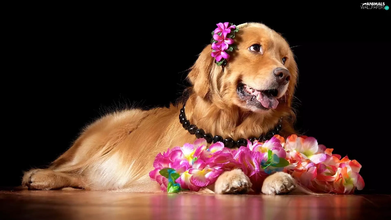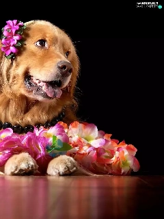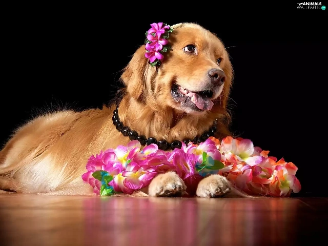 Golden Retriever, doggy, Flowers