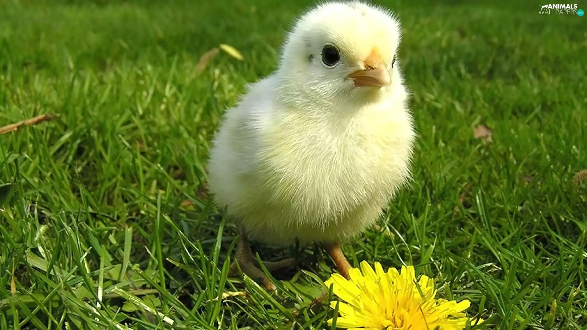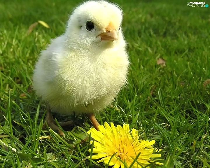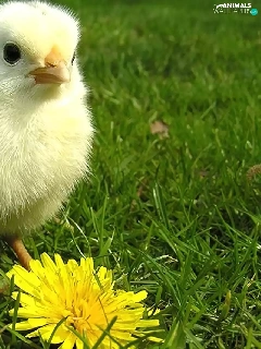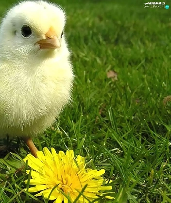 grass, chicken, Colourfull Flowers