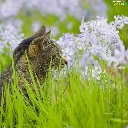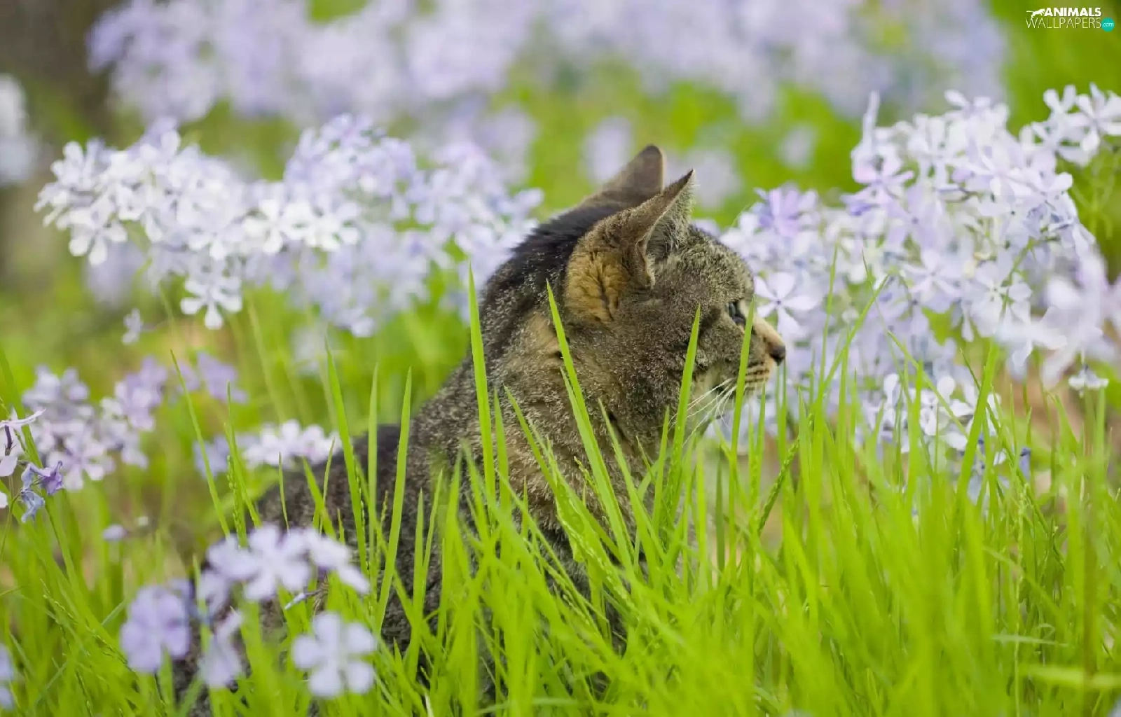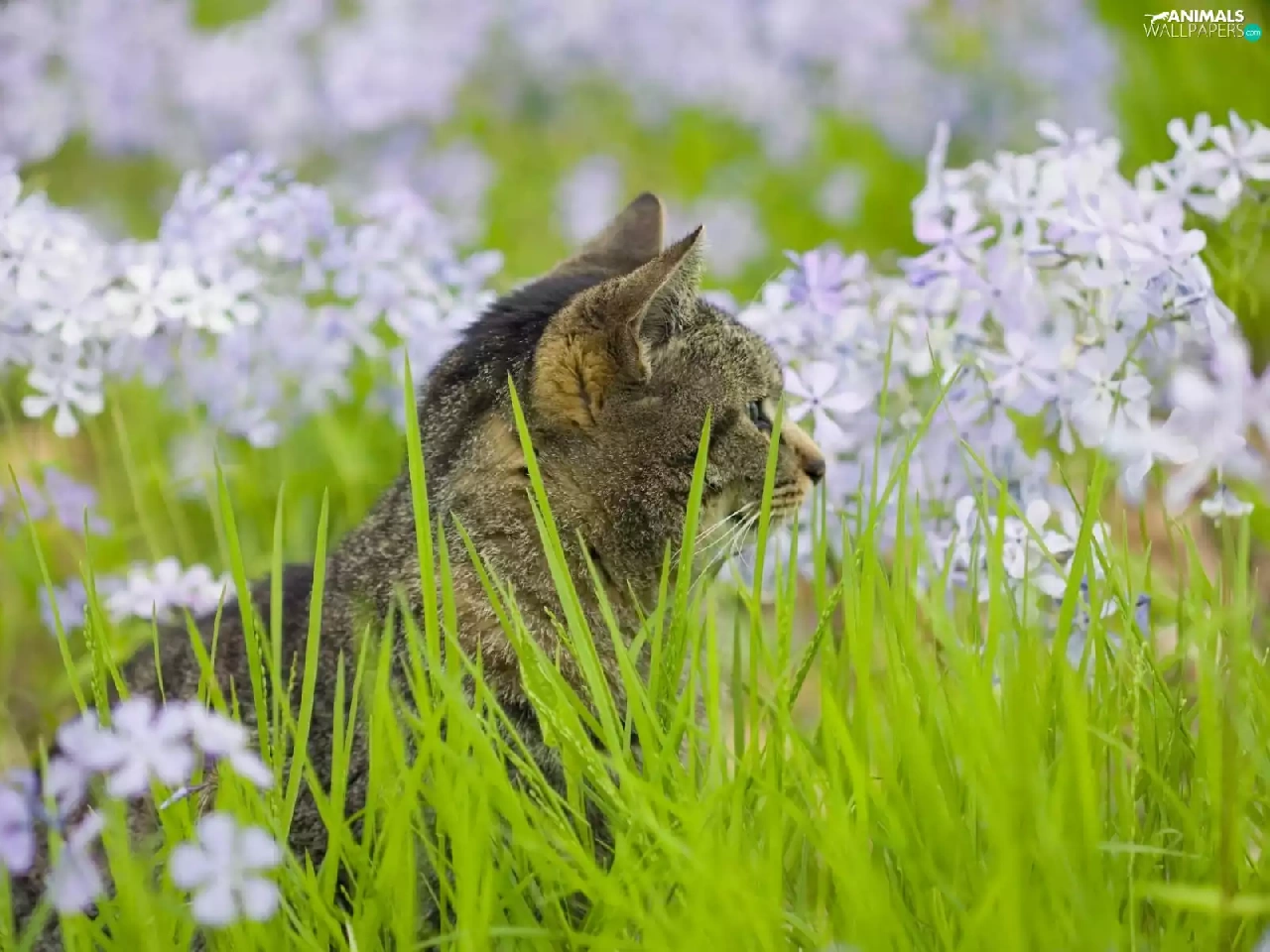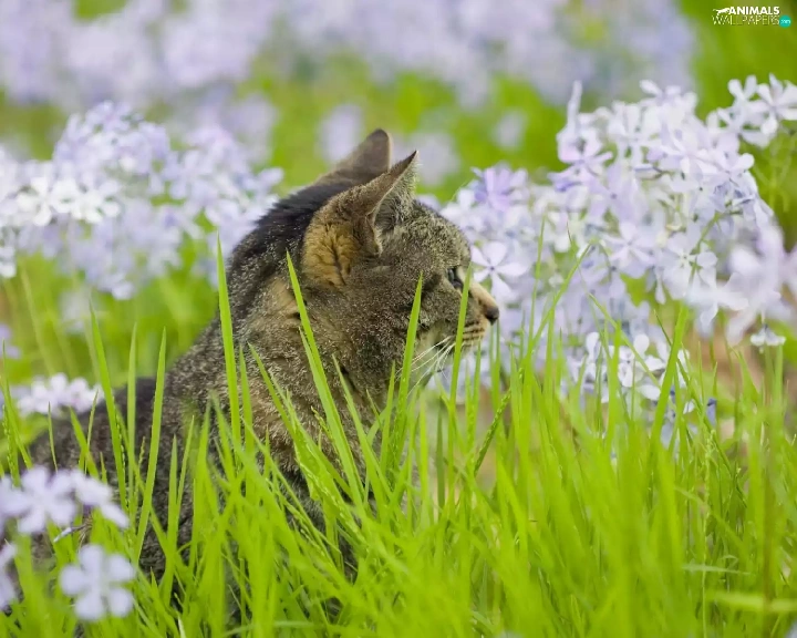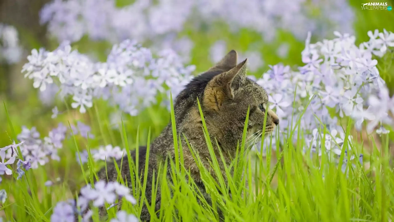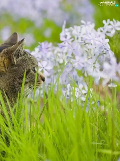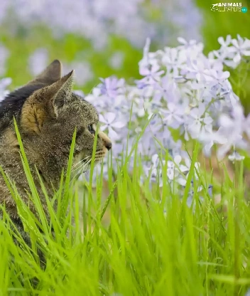 Flowers, kitten, grass