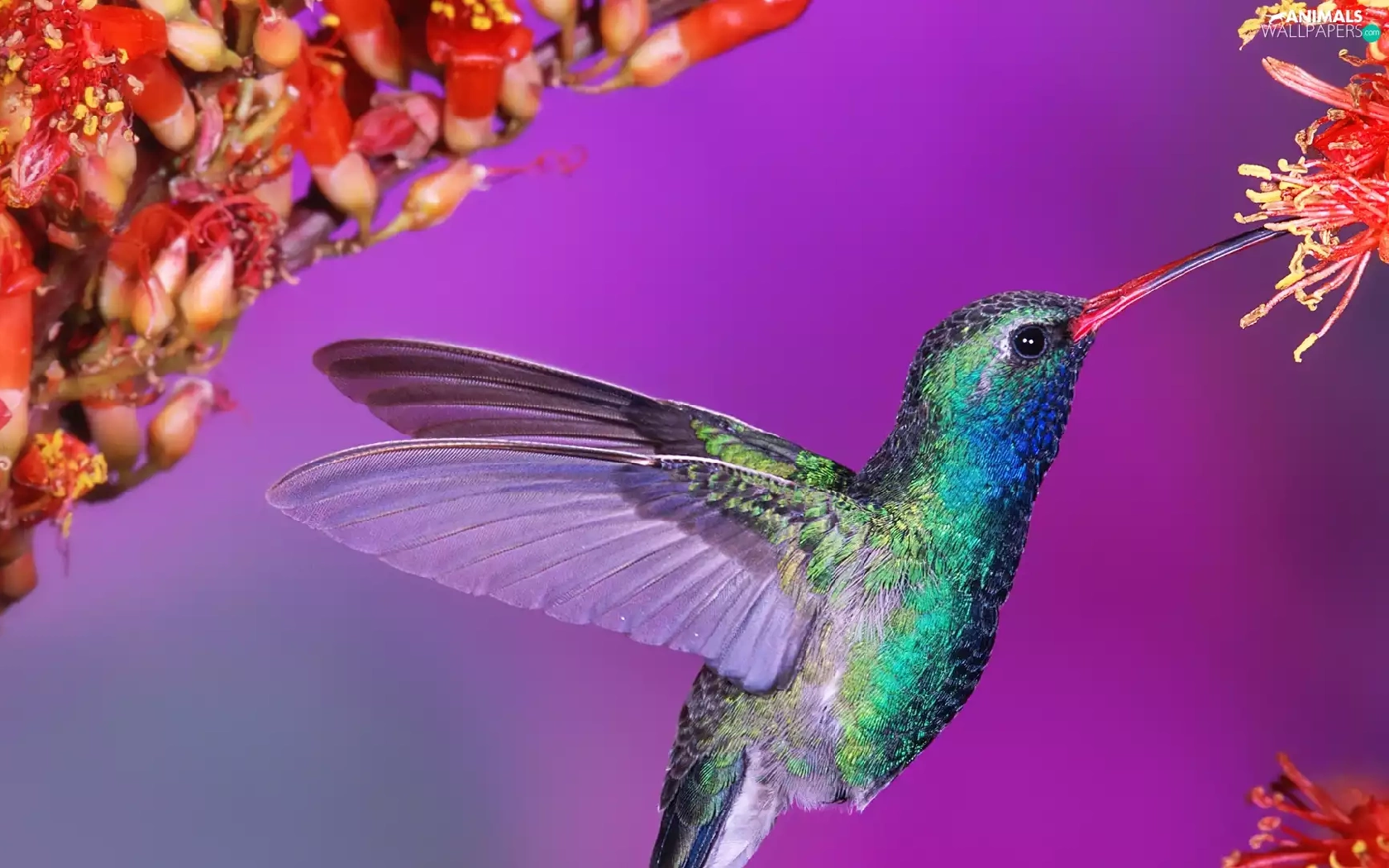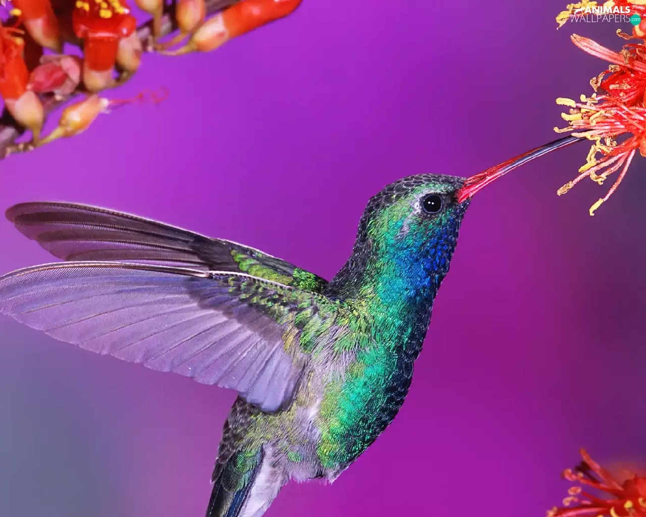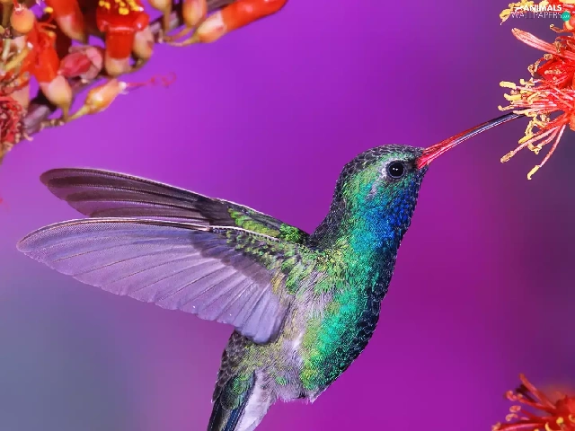 humming-bird, Colourfull Flowers