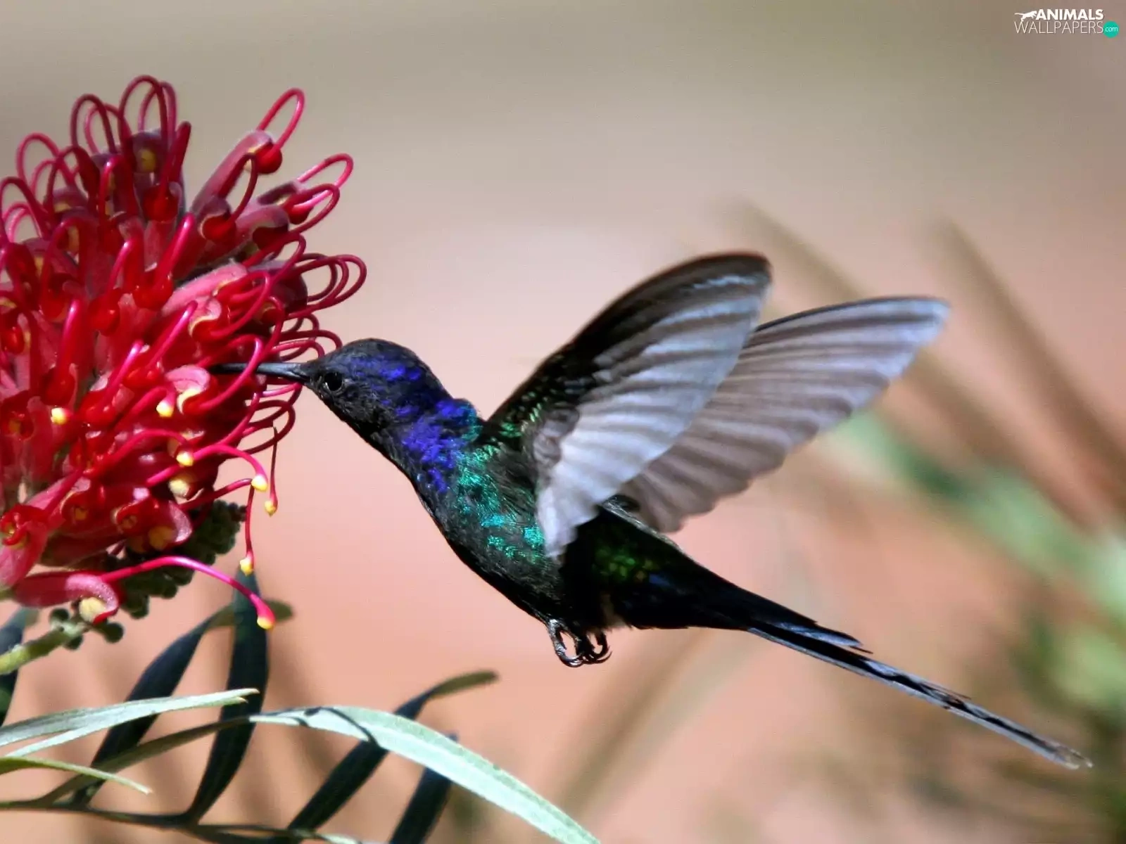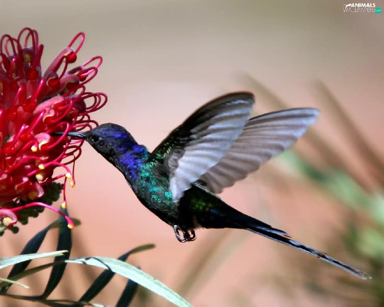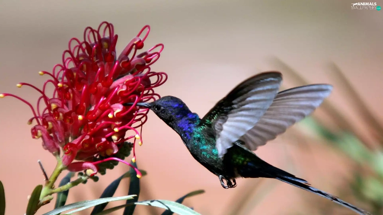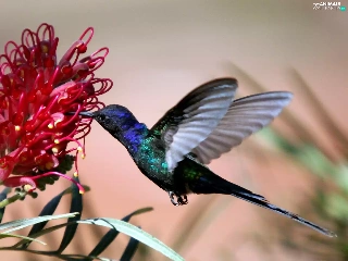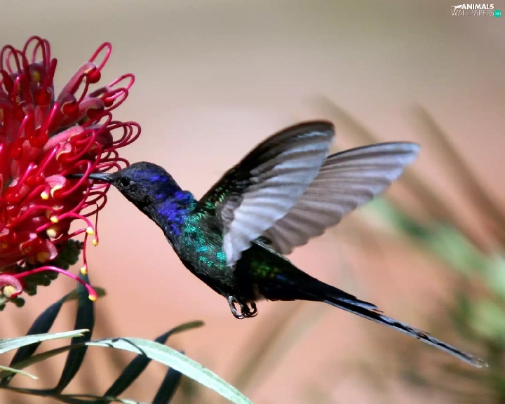 Colourfull Flowers, humming-bird, Red
