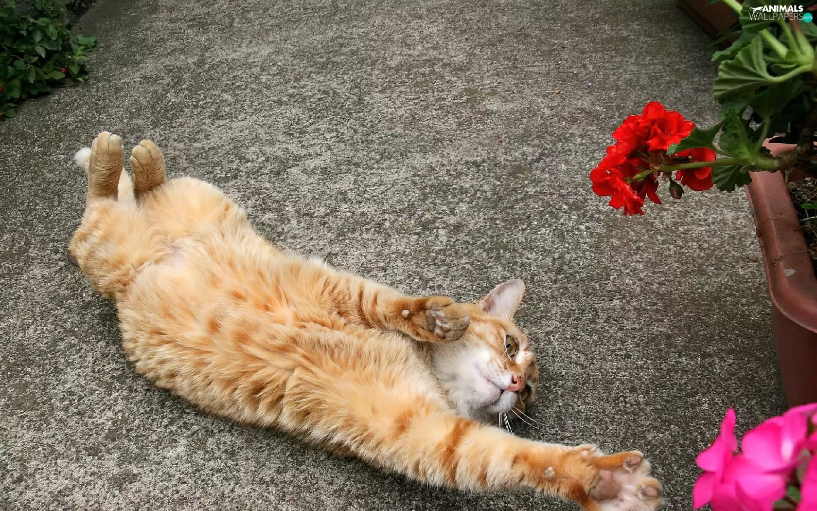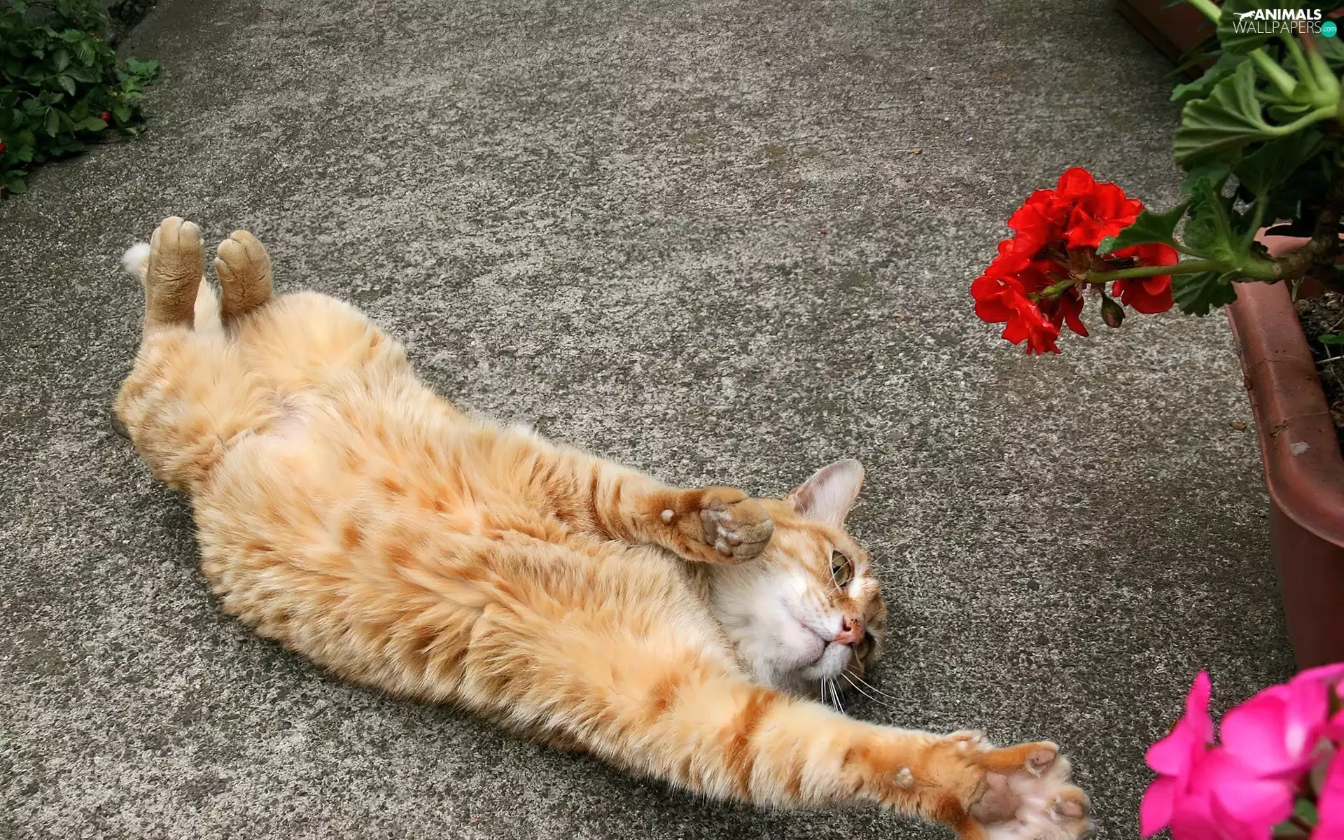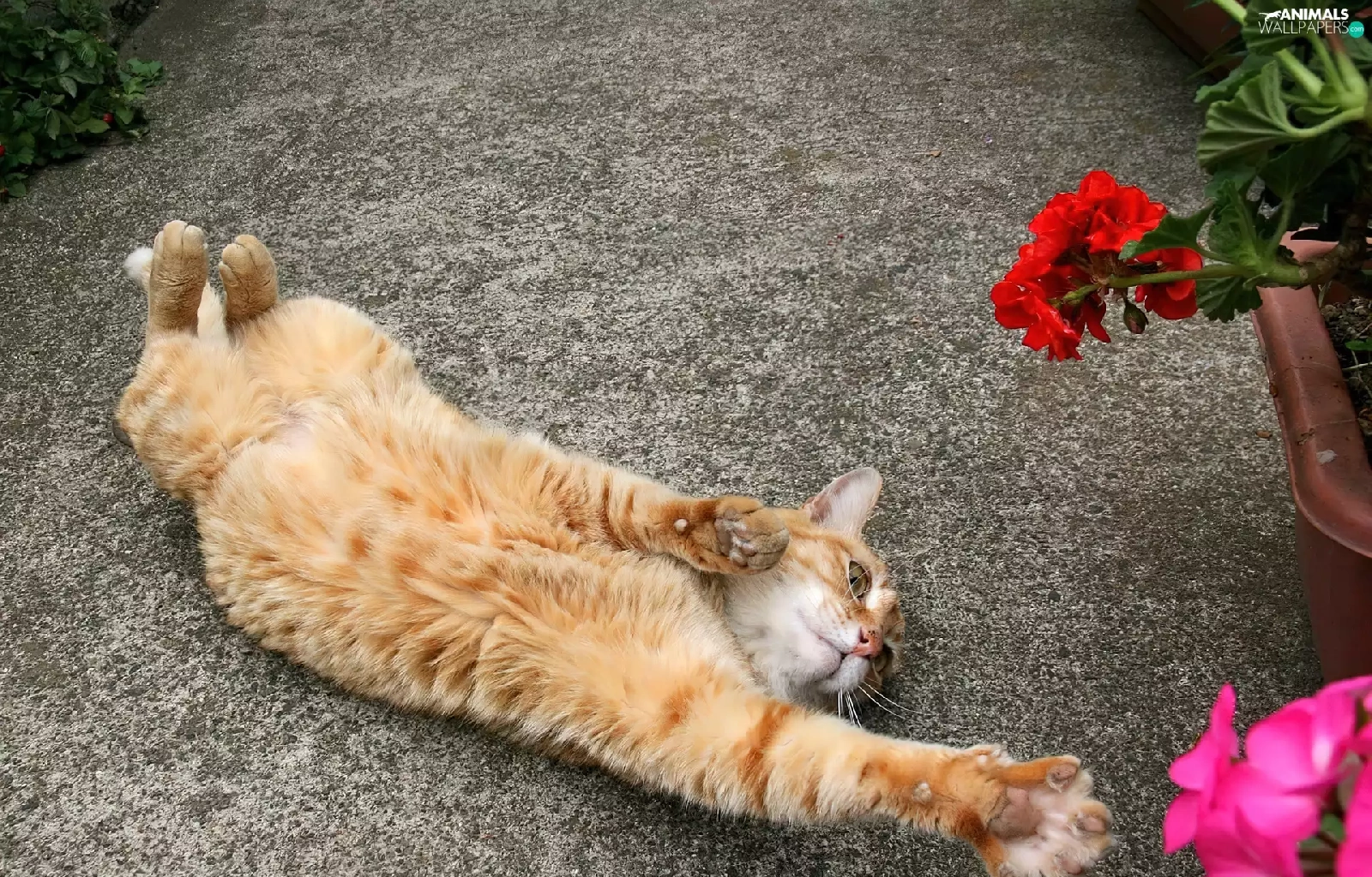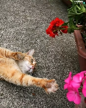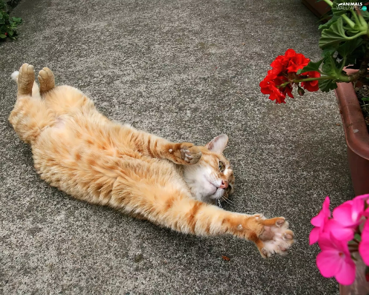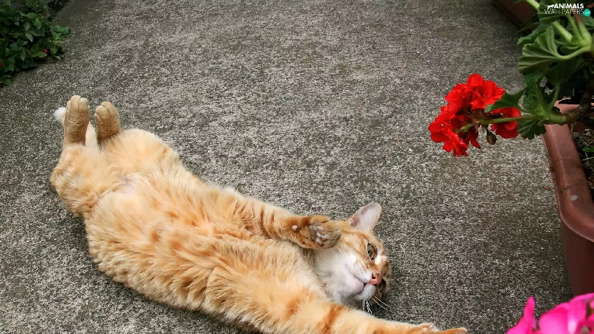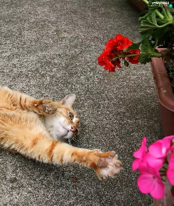 Flowers, ginger, kitten